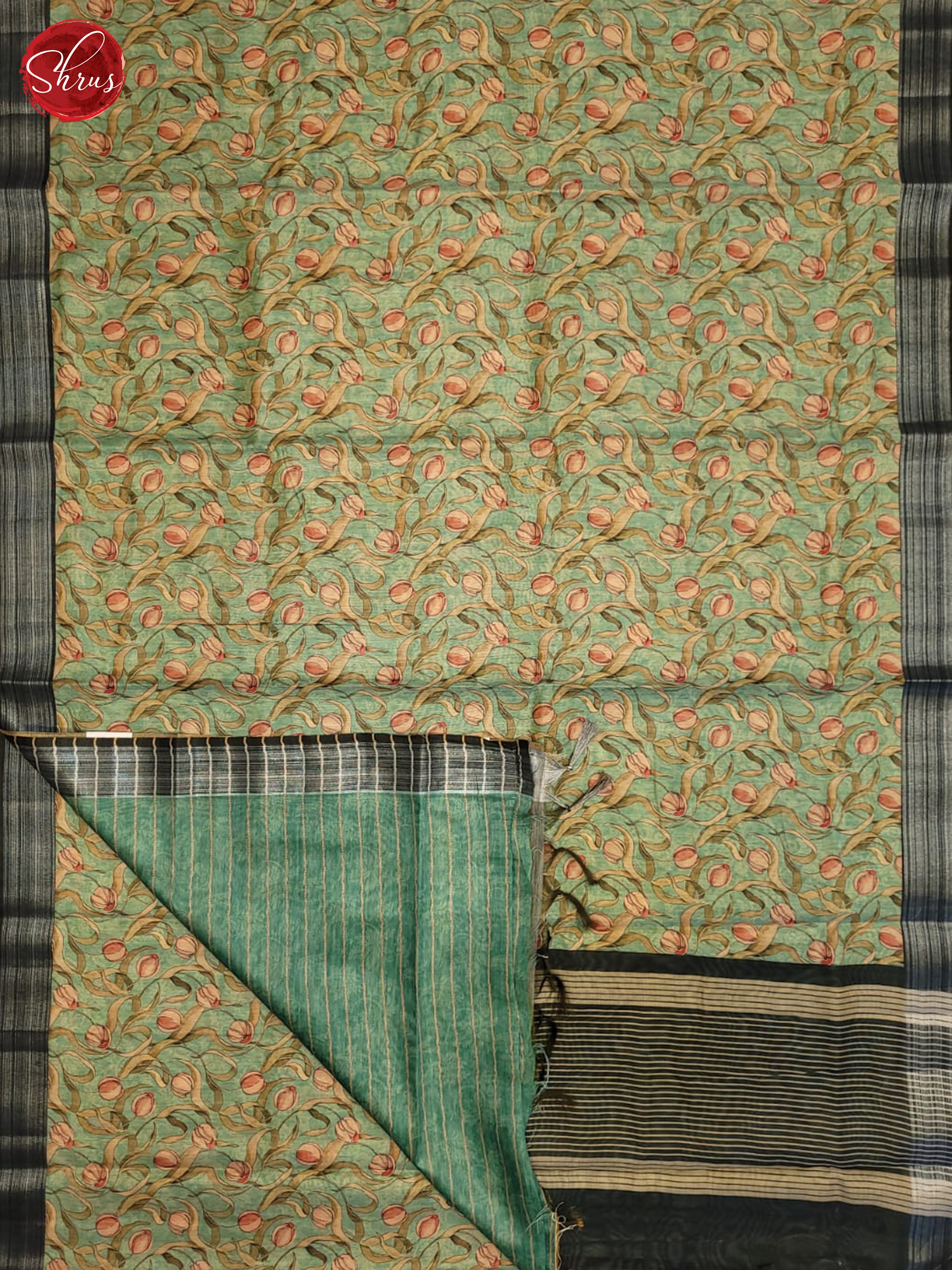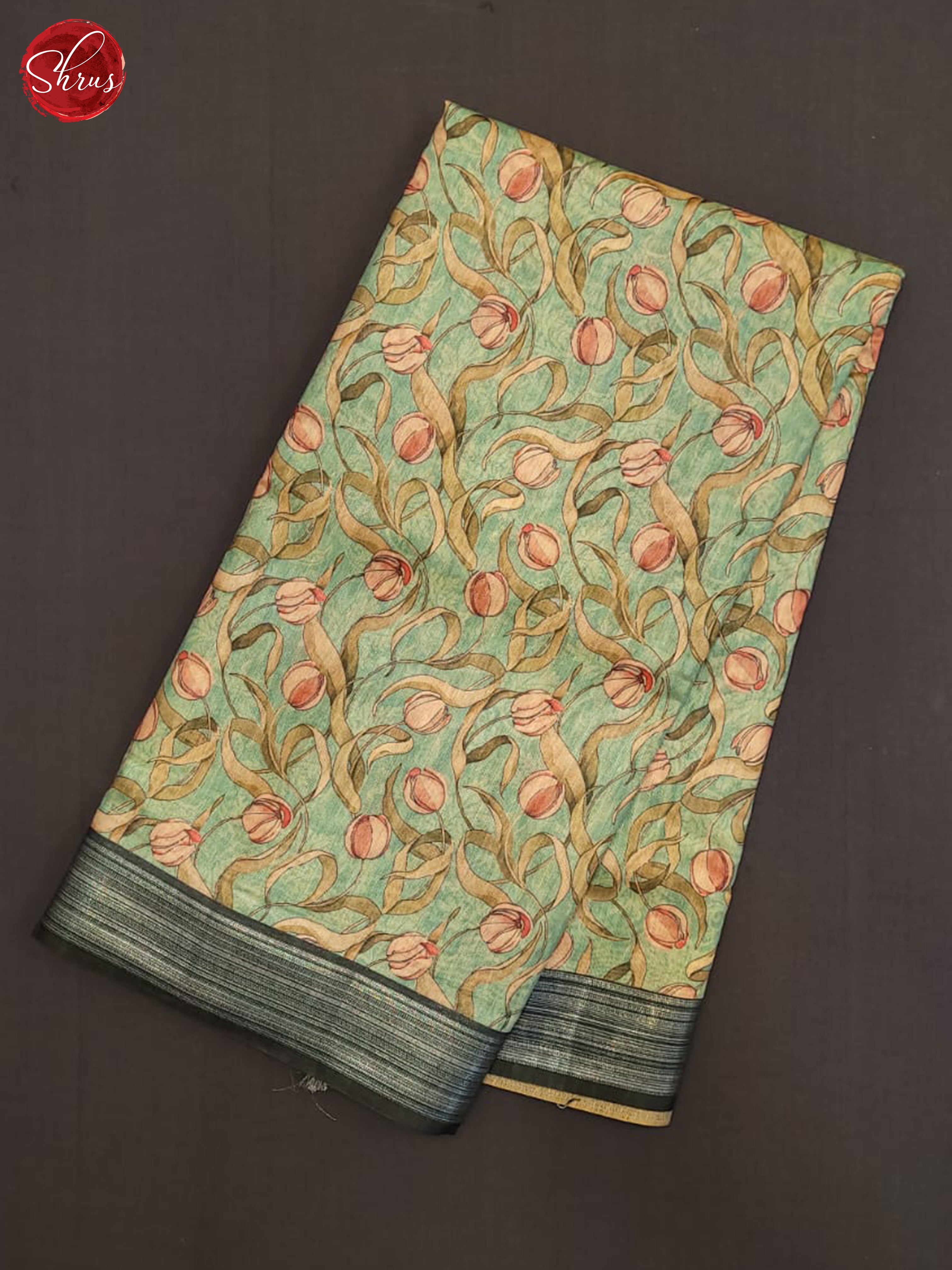 Pretty Green Semi Gicha Saree enchants with floral print on the body , & bounded with blue zari border , pallu lends a beautiful compliment . Comes with green blouse with border completes the ensemble