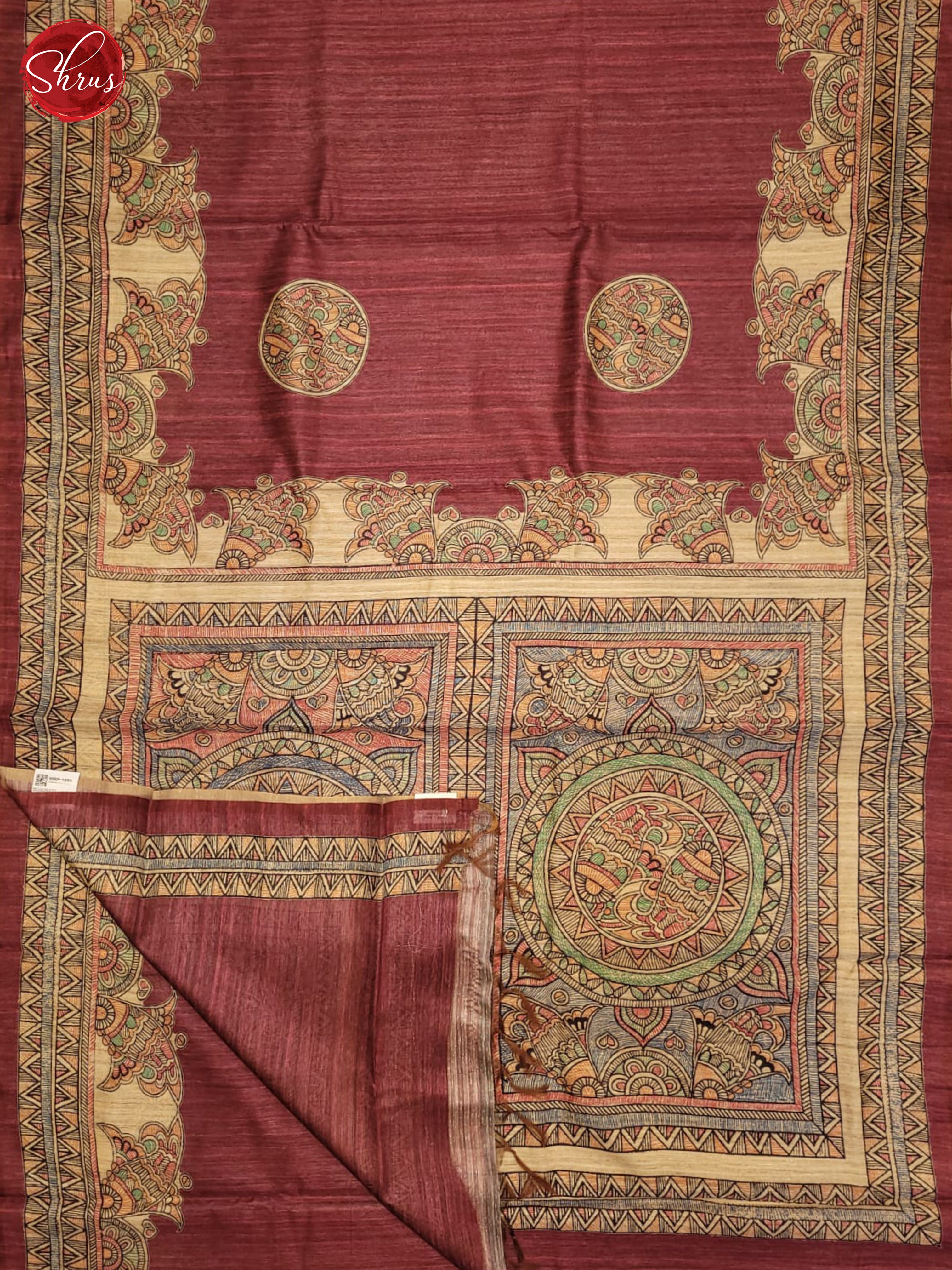 Pretty Majenta Pink Semi Gicha Saree enchants with madhubani print on the body , & bounded with beige printed border , pallu lends a beautiful compliment . Comes with self blouse completes the ensemble