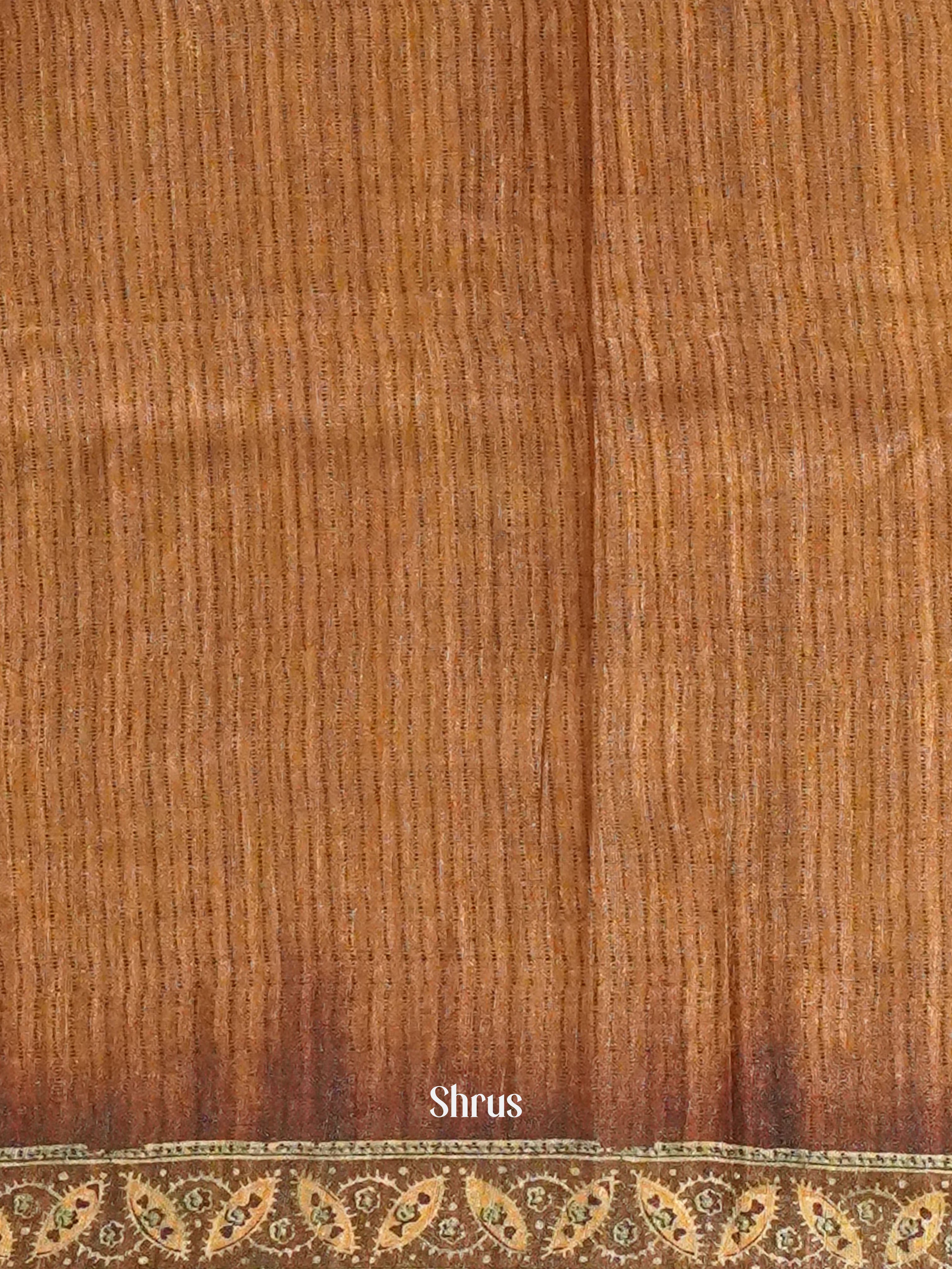 Pretty Light Brown Semi Gicha Saree enchants with floral print on the body , & bounded with Brown printed border , printed pallu lends a beautiful compliment . Comes with self blouse completes the ensemble