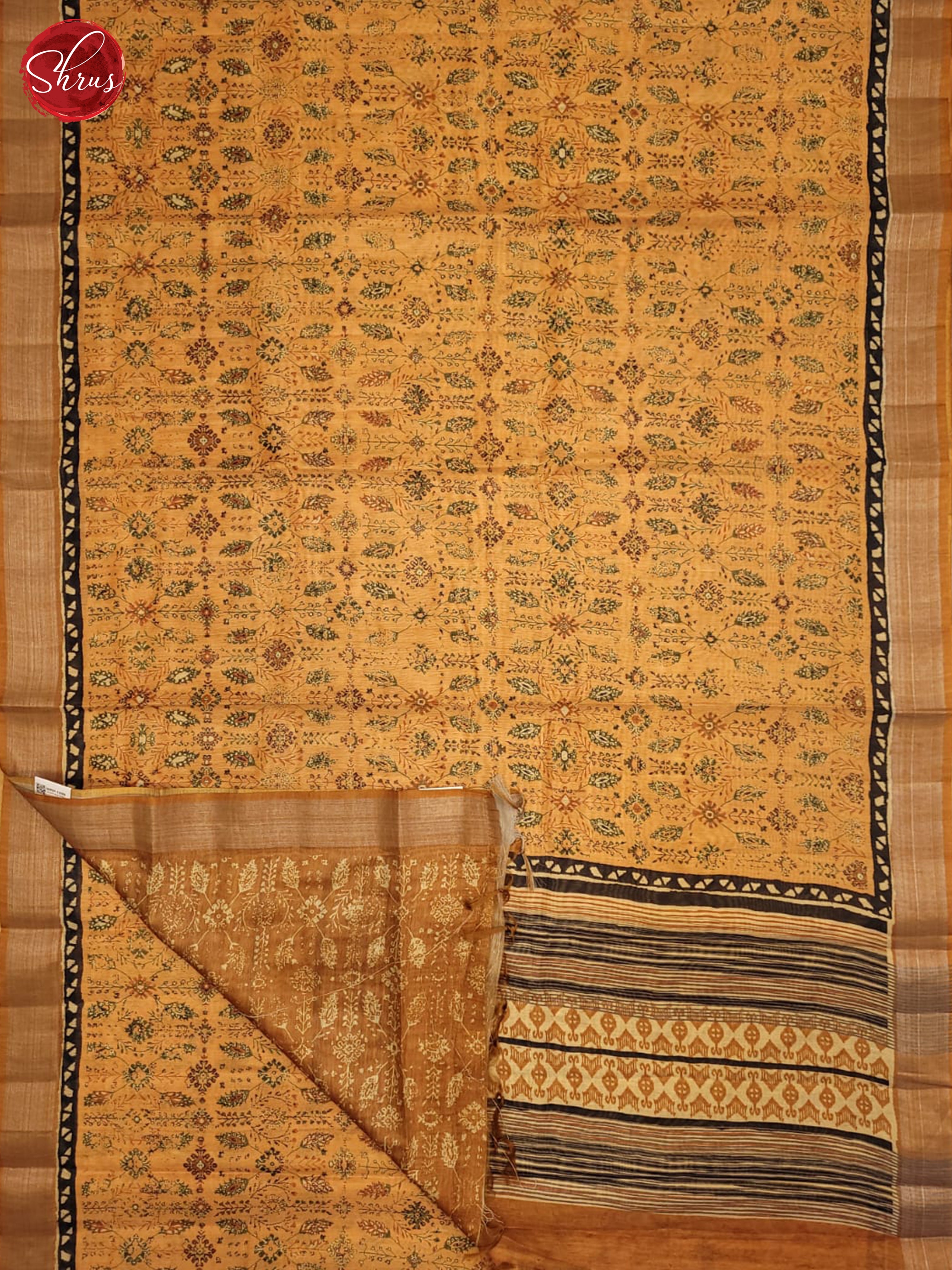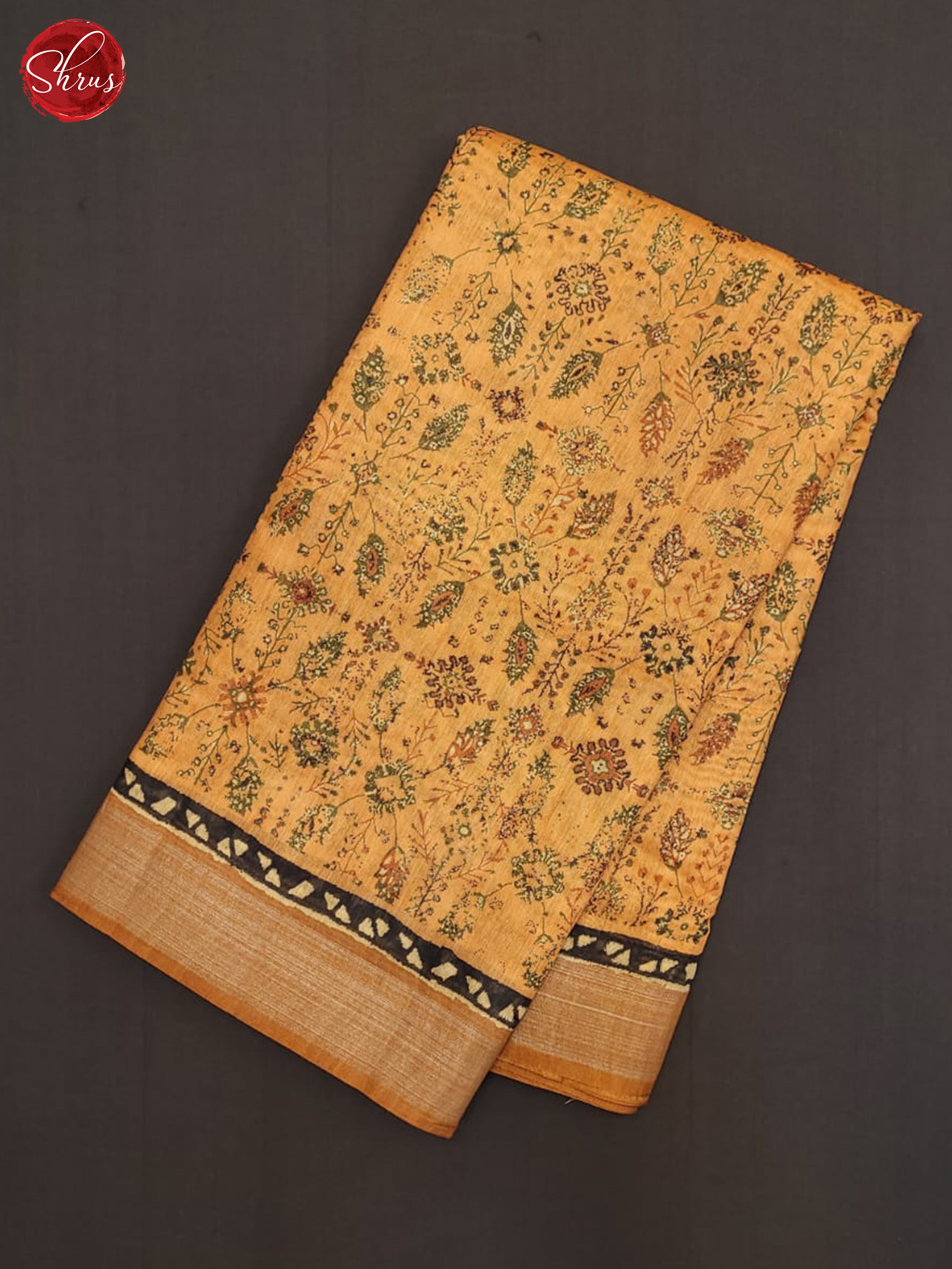 Bright Yellow Semi Gicha Saree enchants with printed body , & bounded with self zari border , pallu lends a beautiful compliment . Comes with printed self blouse completes the ensemble