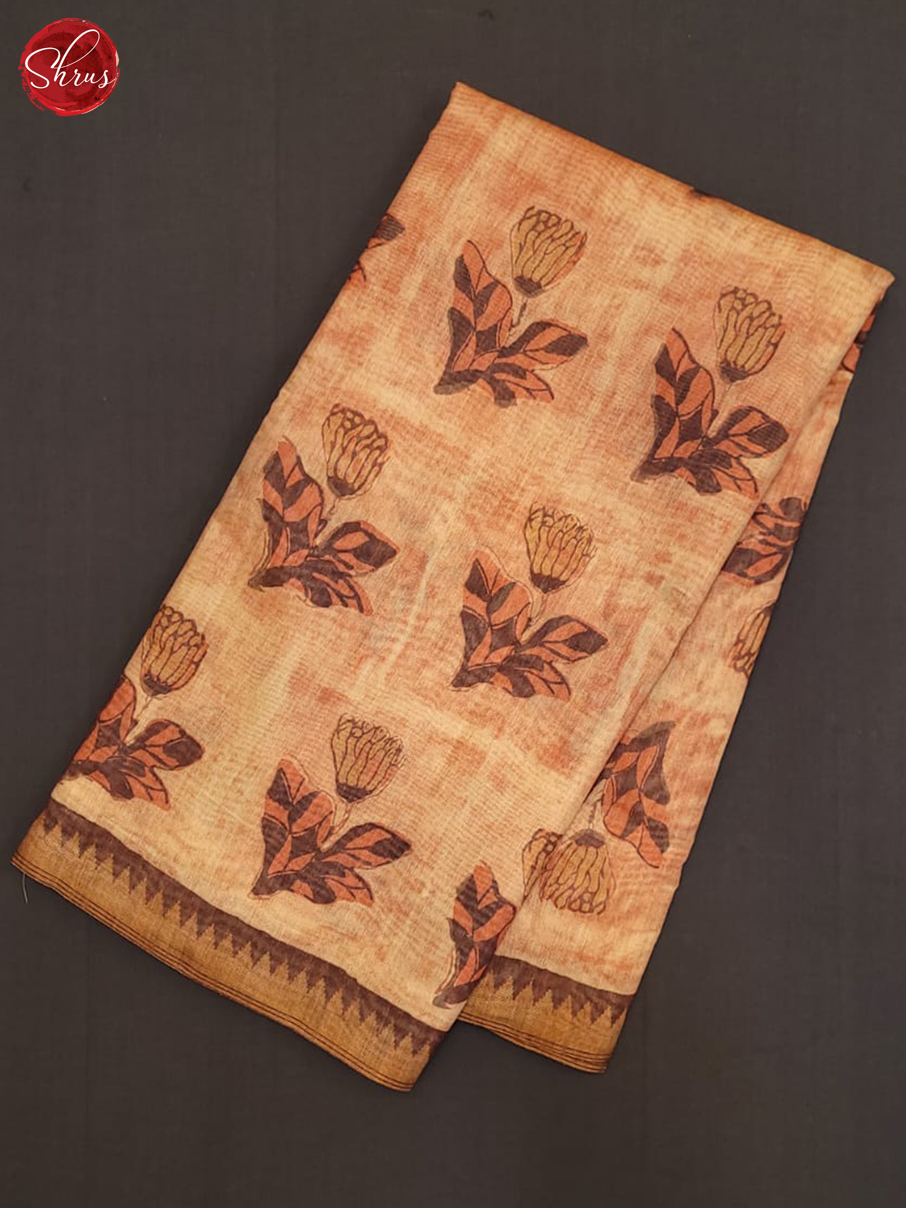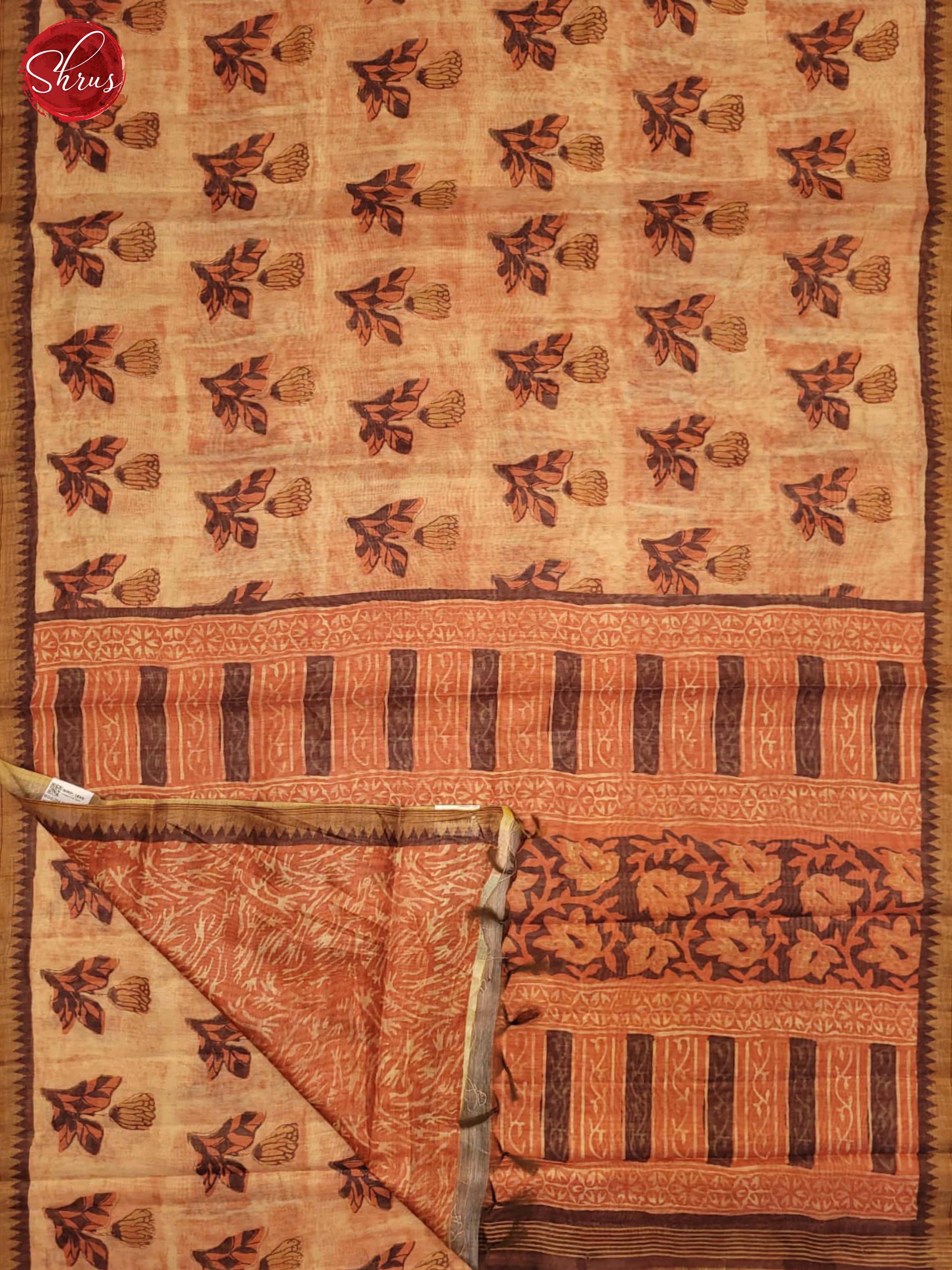 Beautiful Orange Semi Gicha Saree enchants with floral printed body , & bounded with thin zari border , pallu lends a beautiful compliment . Comes with printed self blouse completes the ensemble