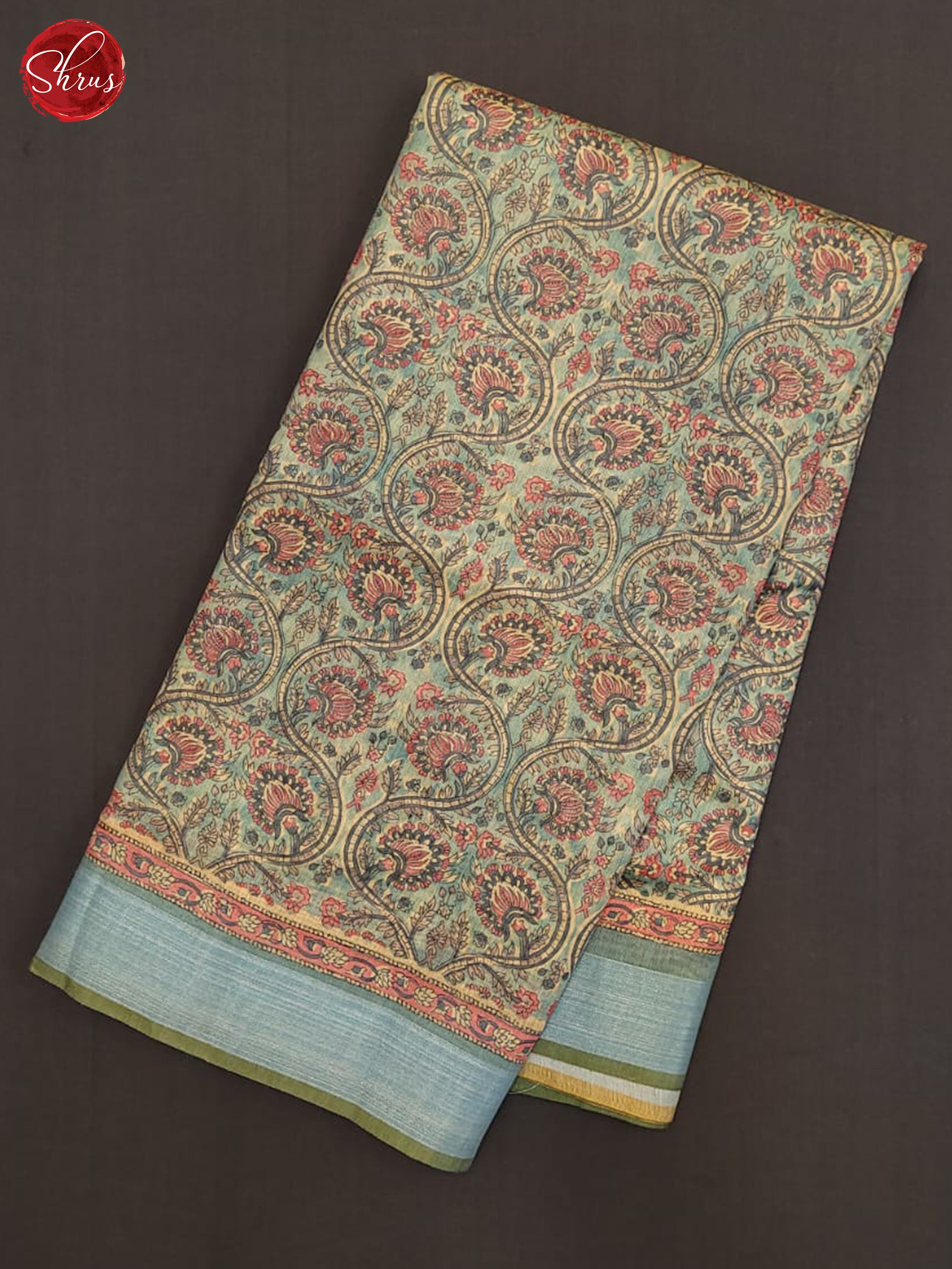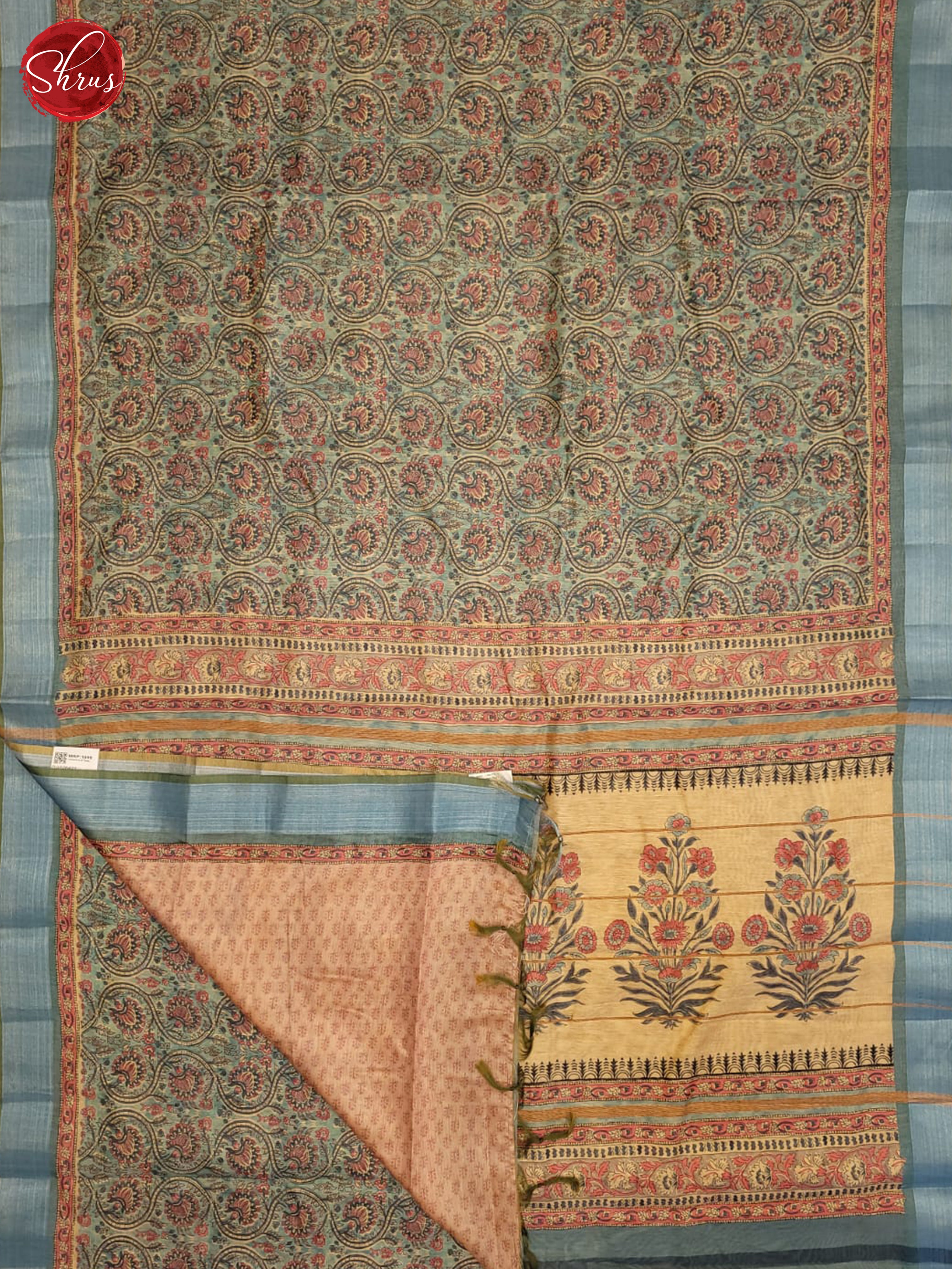 Pretty Blue Semi Gicha Saree enchants with floral printed body , & bounded with contrast Beige printed border , pallu lends a beautiful compliment . Comes with pink printed blouse completes the ensemble