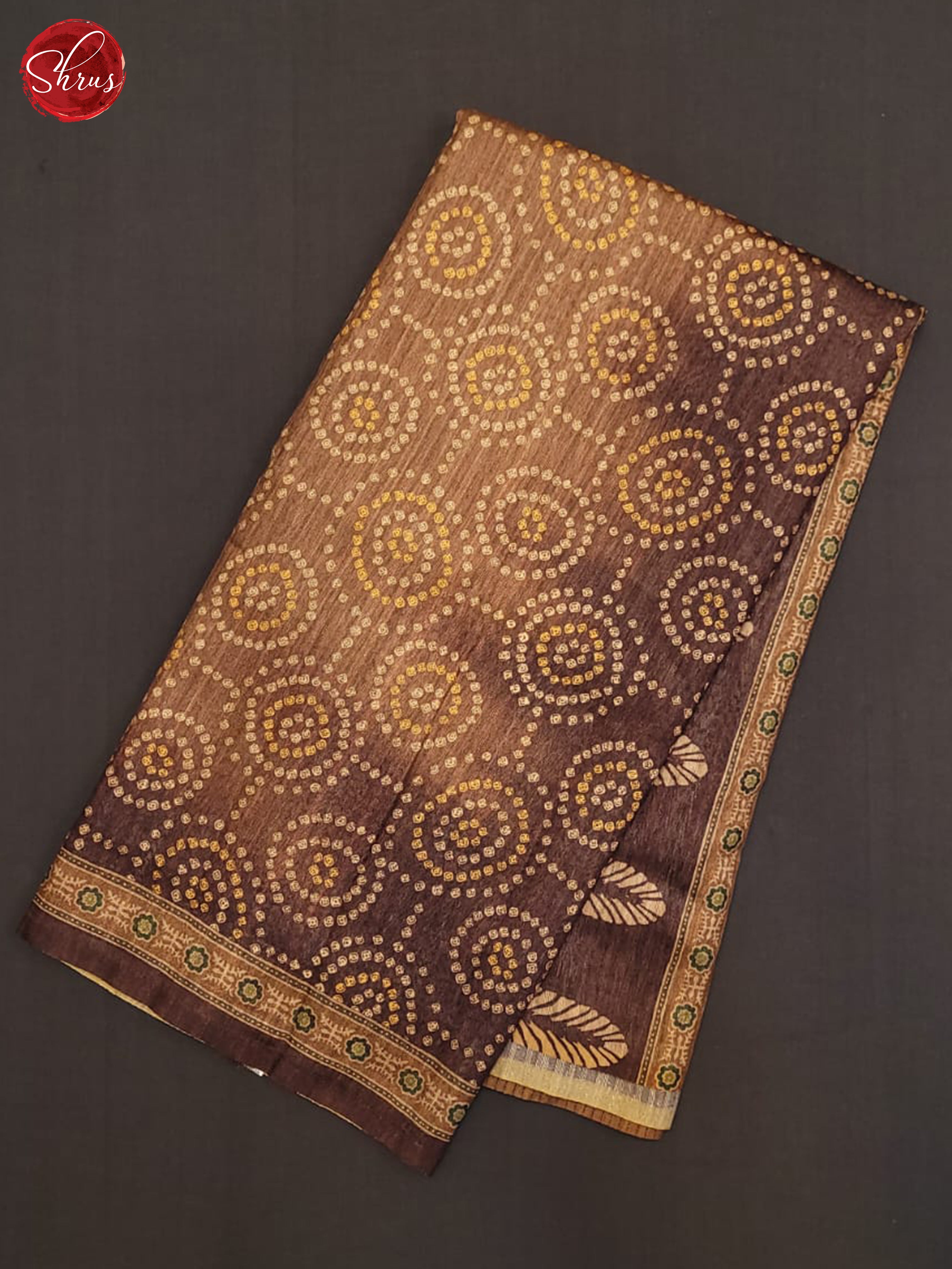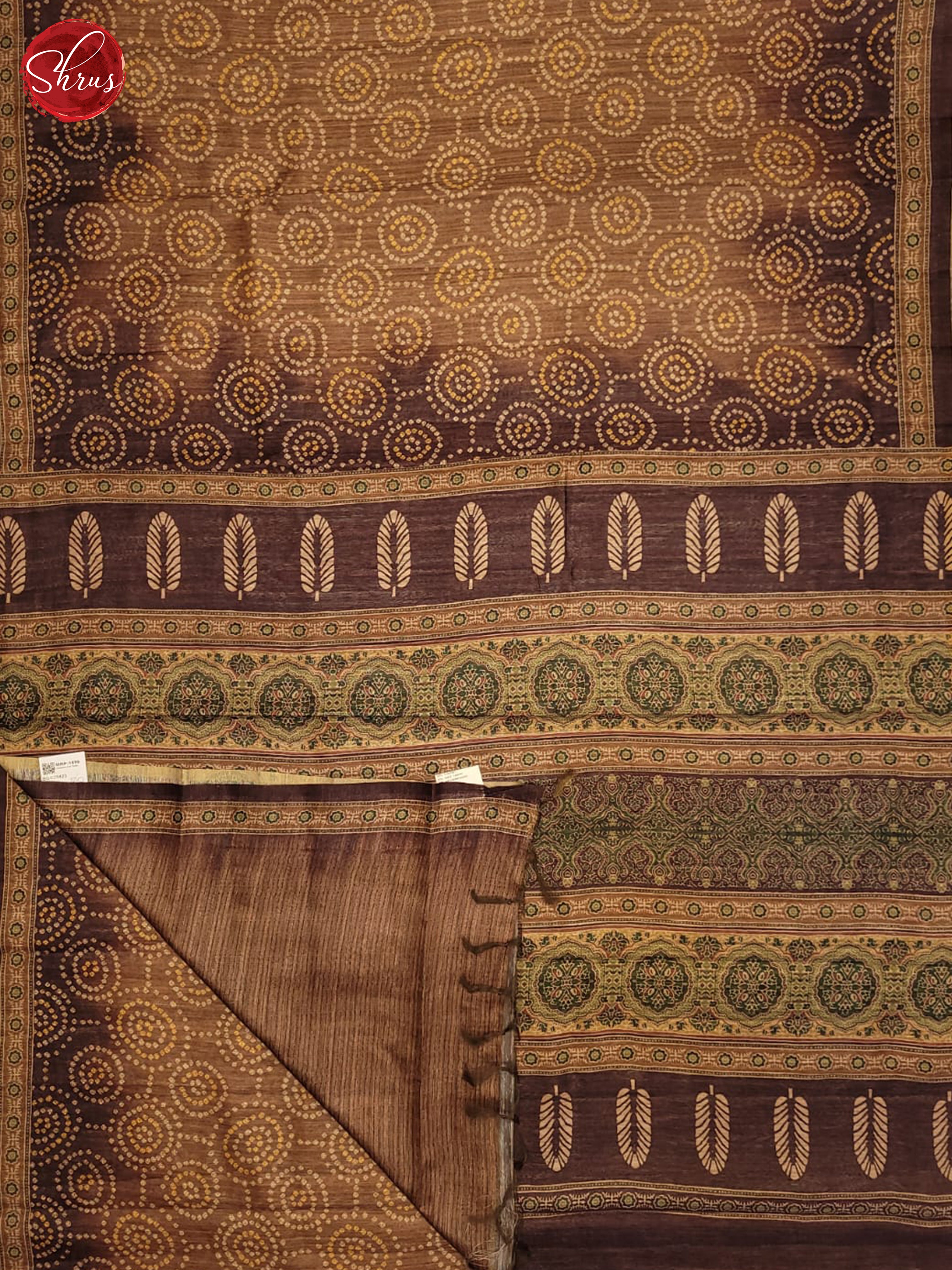 Pretty Brown Semi Gicha Saree enchants with floral printed body , & bounded with printed border , pallu lends a beautiful compliment . Comes with Brown printed blouse completes the ensemble