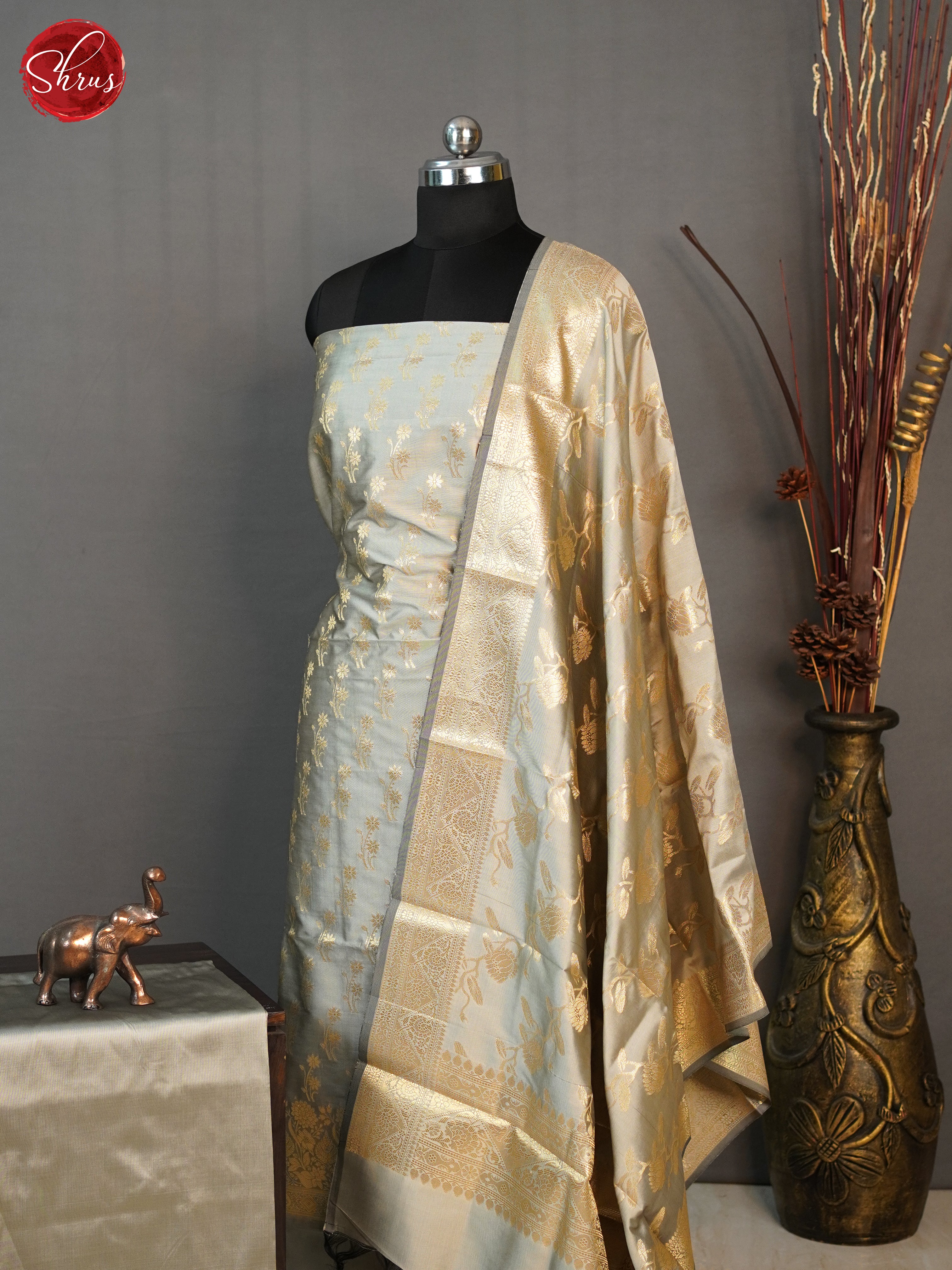 Elegant Grey Semi Banarasi Unstitched Salwar with zari buttas on the top . Paired with lovely self plain bottom & zari dupatta completes the ensemble