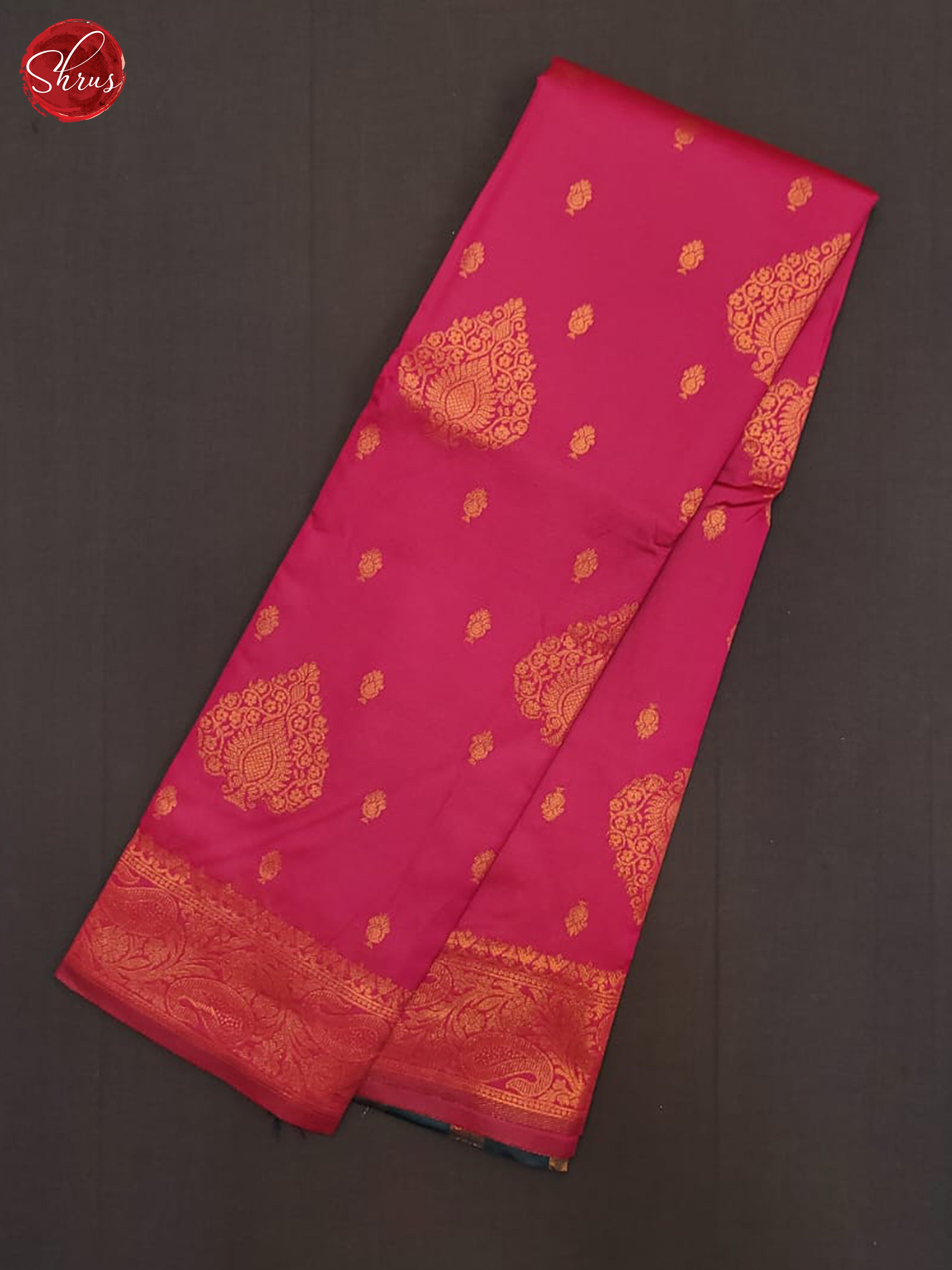 Charming Pink Semi Soft Silk saree enchants with zari woven floral motifs on the body & Bounded by zari border .The rich Blue zari woven brocade Pallu adds elegance . Attached with zari butta Blue blouse with border completes The ensemble