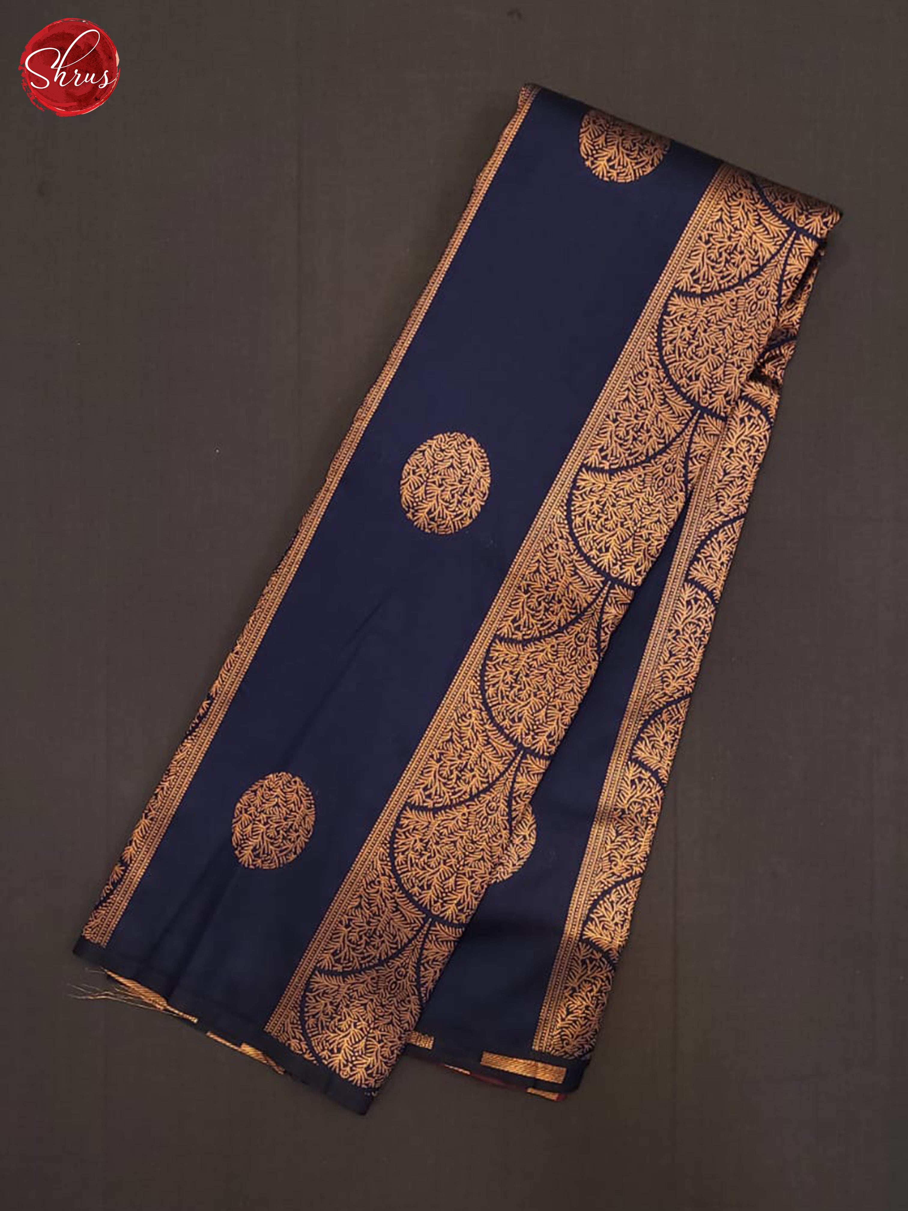 Pretty Navy Blue Semi Soft Silk saree enchants with zari woven floral motifs on the body .The rich contrast Maroon zari woven brocade Pallu adds elegance . Attached with zari butta Maroon blouse with border completes The ensemble