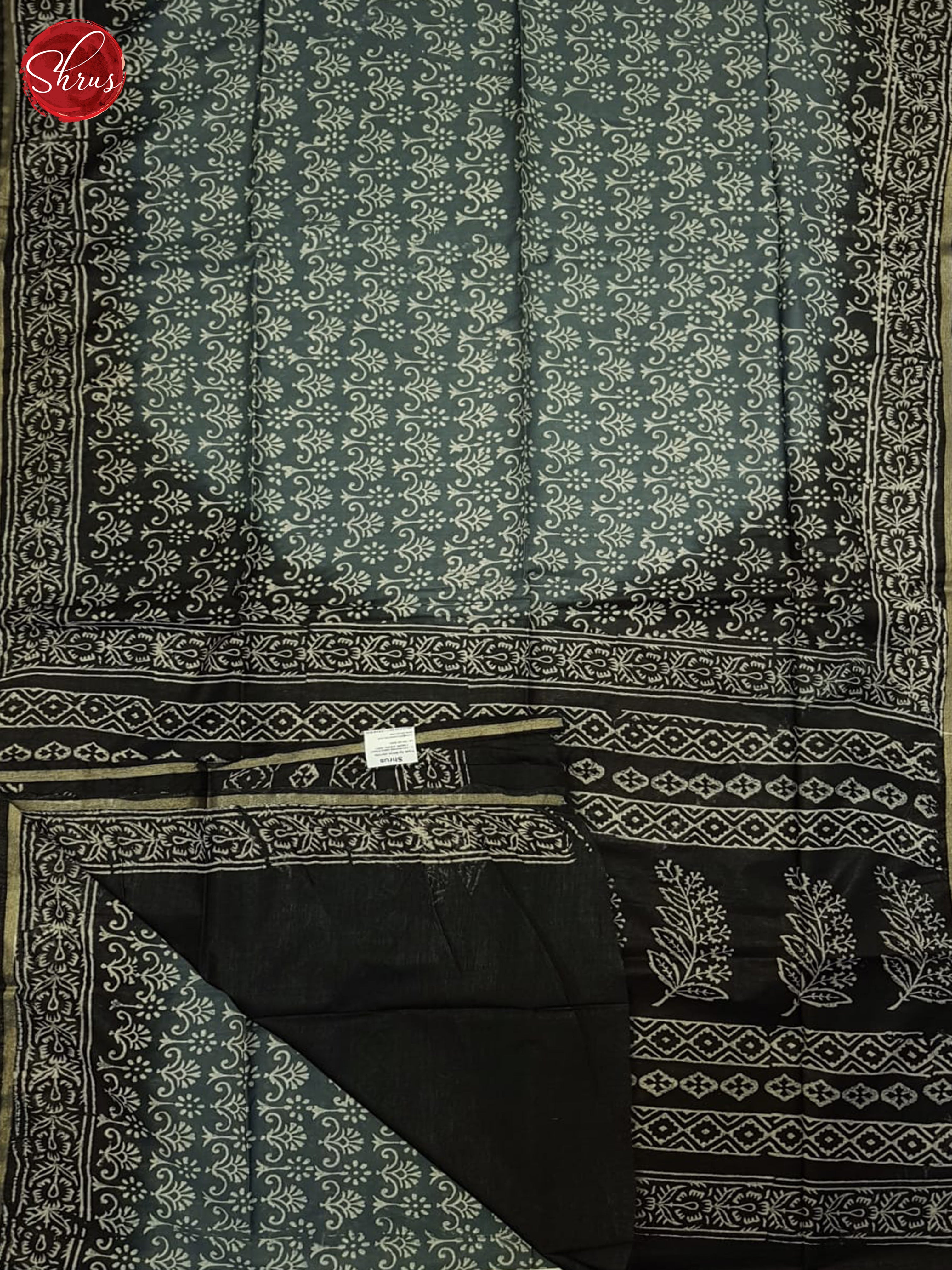 Charming Grey Semi Chanderi printed saree with floral Print on the body & bounded with contrast Black printed border The Black printed pallu & plain blouse with border gives a perfect fit