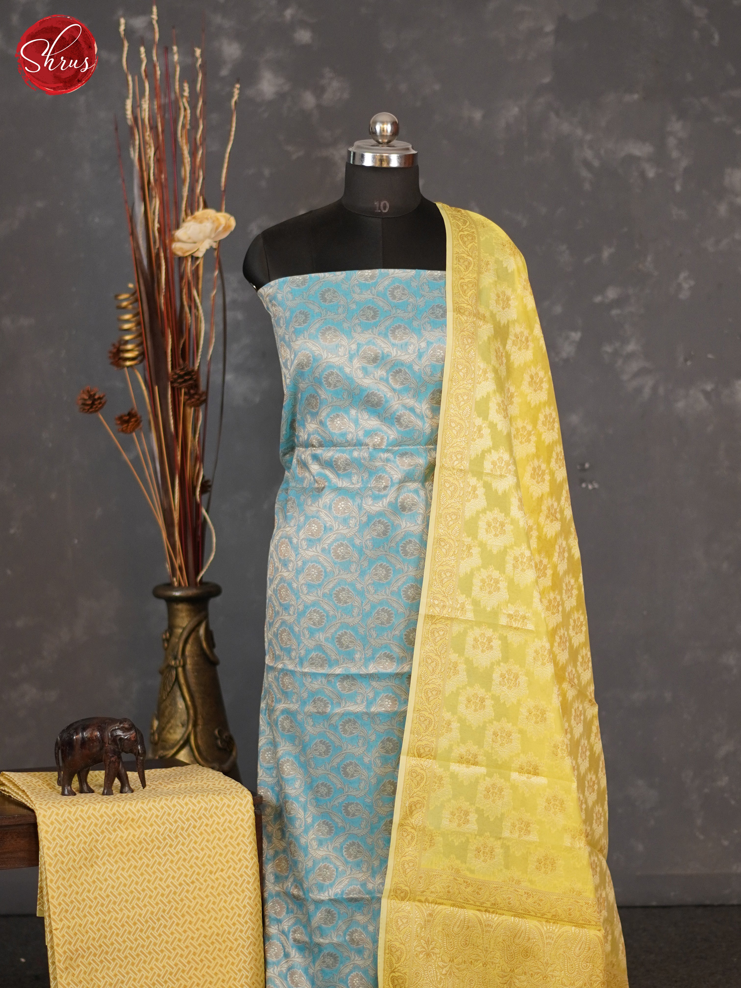 Blue & Yellow- Semi banaras salwar