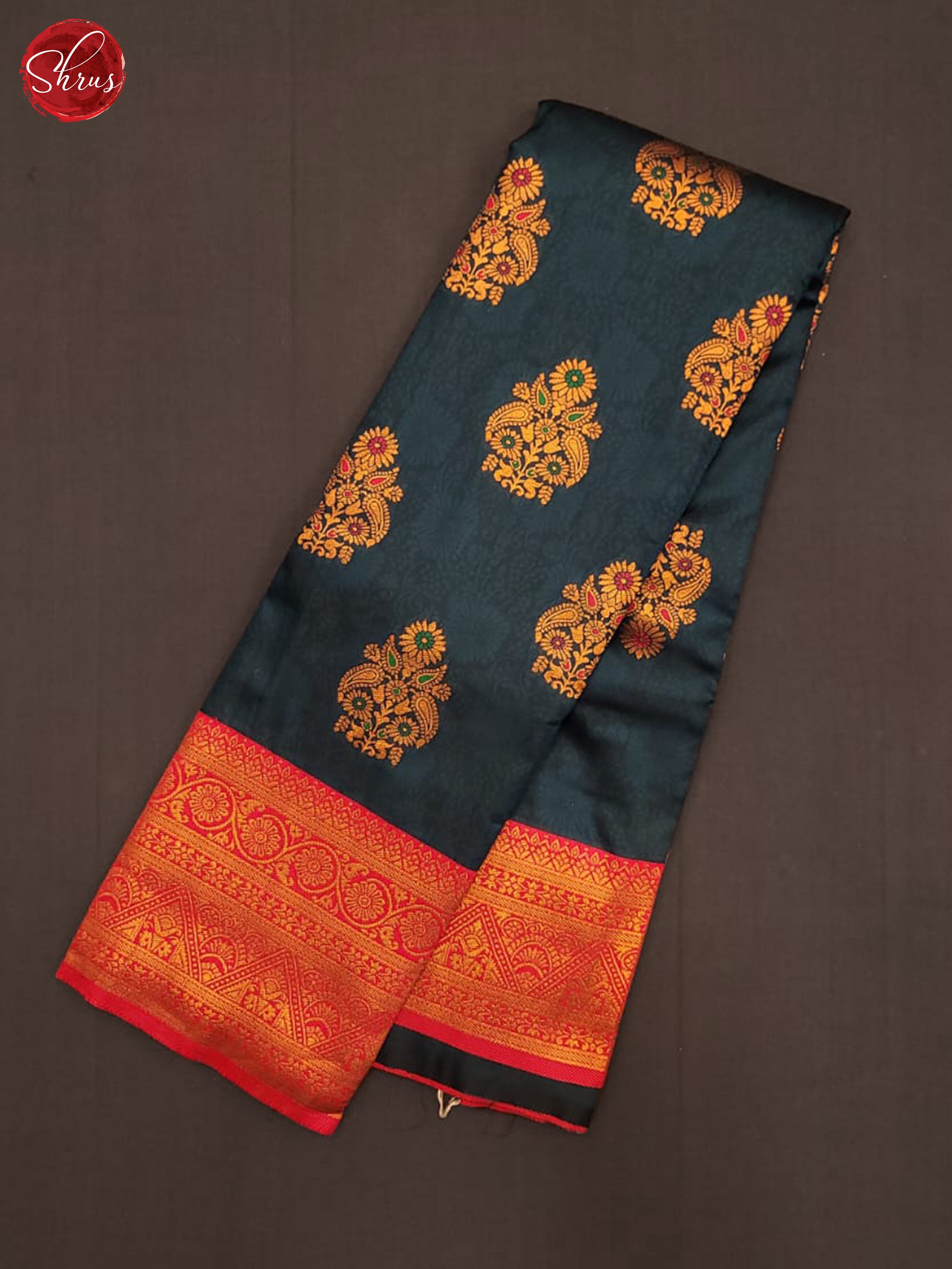 Pretty Peacock Blue Semi Soft Silk gleams with gold zari woven floral motifs on the body The chic weave is complemented with a Orange zari woven border & pallu with zari brocade . The contrast zari brocade Orange blouse with zari border is a beautiful finish