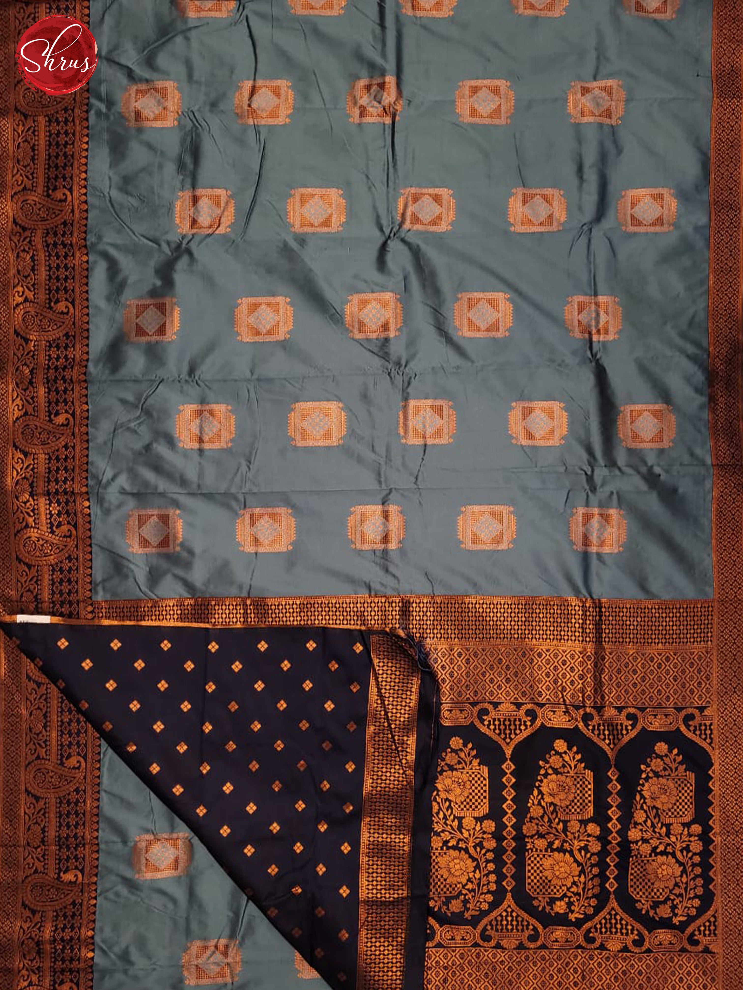 Elegant Grey Semi Soft Silk gleams with gold zari woven motifs on the body The chic weave is complemented with a self zari woven border & contrast Blue pallu with zari brocade . The contrast zari brocade Blue blouse with zari border is a beautiful finish