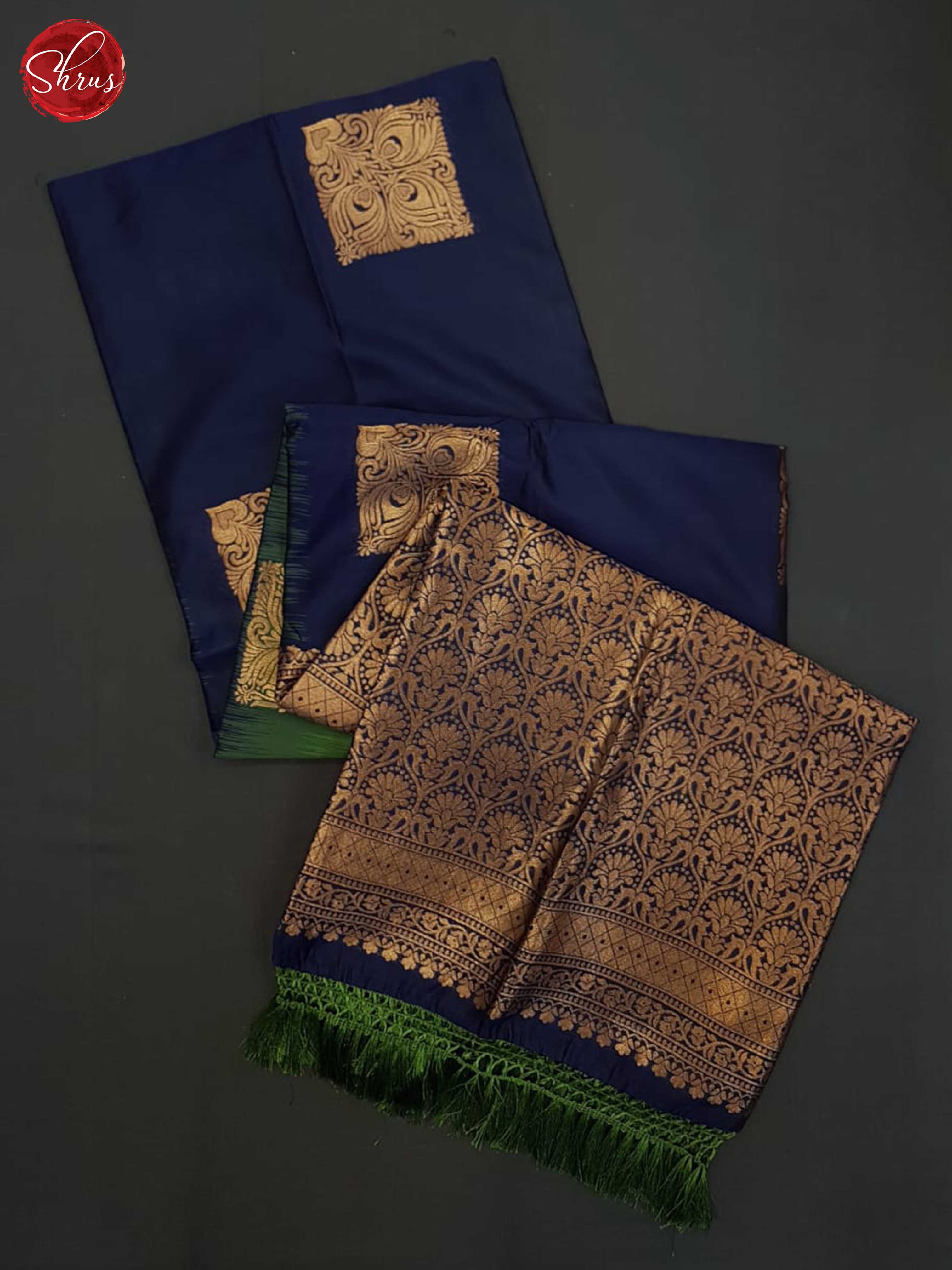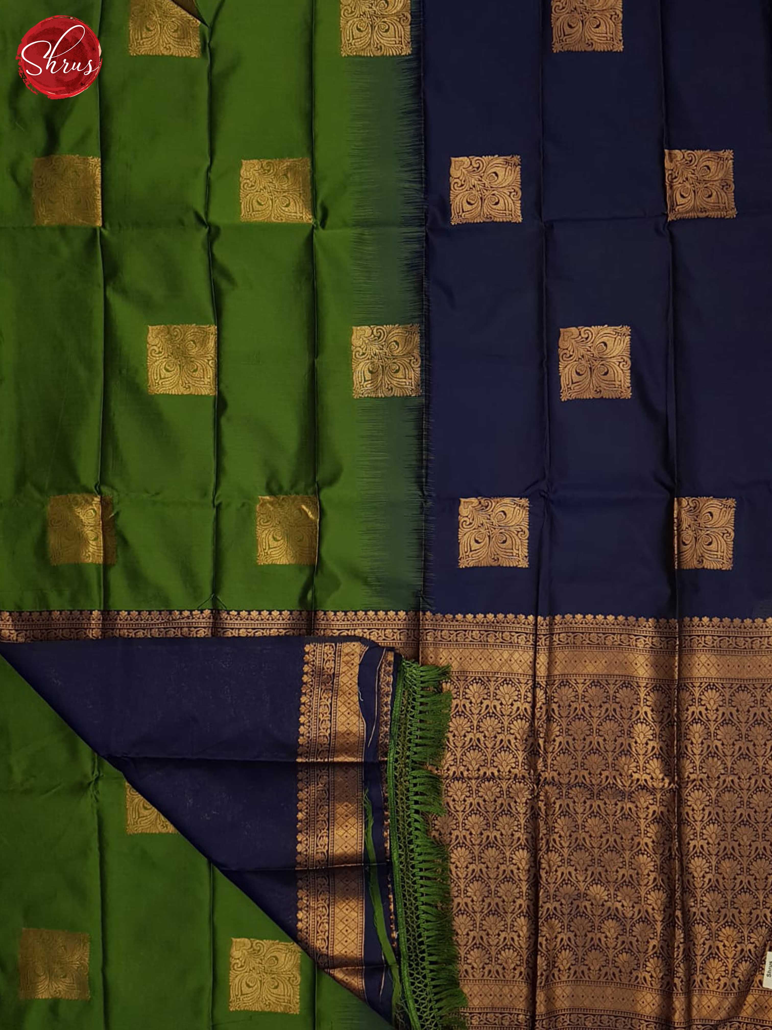 Charming blue and green Semi Silk saree enchant with zari woven block motifs on the body .The rich contrast blue zari woven Pallu adds elegance . Attached with plain blue blouse with border completes The ensemble