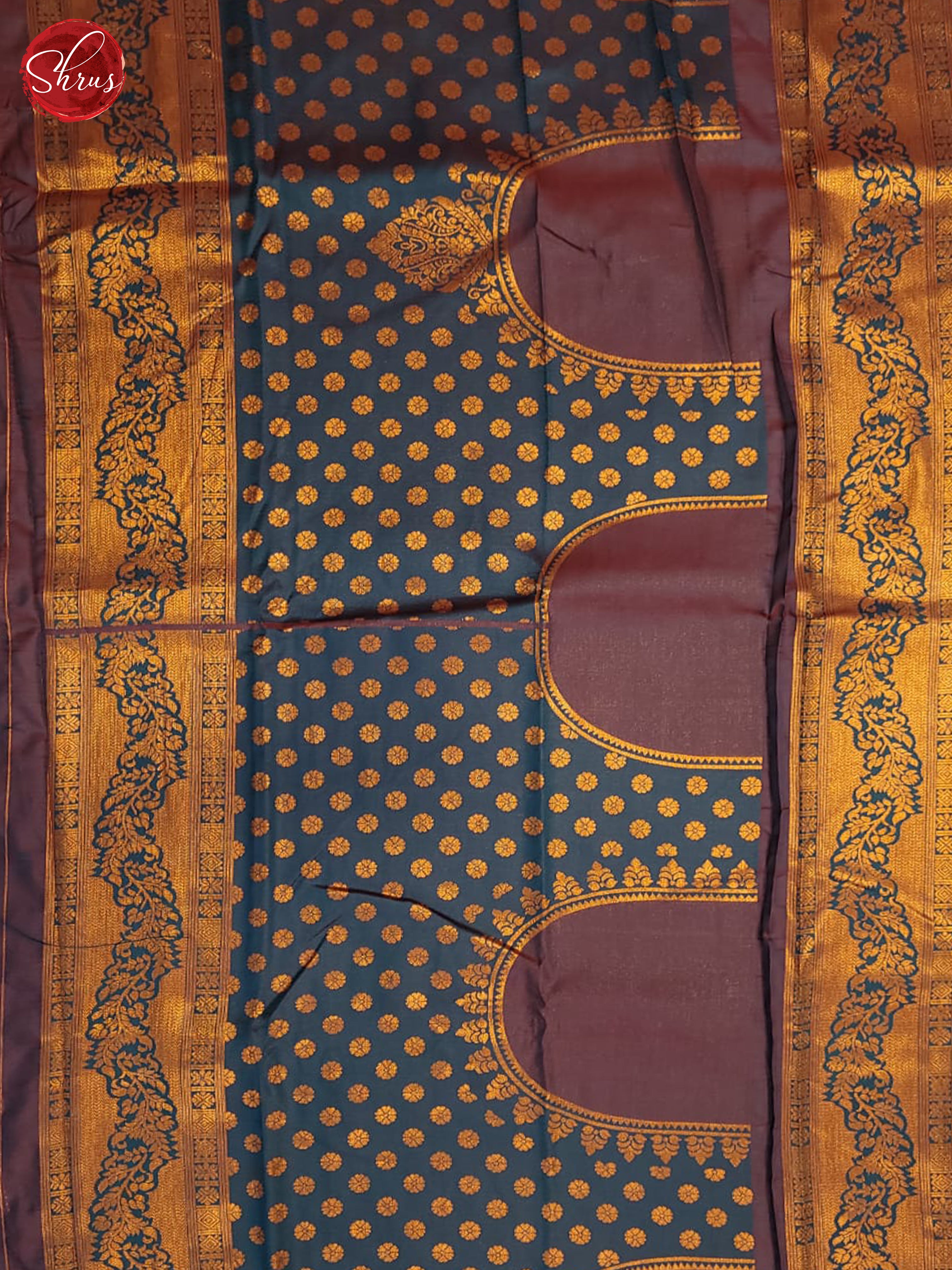 Charming Pink Semi Kanchipuram Silk saree enchants with zari floral motifs on the body .The rich self gold zari woven border & Blue brocade pallu adds prettiness Comes with zari brocade Purple blouse with zari border looks enchantingly pretty