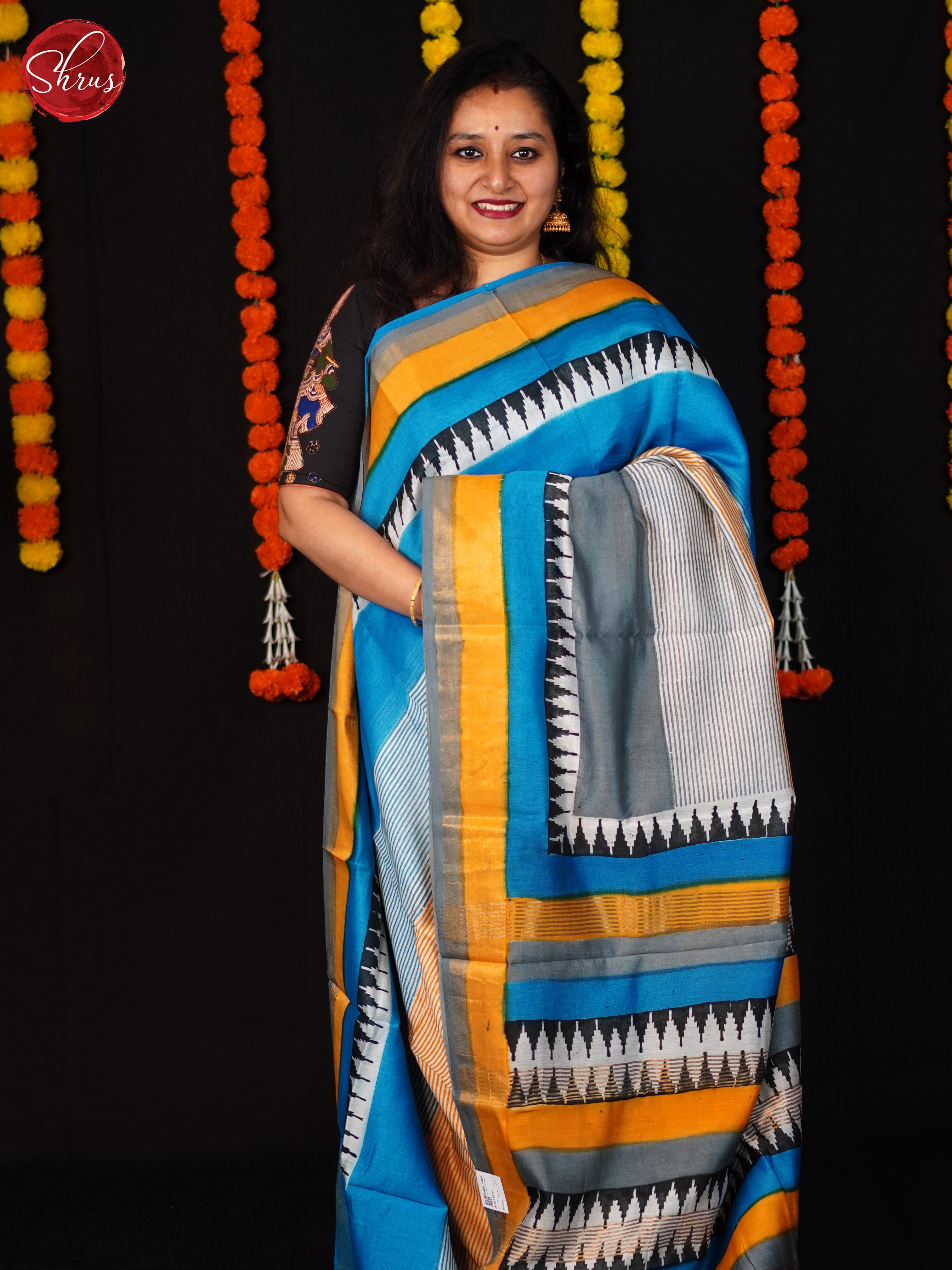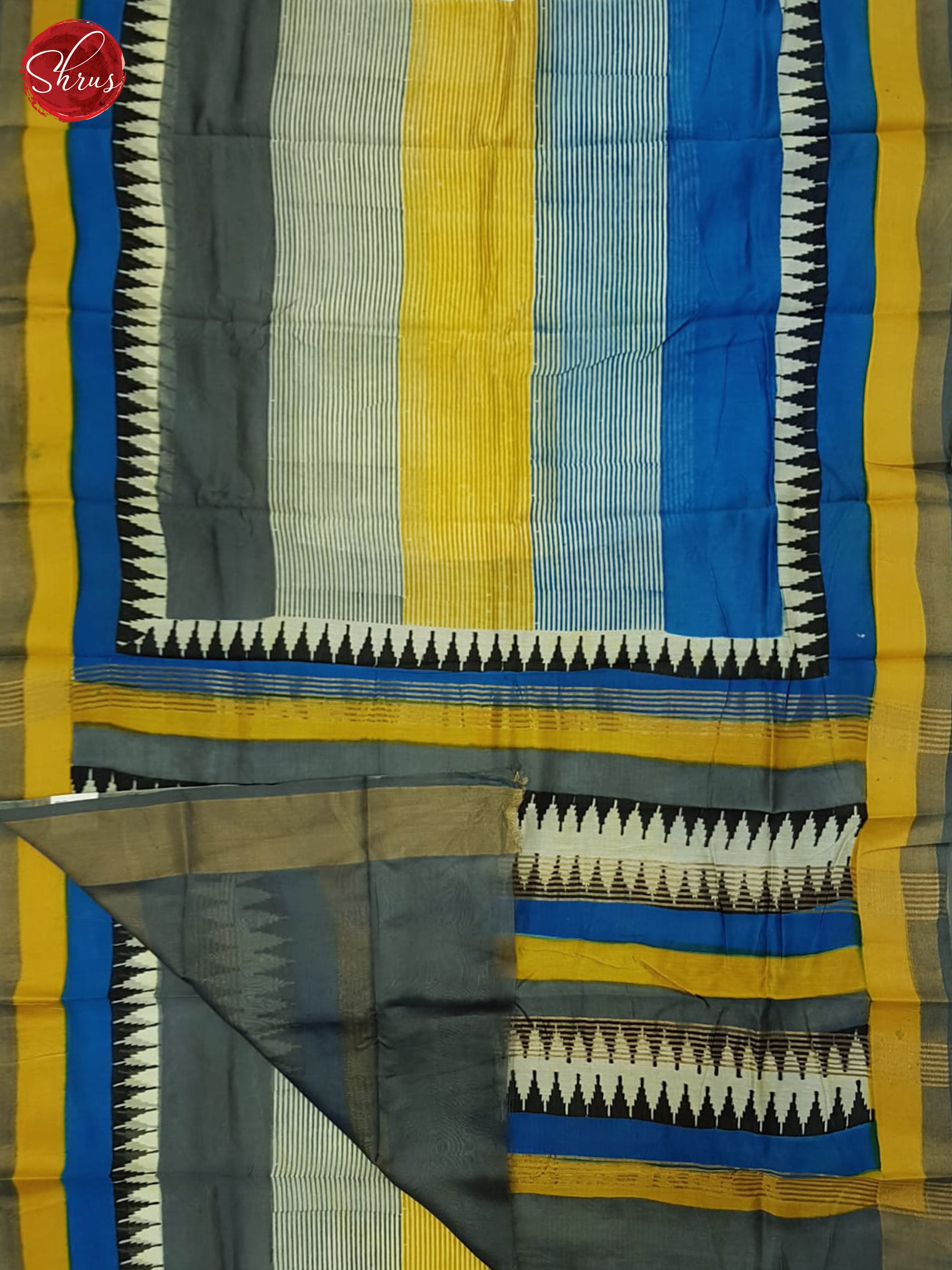 Beautiful Multicolor Moonga Silk Saree with stripes body & bounded with zari Border makes the saree elegant .The self printed pallu with zari stripes & Plain Grey Blouse with zari border gives a perfect fit