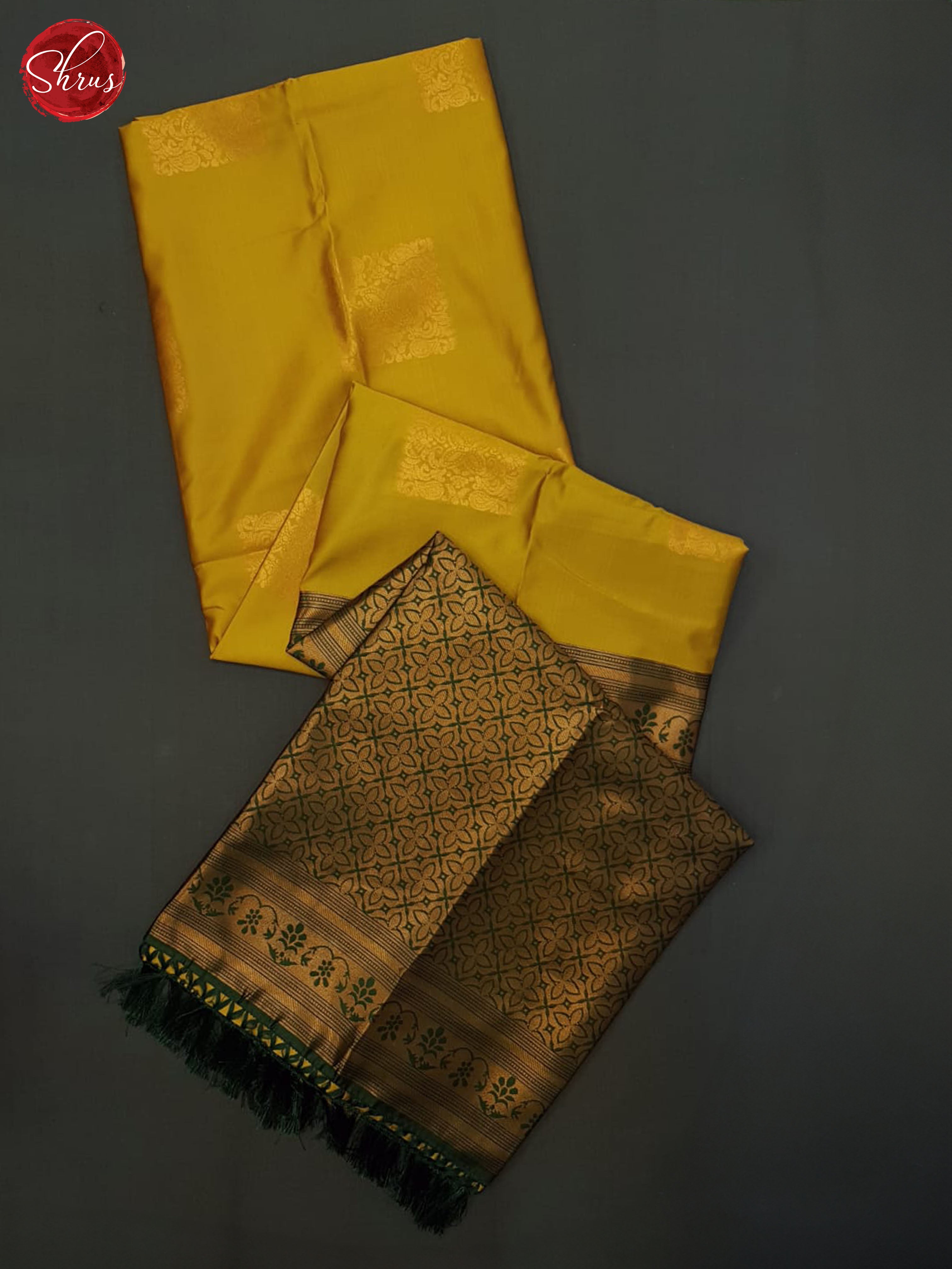 Pretty Mustarrd Semi Silk saree enchants with zari woven floral block motifs on the body .The rich contrast Green zari woven brocade Pallu adds elegance . Attached with butta Green blouse with border completes The ensemble.