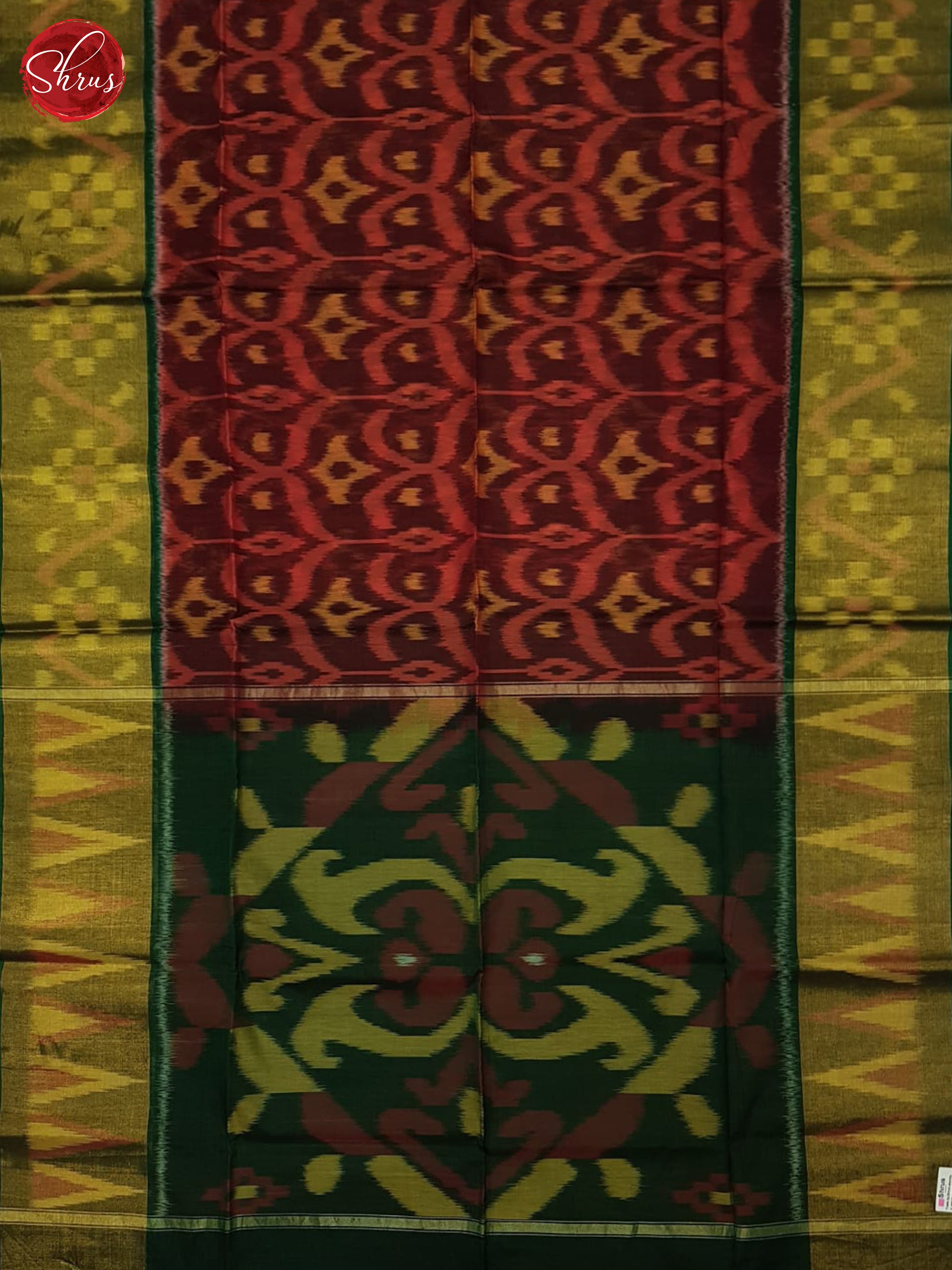 Arraku Marron And Green-Pochampally Silk Cotton Saree