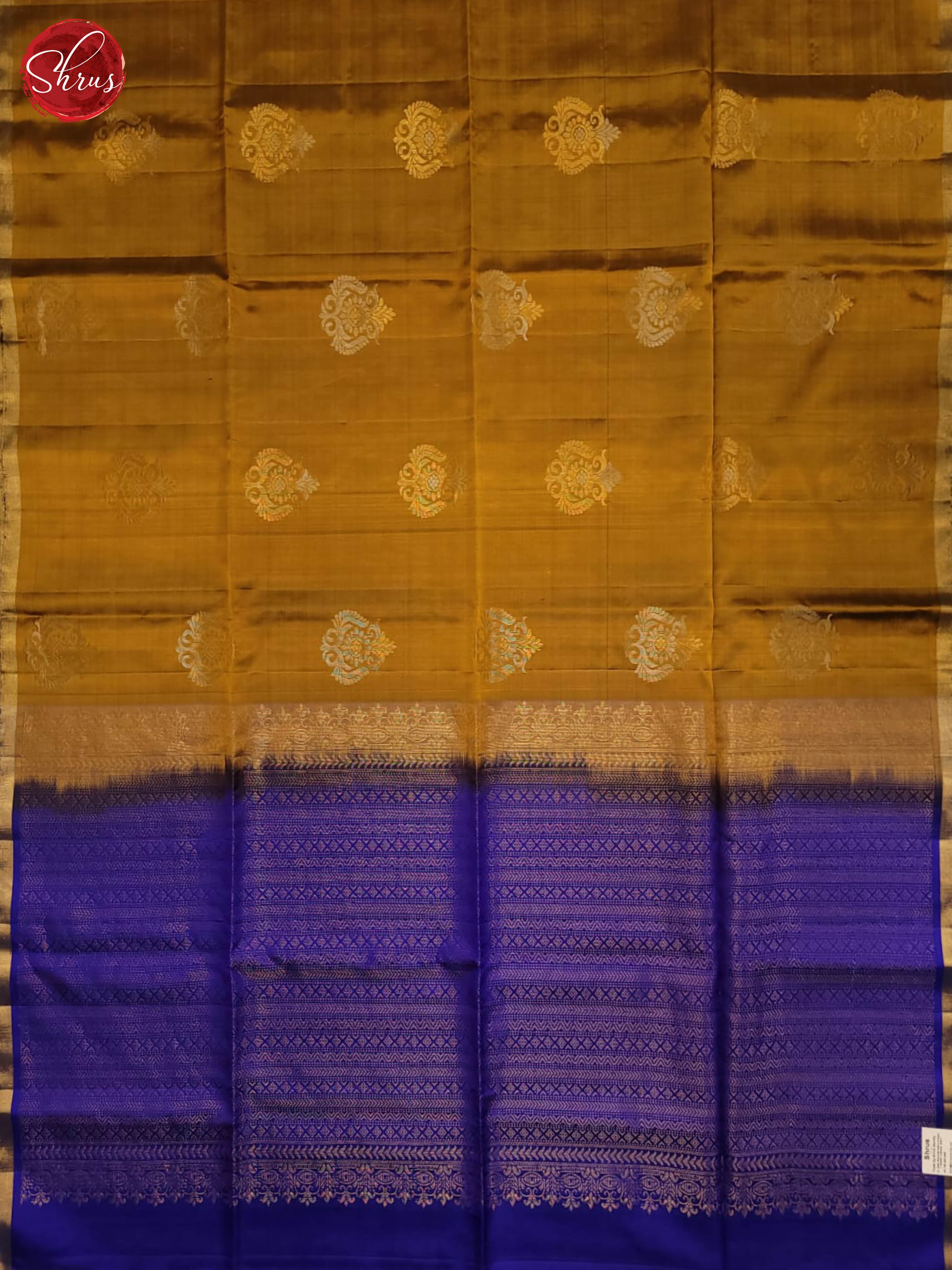Elegant Mustard Silk (Half Pure) Saree enchants with zari woven motifs on the body & Bounded with thin zari border gives a classy look .The Splendid blue pallu with zari woven brocade & Plain blouse lends compliments