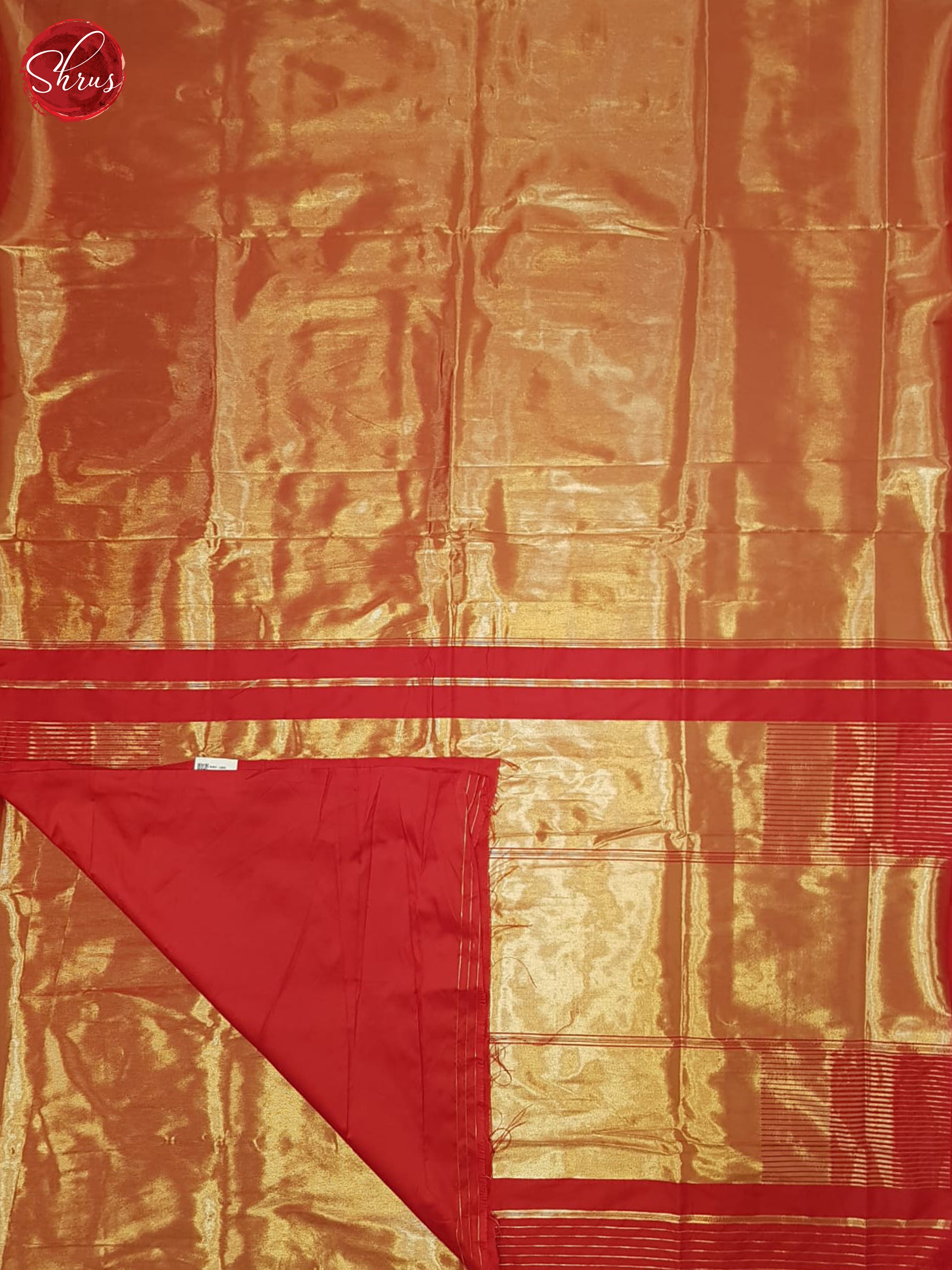 Pretty Red Shimmery Semi Tissue Saree enchants with zari Body & self zari woven pallu . Comes with plain blue Blouse complement beautifully