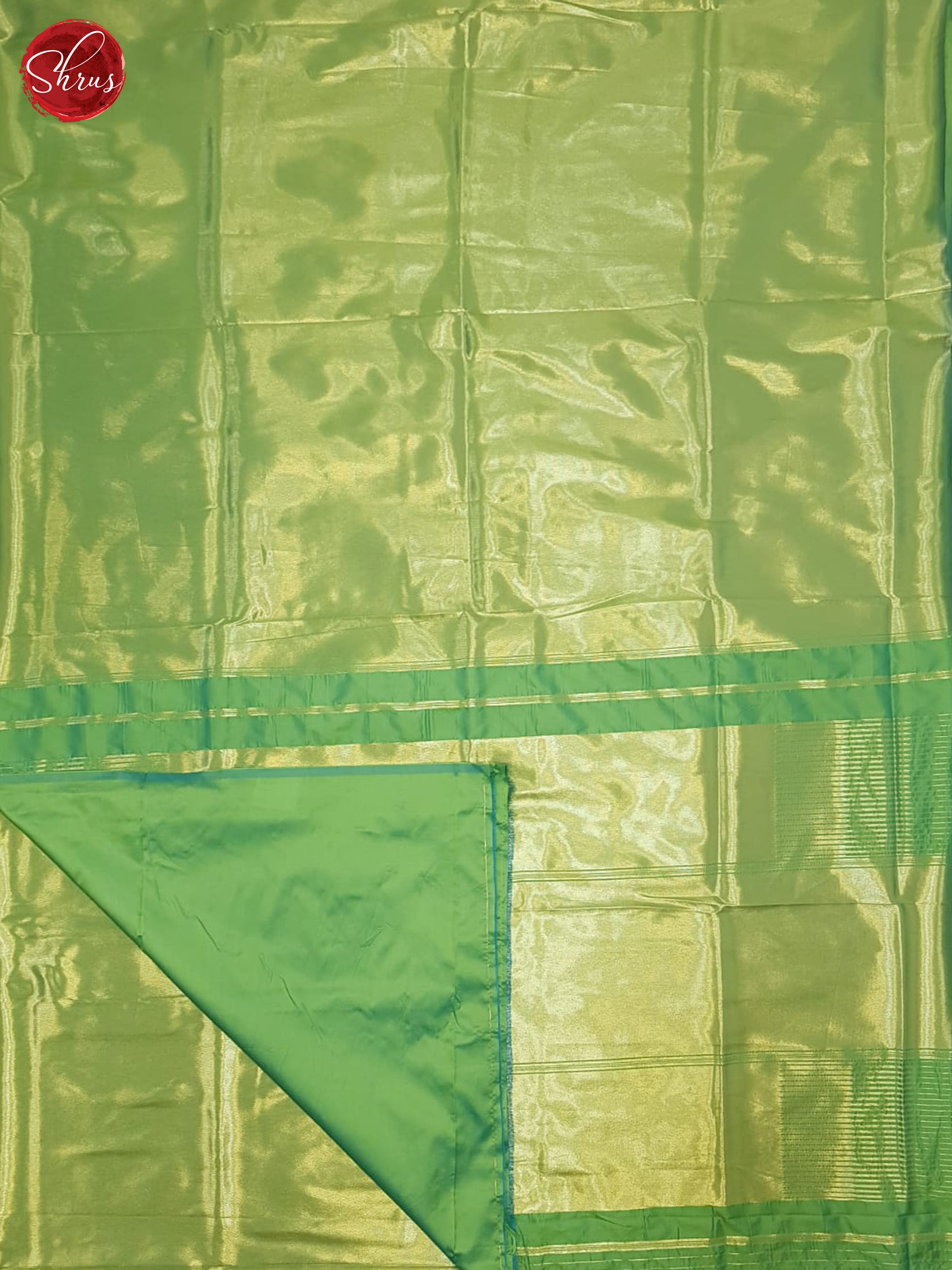 Pretty Green Shimmery Semi Tissue Saree enchants with zari Body & self zari woven pallu . Comes with plain blue Blouse complement beautifully
