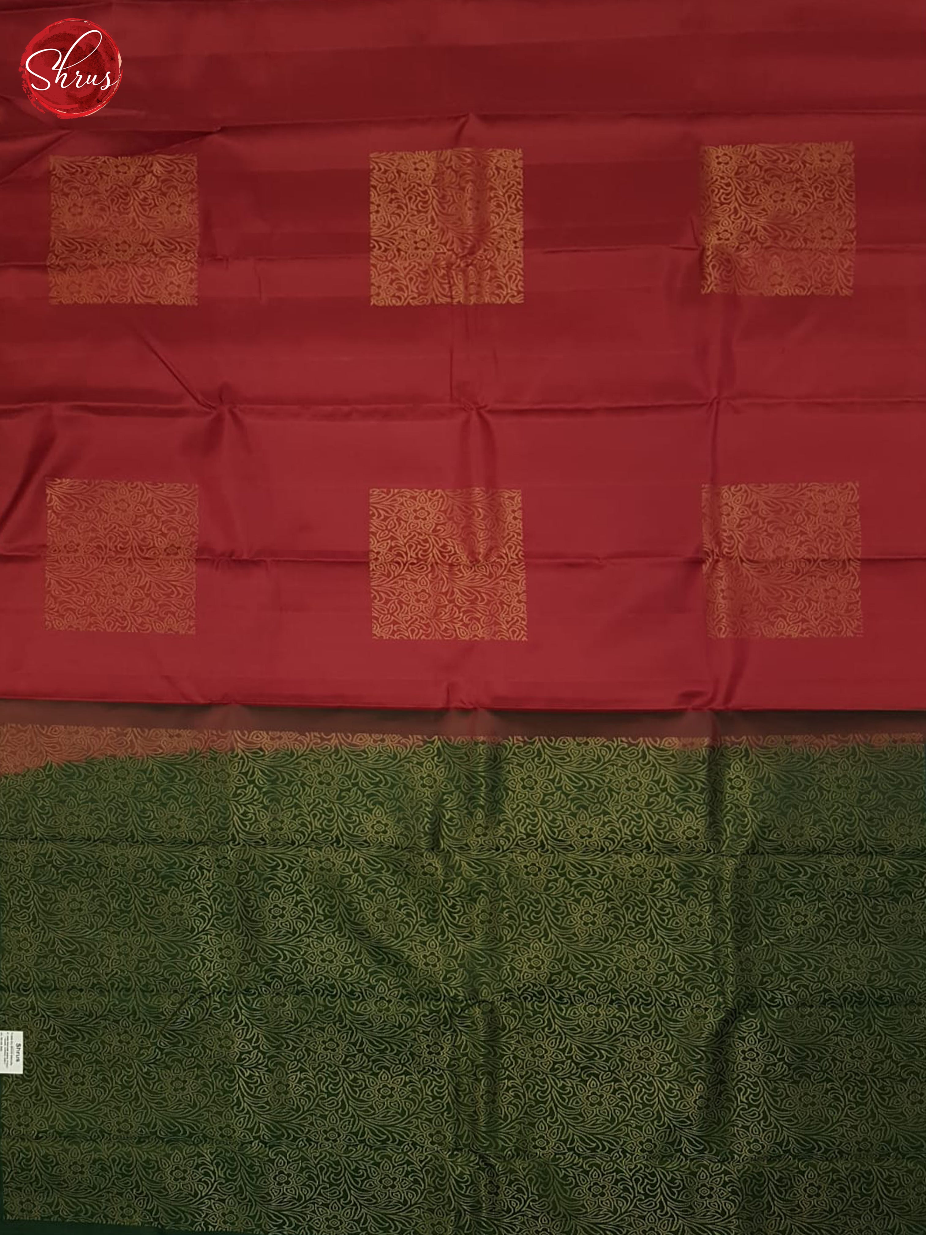 Very Pretty Red Soft silk saree is given a vibrant twist with Zari block motifs on the body. The delightful contrast Green Zari woven pallu with floral brocade is arrestingly pretty. A plain Green blouse completes this ensemble.