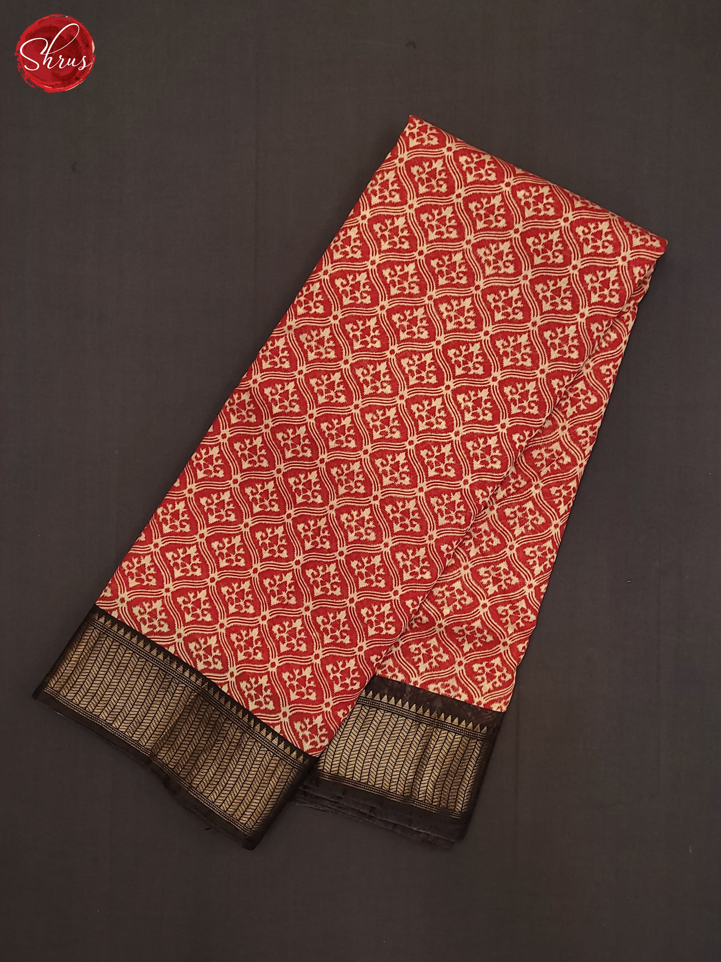 Beautiful Red Art Modal Silk saree with ajrakh block print on the body bounded with contrast Black zari border , and pallu adds charms, Comes with black blouse with zari border completes the ensemble.
