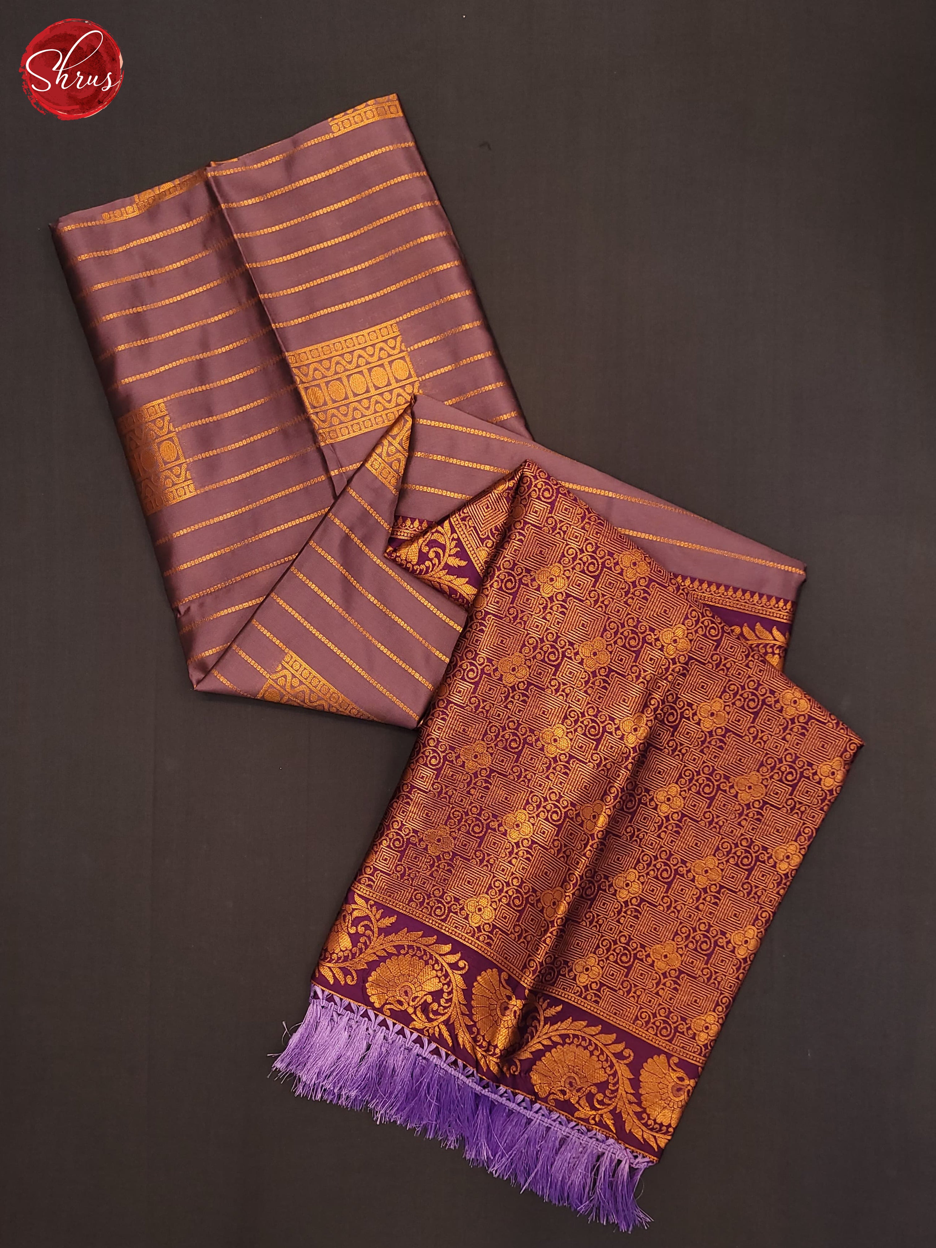 Pretty Mild LAvender Semi Silk saree enchants with zari woven stripes, block motifs on the body .The rich contrast Purple zari woven brocade Pallu adds elegance . Attached with zari butta purple blouse with border completes The ensemble