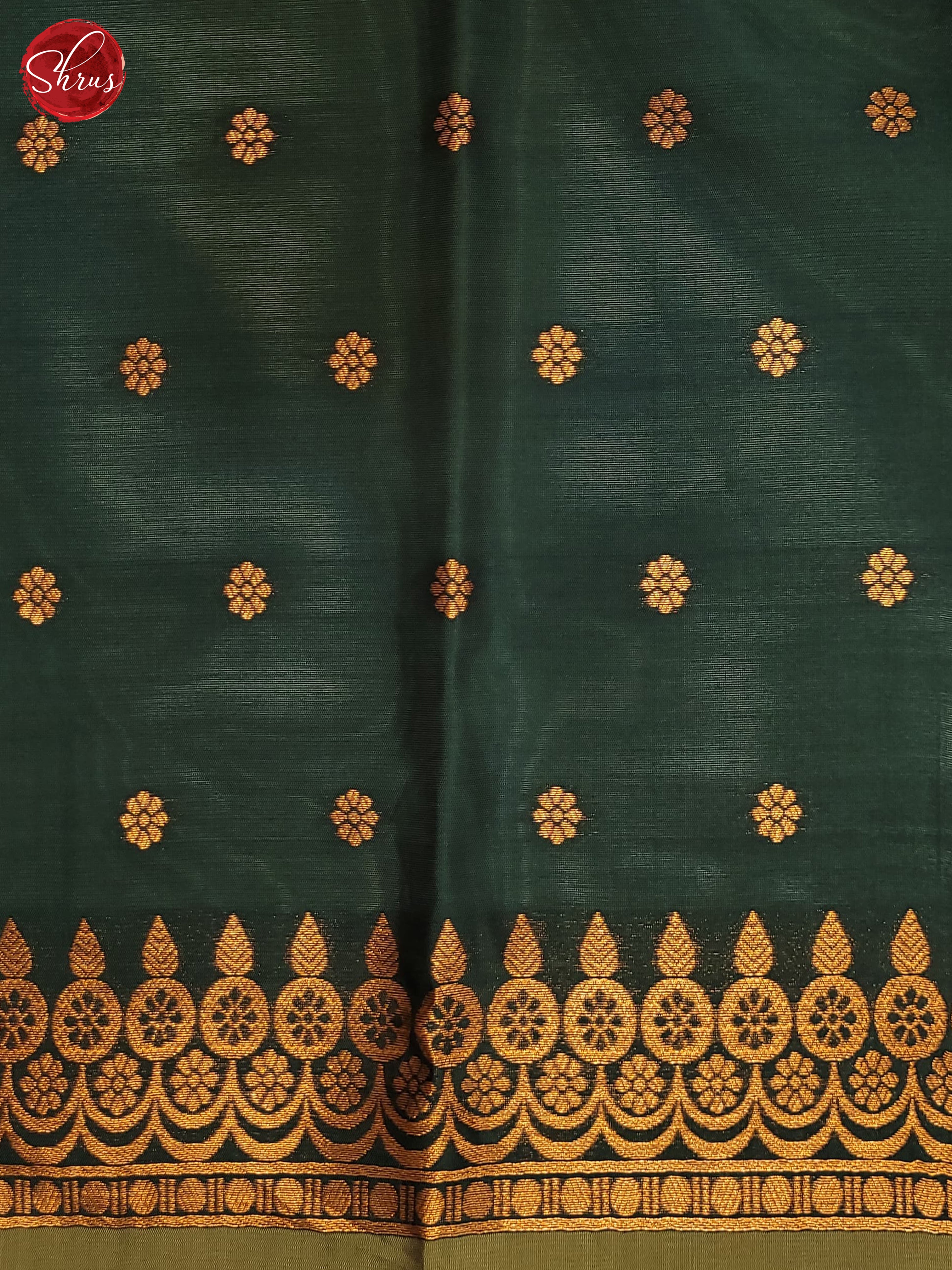 Elegant Elachi Green Semi soft Silk saree enchants with gold zari woven floral block motifs on the body .The rich contrast Green zari woven brocade Pallu adds elegance . Attached with zari butta green blouse with border completes The ensemble