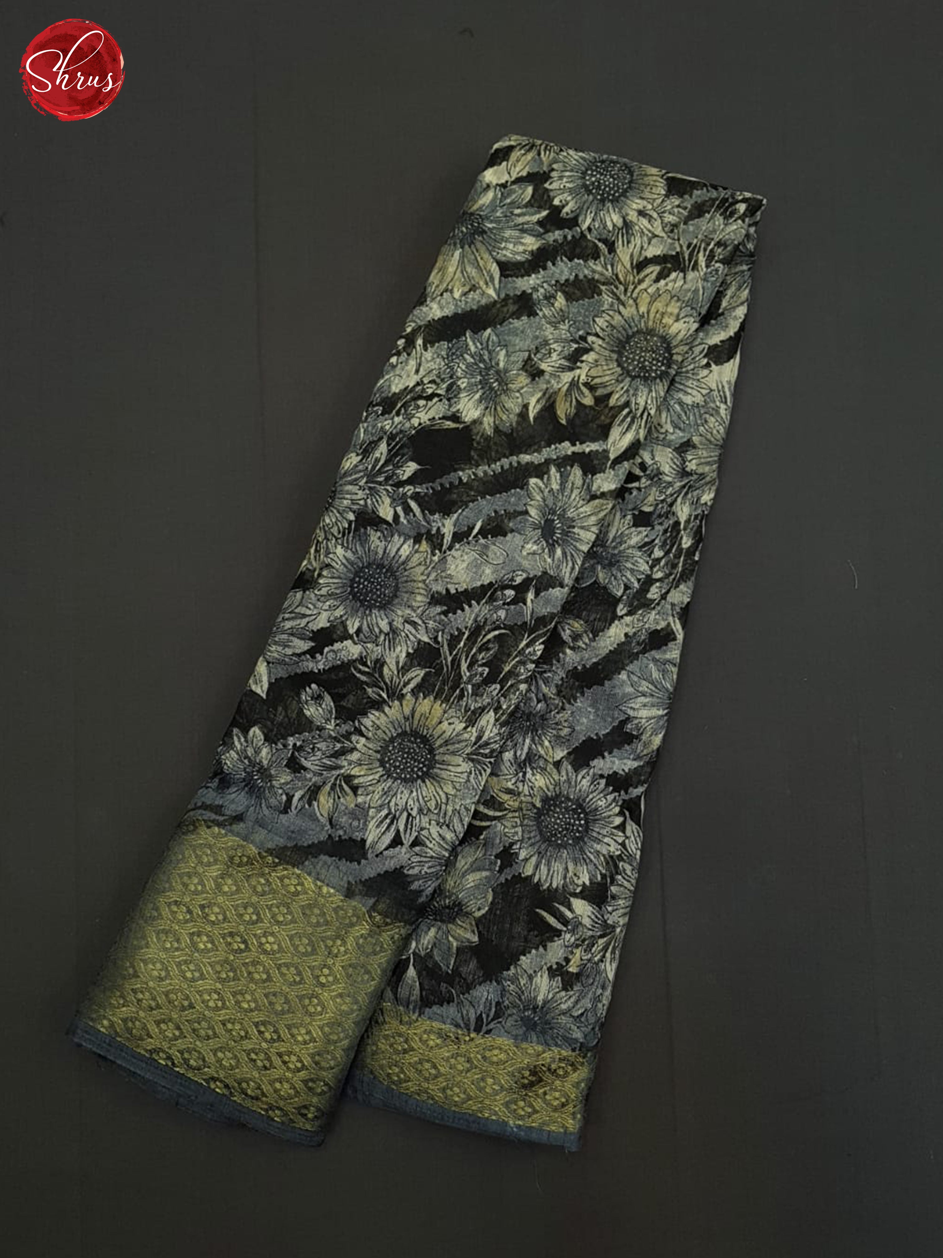 Pretty black and gret Semi Gicha Saree enchants with floral printed body , & bounded with grey zari border , printed pallu lends a beautiful compliment . . Comes with grey printed blouse with border completes the ensemble