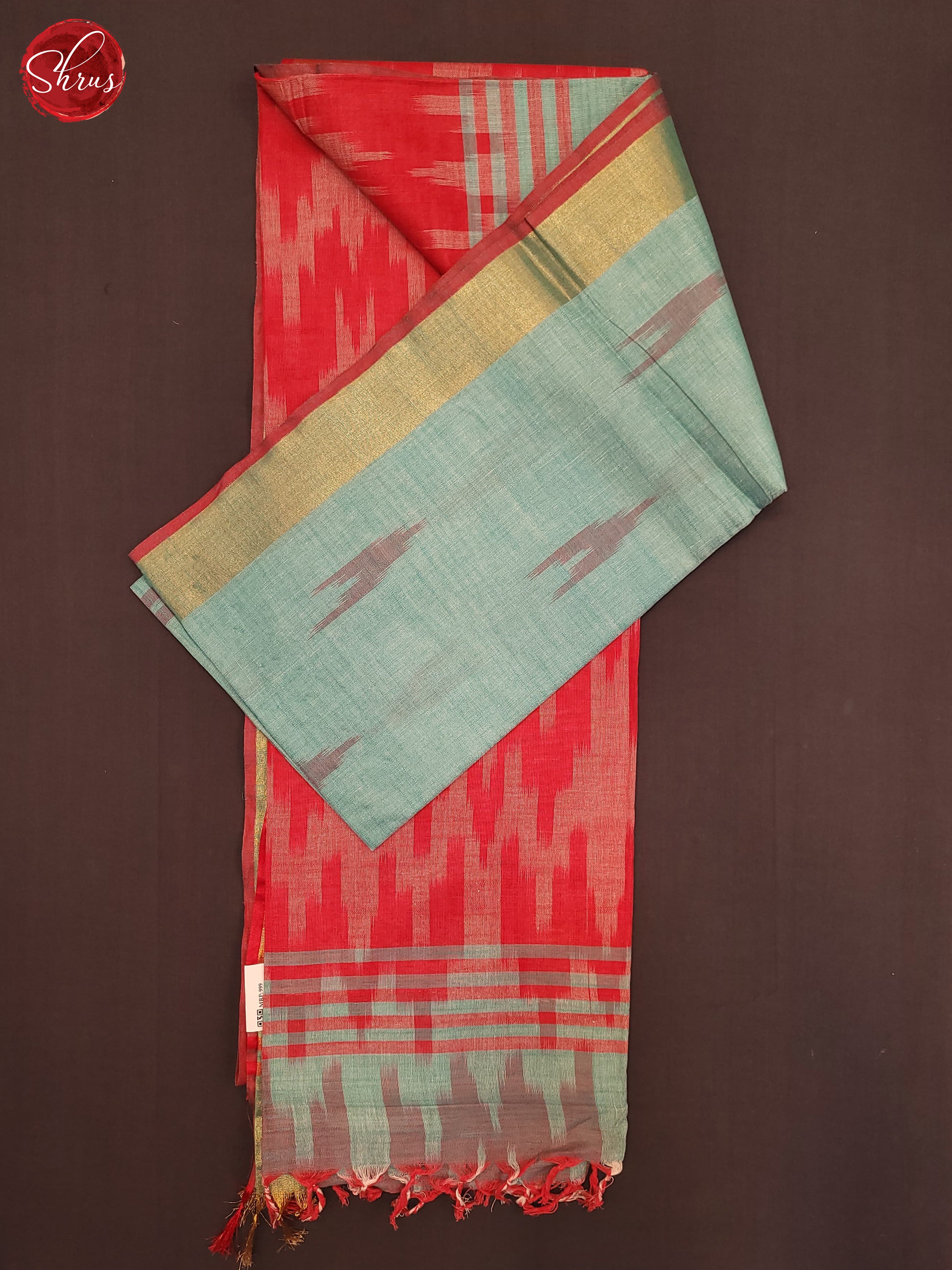 Aqua blue and Red - Semi Ikkat Saree