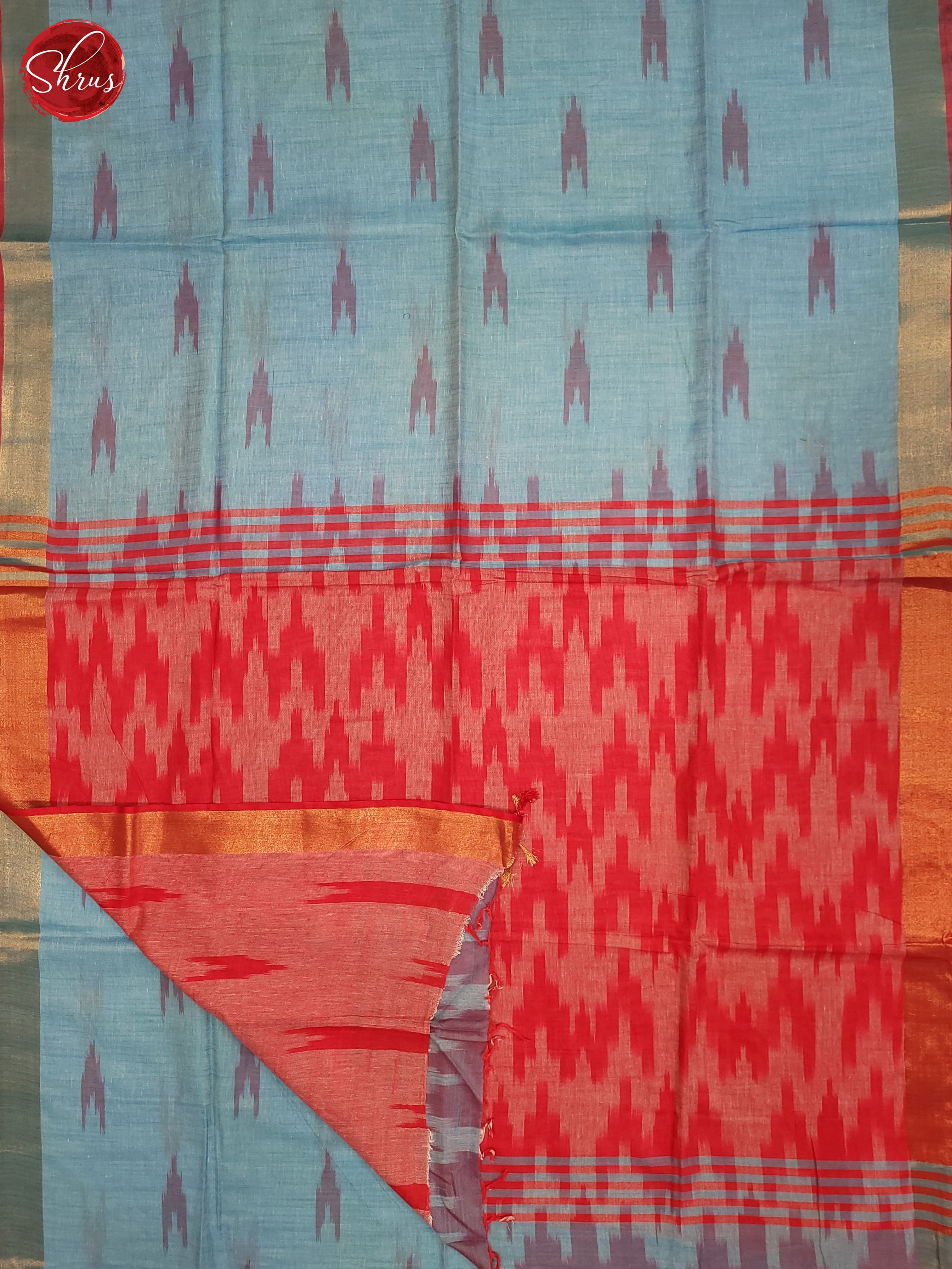elegant blue Semi ikkat saree with thread woven ikkat pattern on the body & Bounded with zari Border The contrast Red ikkat woven pallu & blouse gives a perfect fit