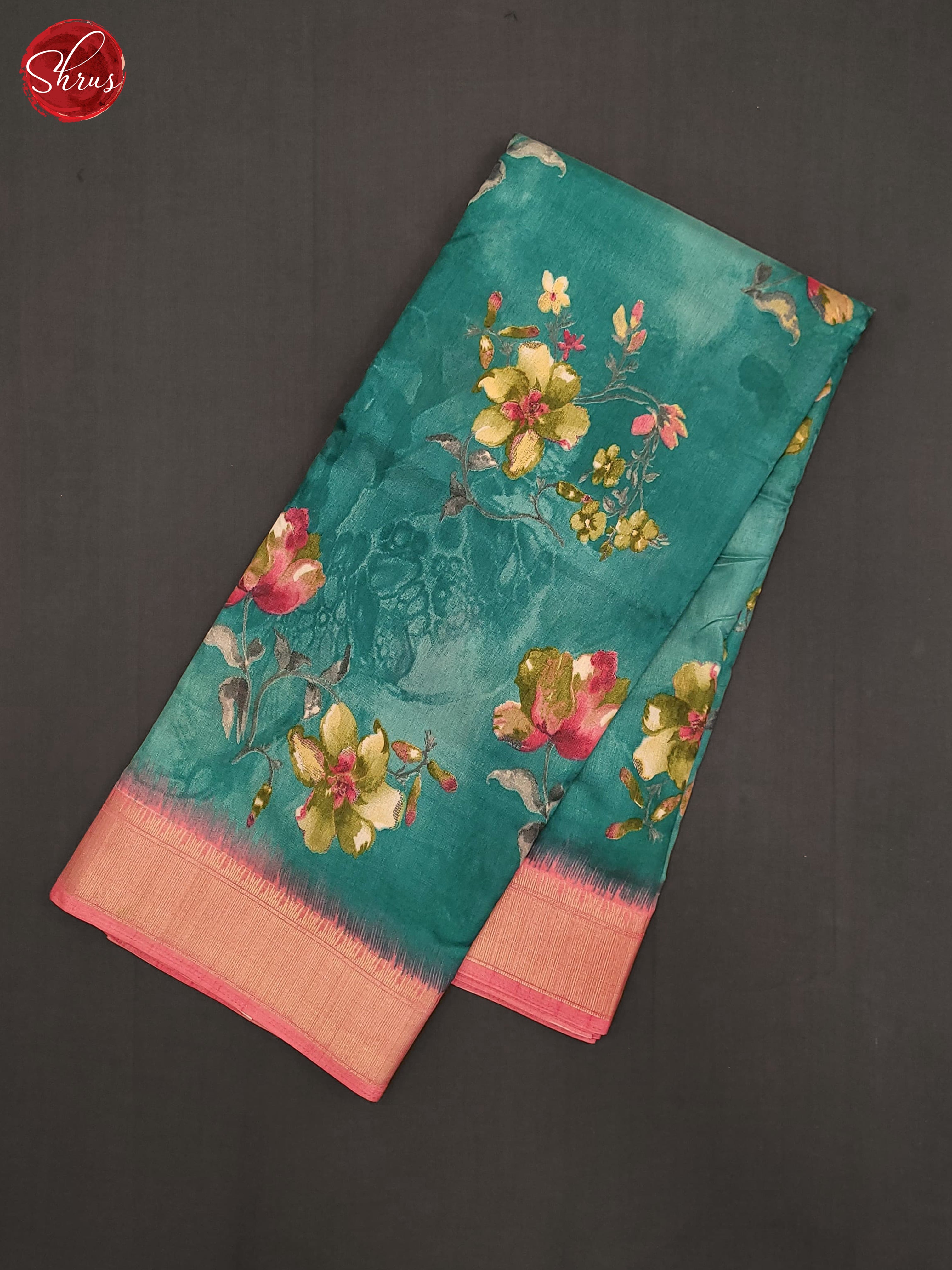 Pretty Blue Semi Crepe Saree enchants with floral print on the body & bounded with Pink zari border & pallu compliments beautifully Comes with Pink blouse with zari border gives a perfect finish