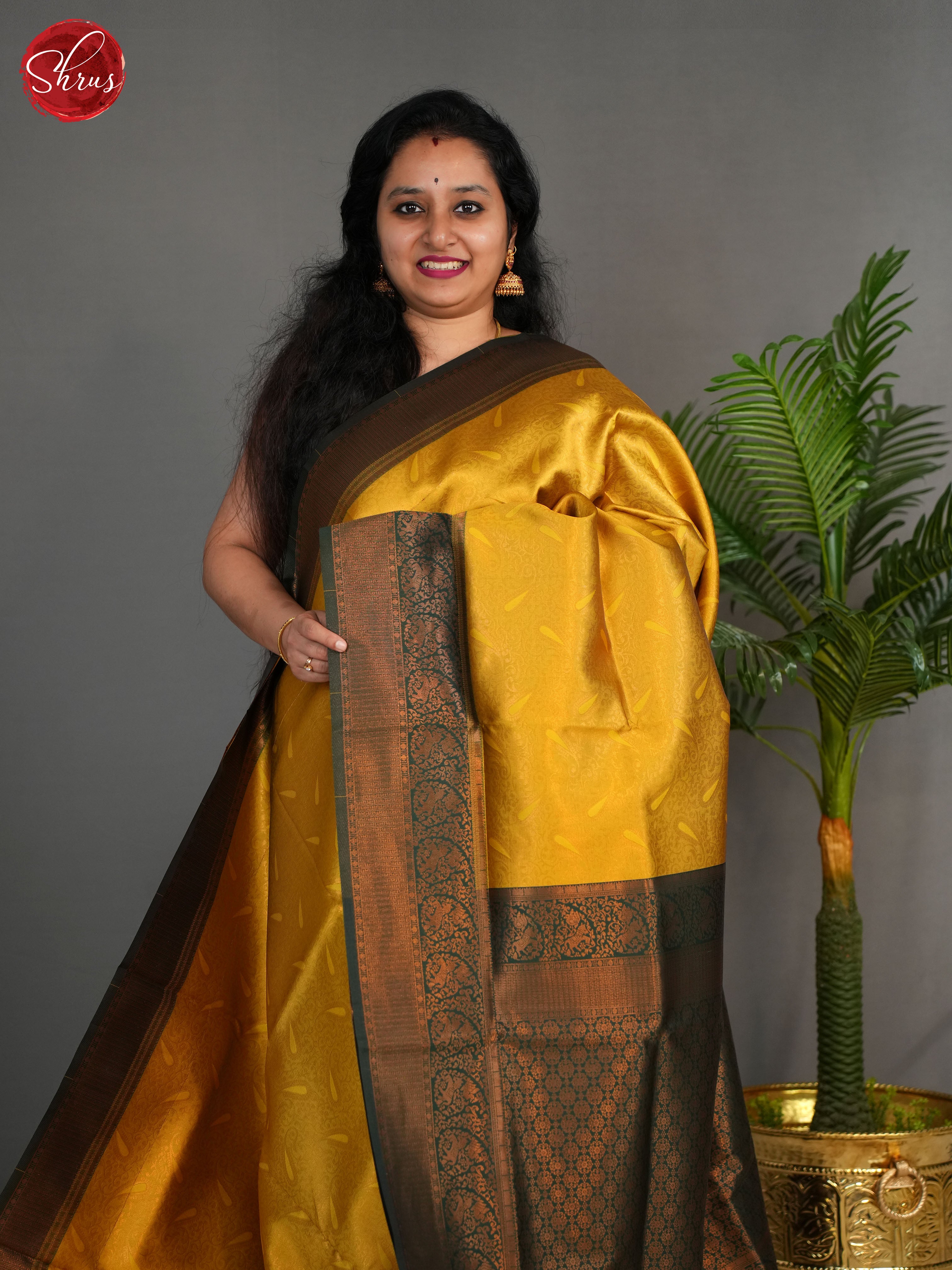 Mustard Green & Green - Semi Kanchipuram Saree