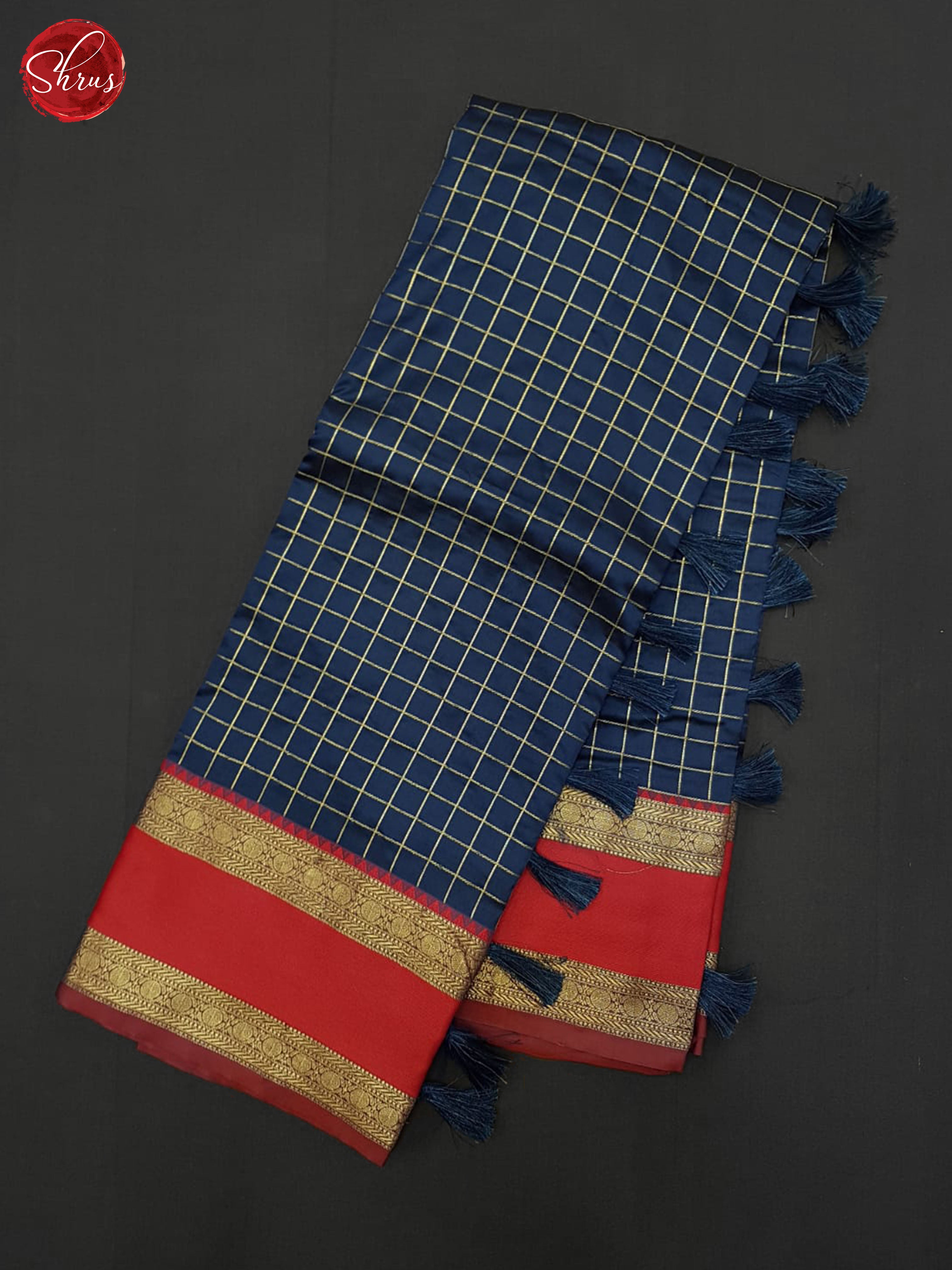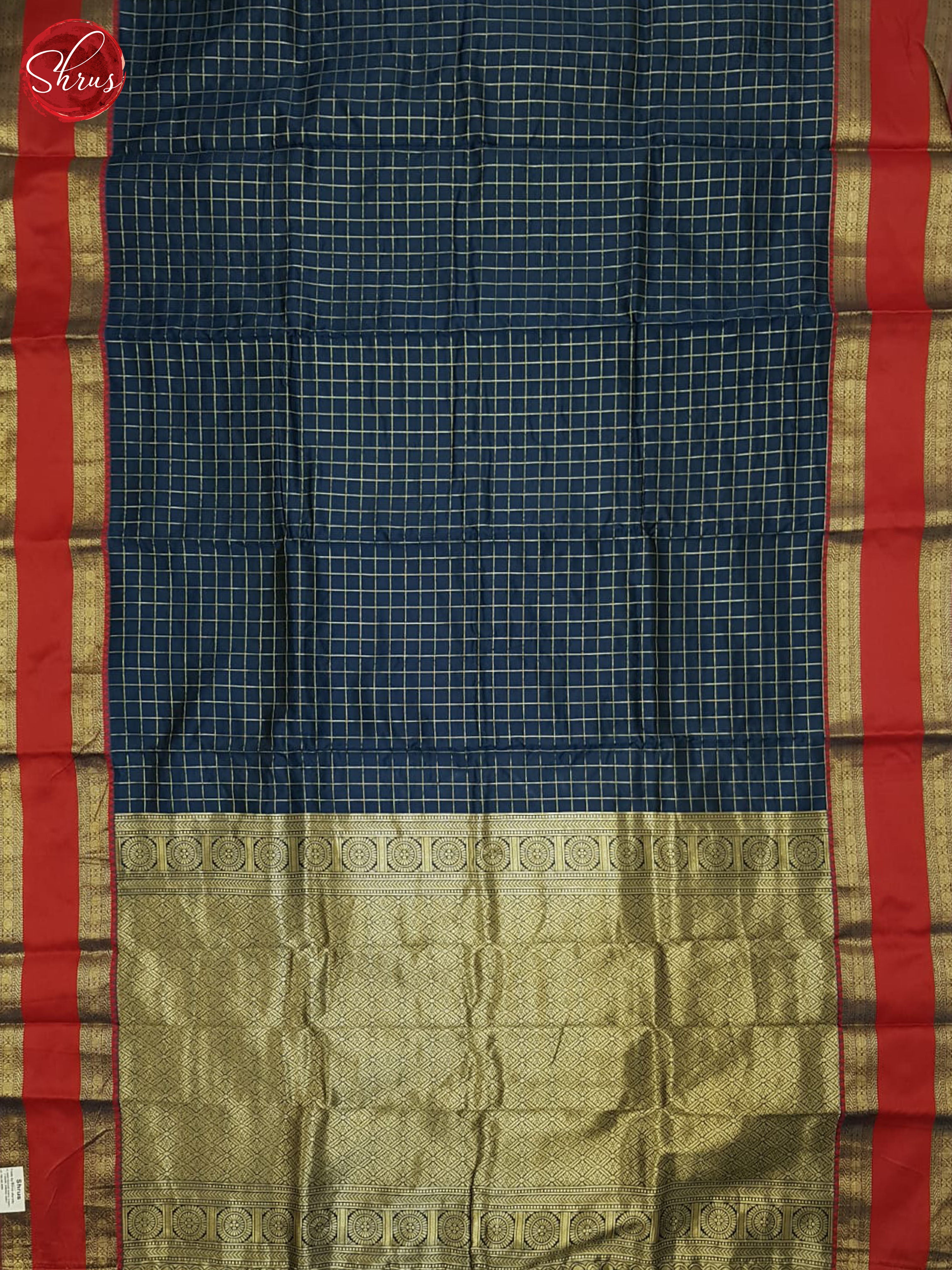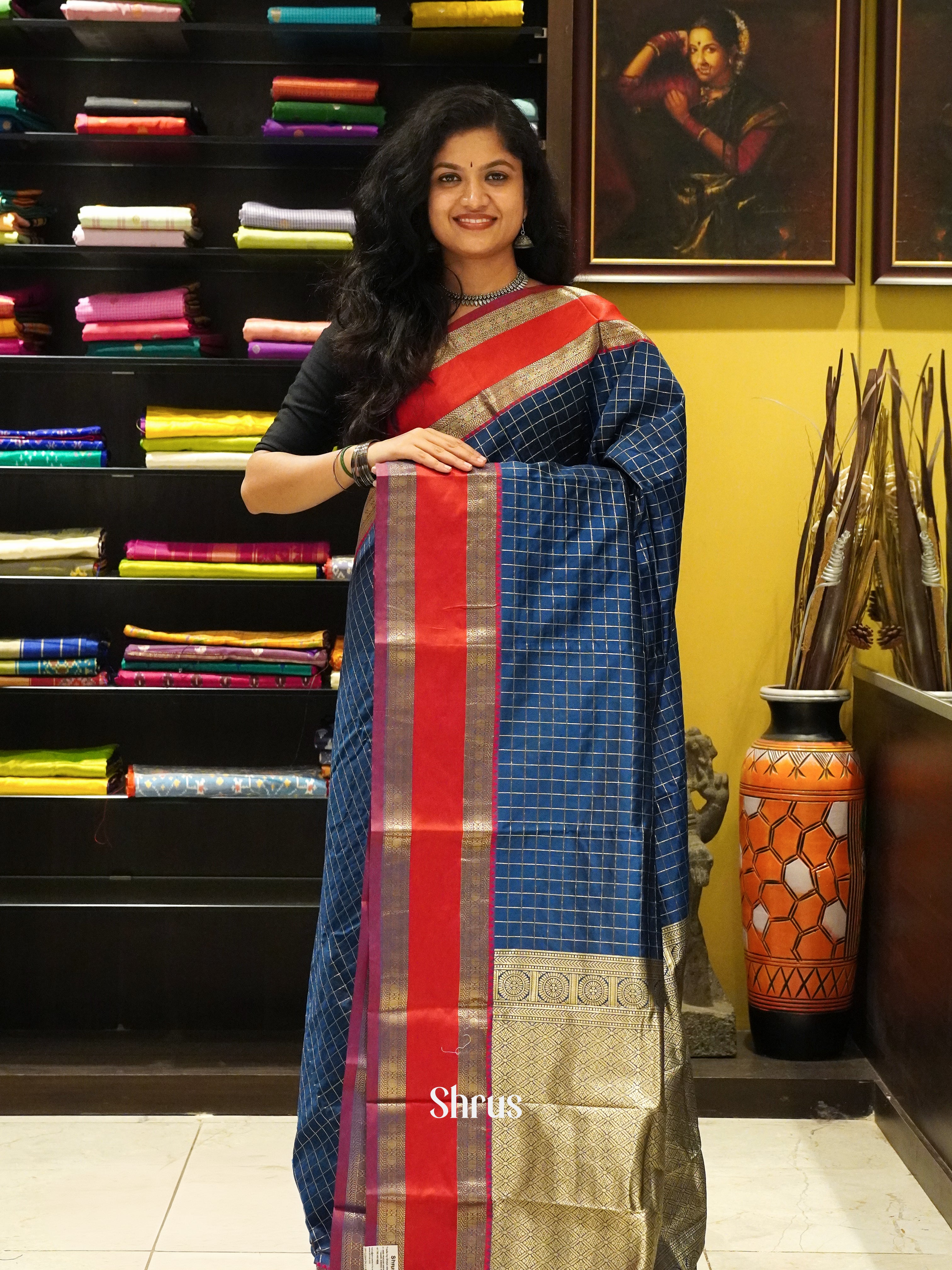 Pretty Blue Semi dupion saree enchants with zari checks on the body & bounded with Red zari woven border .The self zari woven Pallu & striped blouse with zari border completes the ensemble