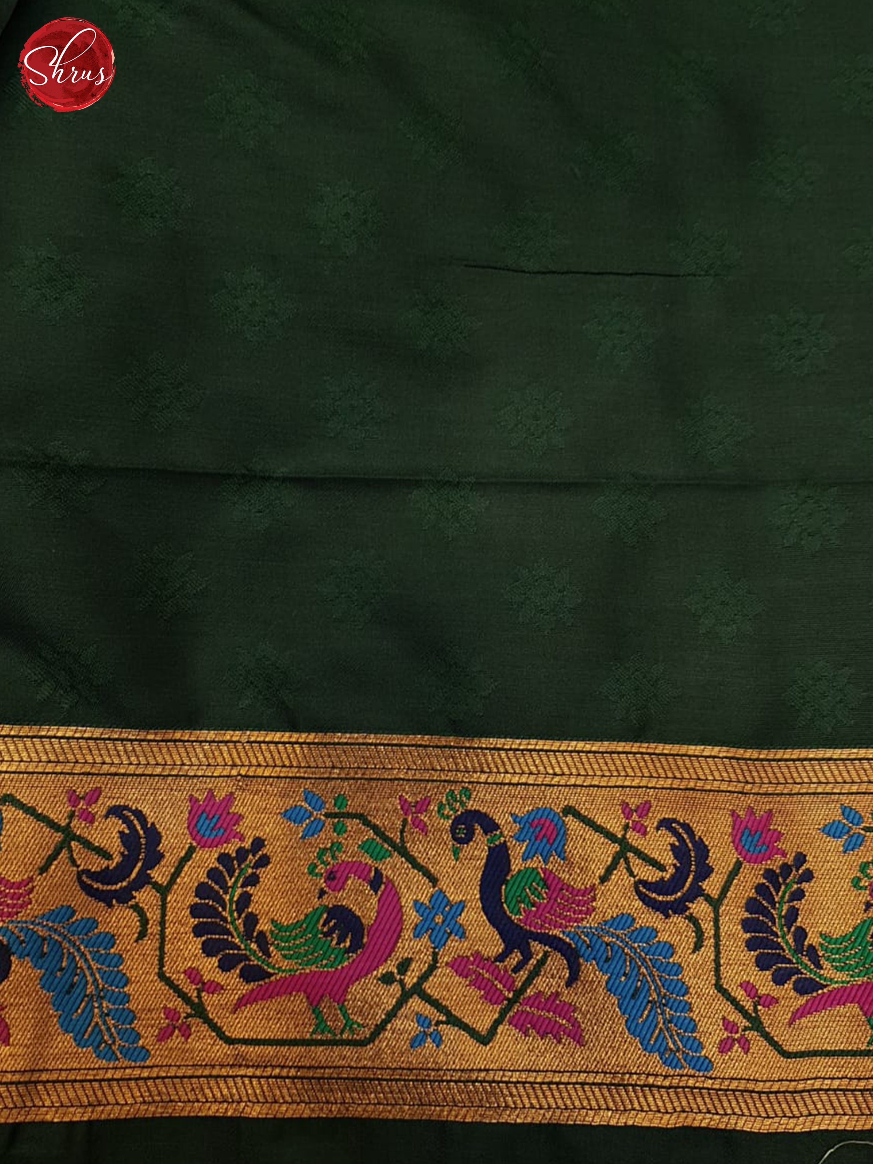 Pretty bottle green Semi Kanchipuram Silk saree enchants with zari woven buttas on the body .The richself gold zari woven border & paithani inspired brocade pallu adds prettiness Comes with plain self blouse with zari border looks enchantingly pretty