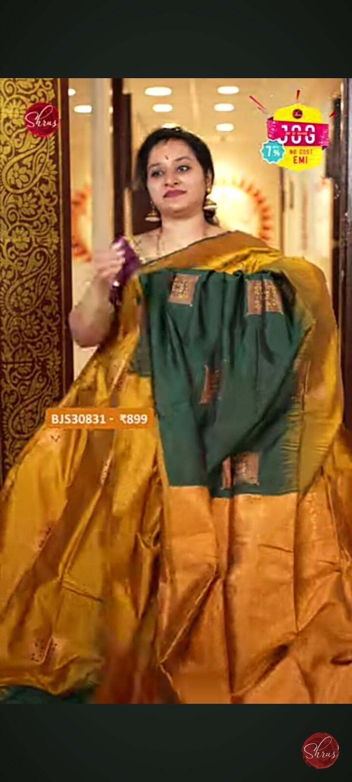 Pretty Bottle green Semi soft Silk saree enchants with gold zari woven floral motifs on the body .The rich contrast Pink zari woven brocade Pallu adds elegance . Attached with Pink blouse with border completes The ensemble