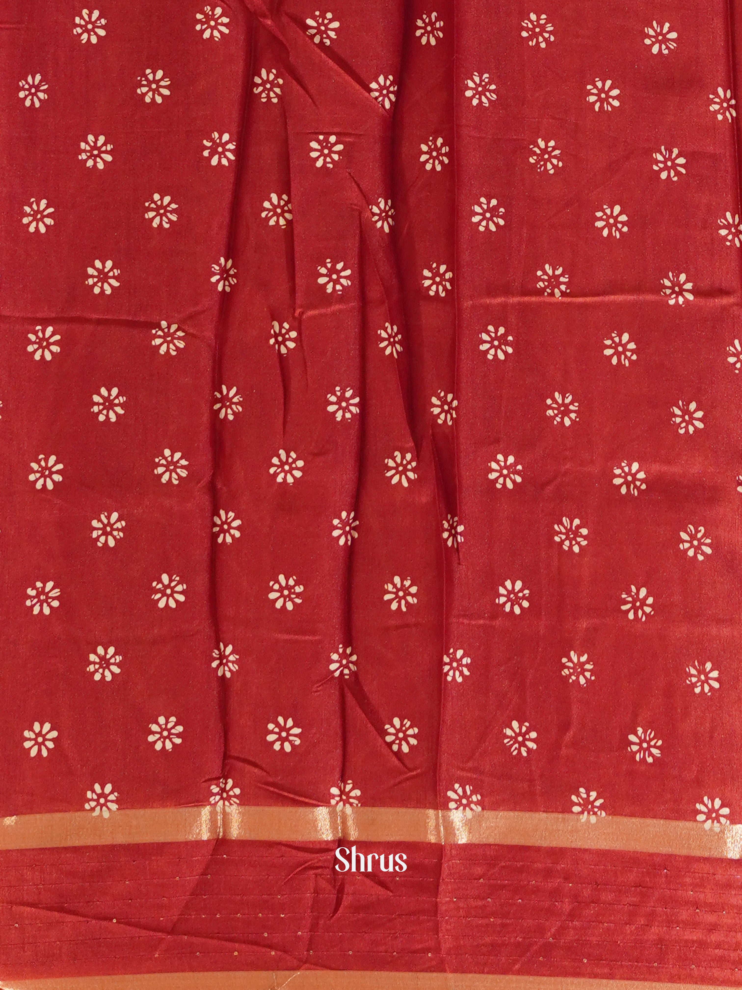This reddish pink semi crepe saree boasts a gorgeous floral print on the body and is adorned with a self zari border. The pallu adds a beautiful complement to the overall look. It also comes with a self blouse featuring a border for a flawless finish.