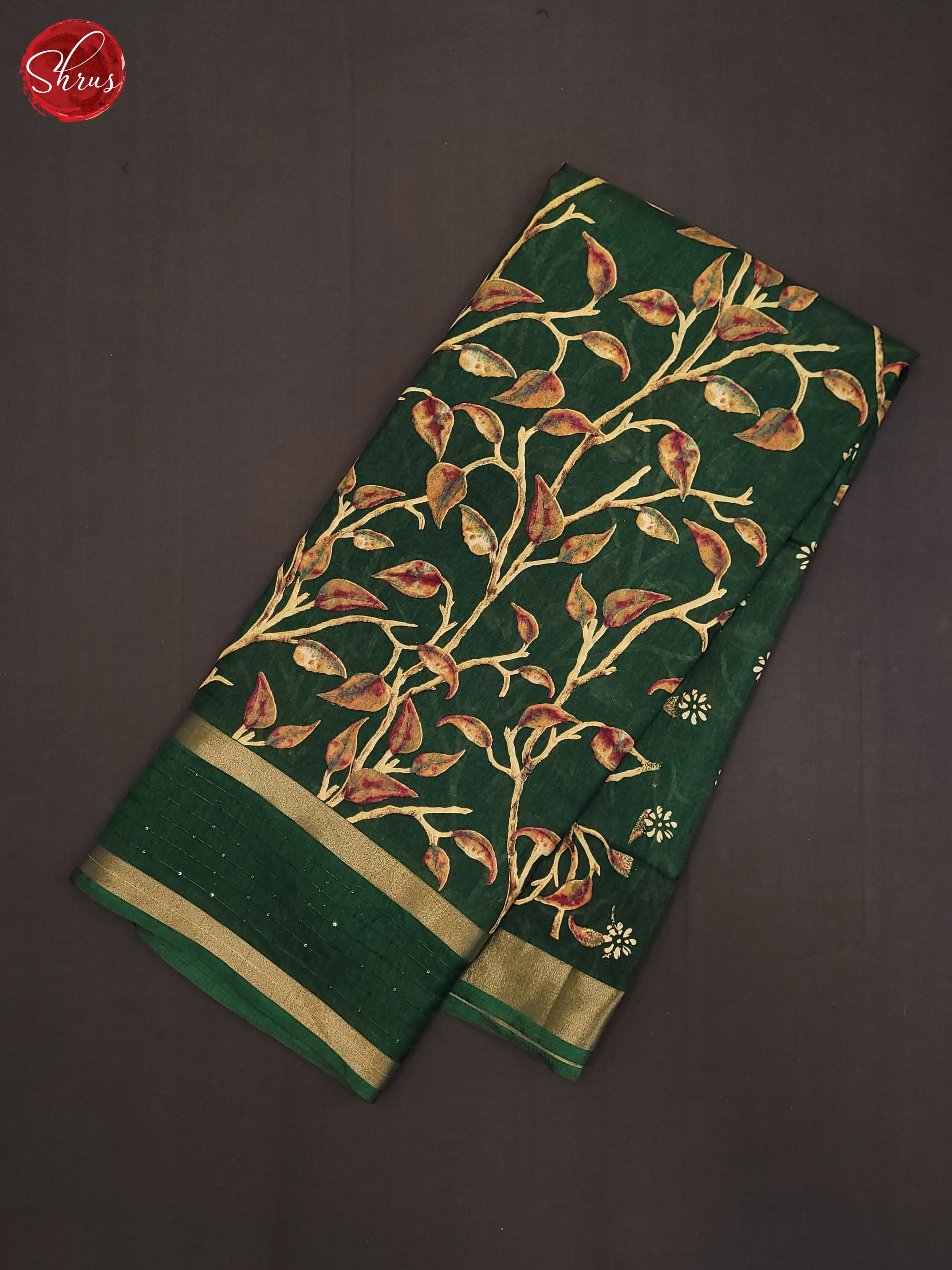 Pretty Green Semi Crepe Saree enchants with floral print on the body & bounded with self zari border & pallu compliments beautifully Comes with self printed blouse gives a perfect finish