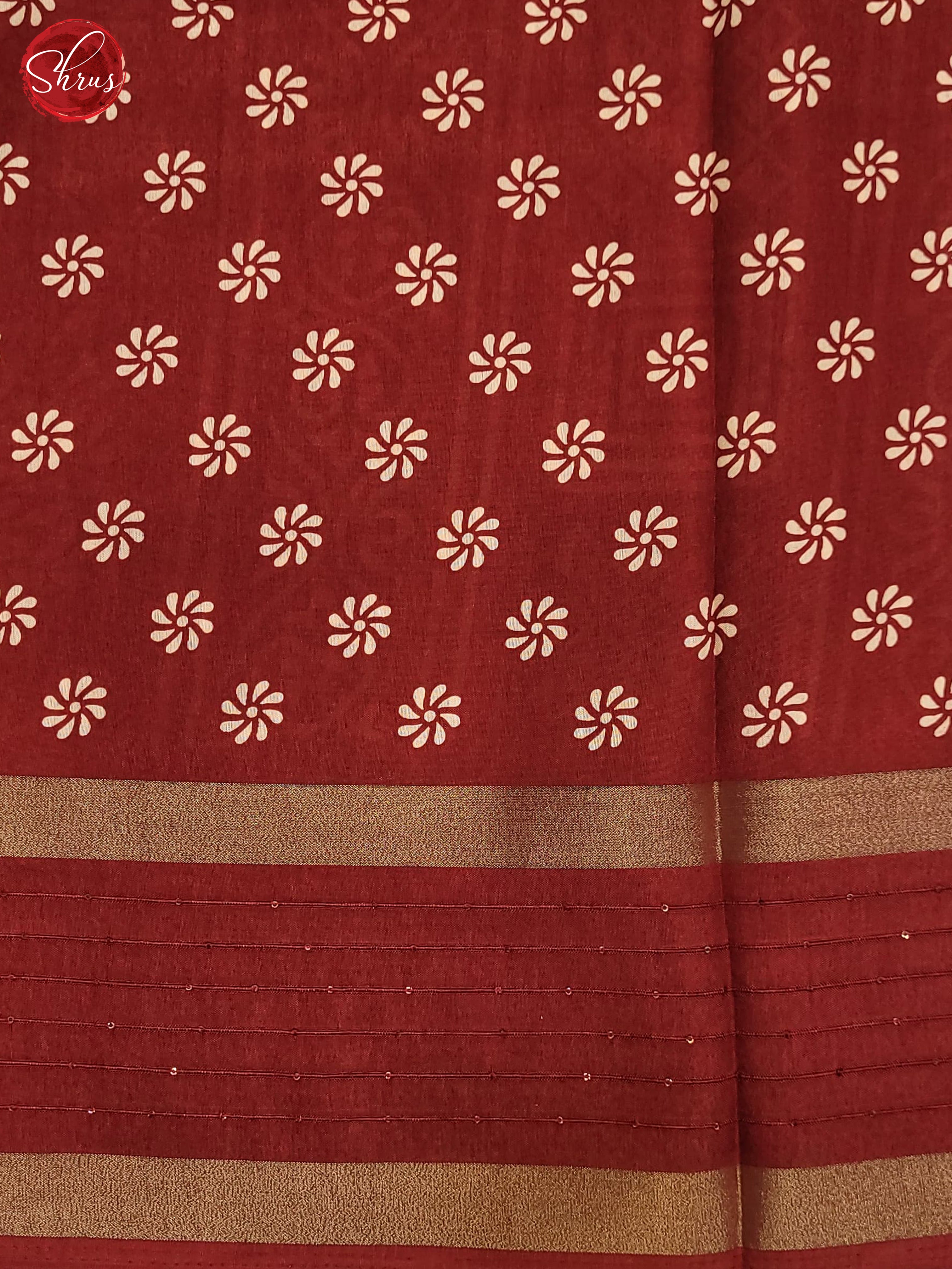 Pretty Red Semi Crepe Saree enchants with floral print on the body & bounded with self zari border & pallu compliments beautifully Comes with self blouse with border gives a perfect finish