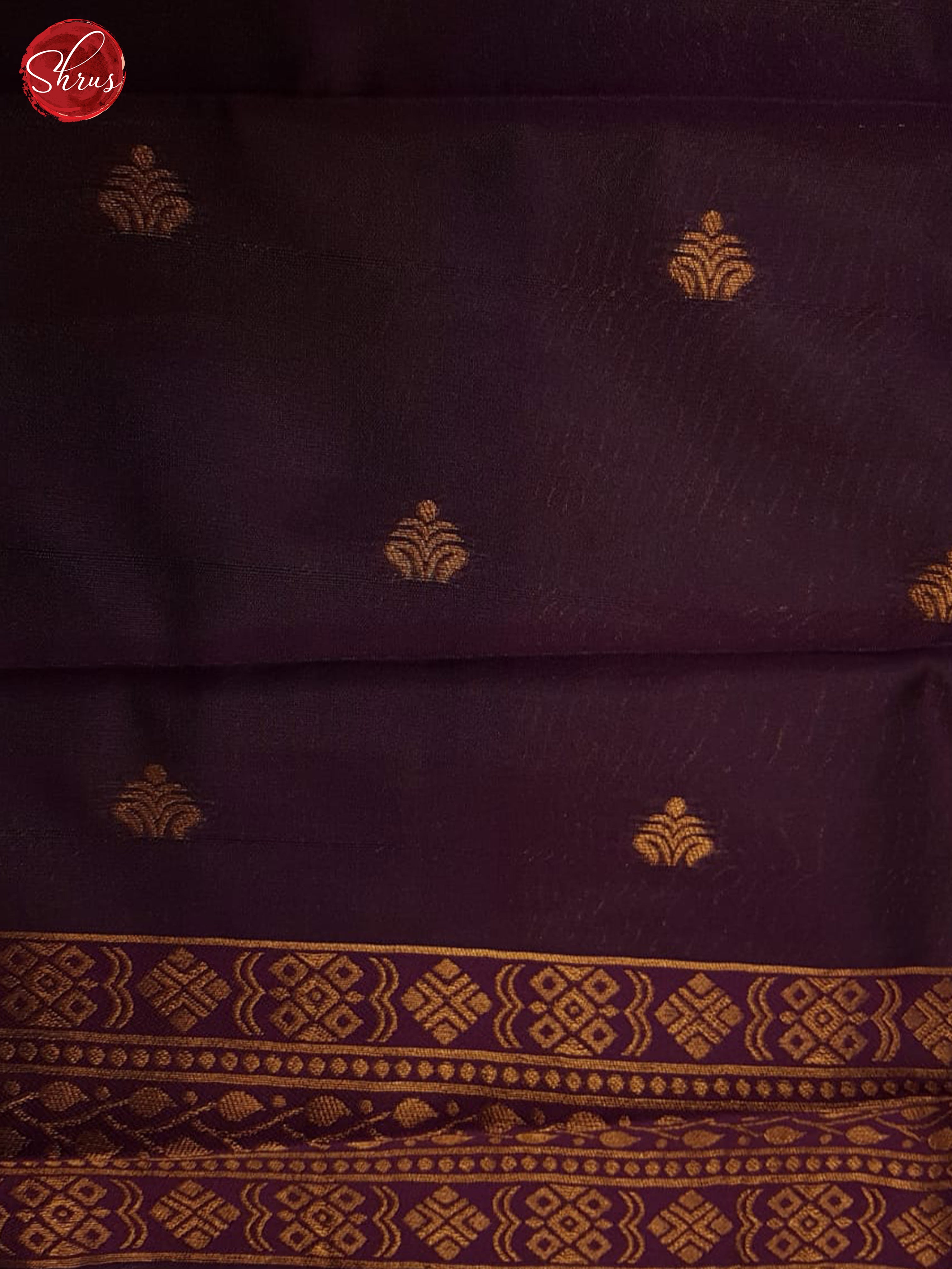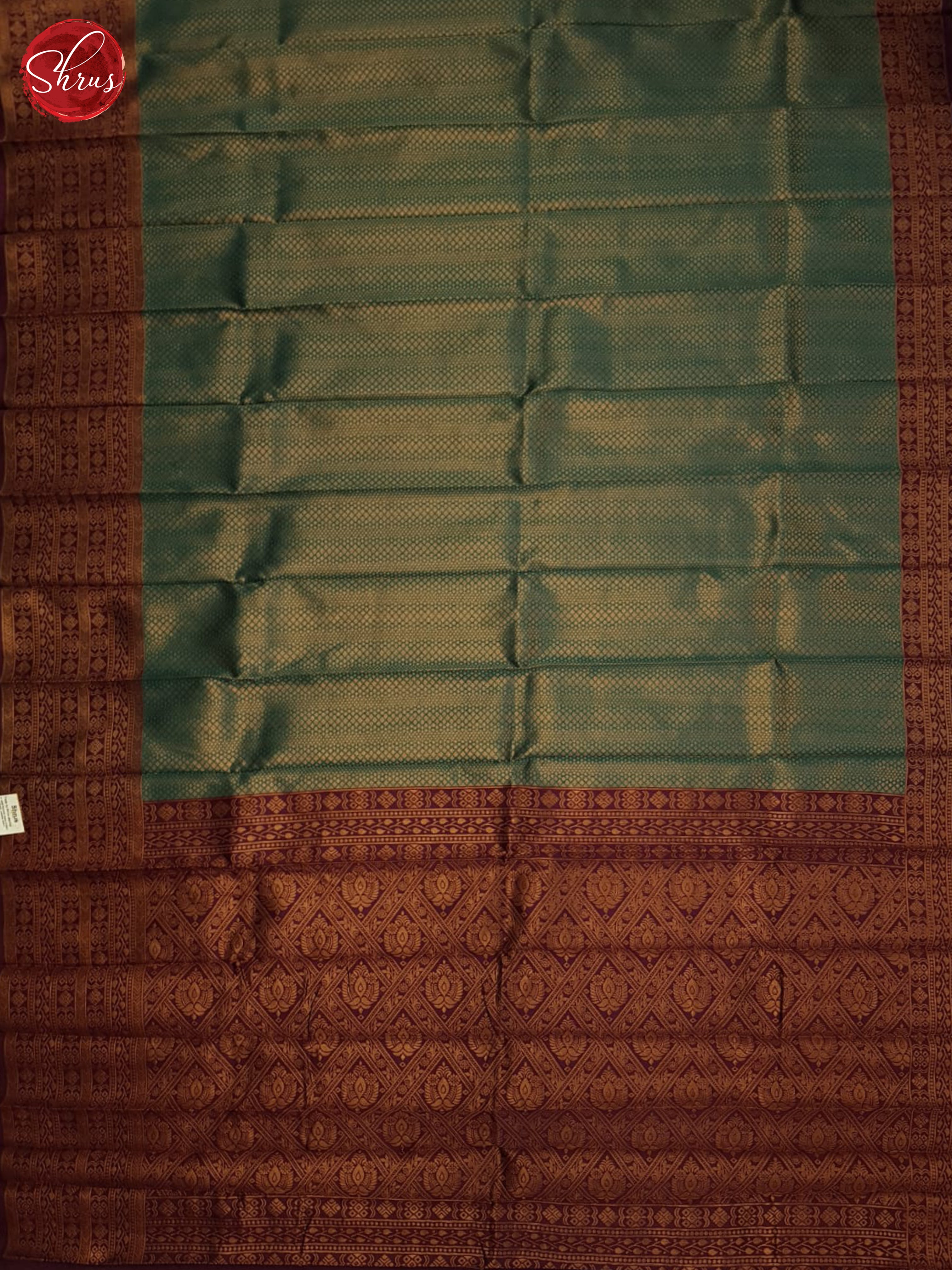 Pretty green Semi Kanchipuram Silk saree enchants with zari woven body .The rich wine gold zari woven border & brocade pallu adds prettiness Comes with plain wine blouse with zari border looks enchantingly pretty