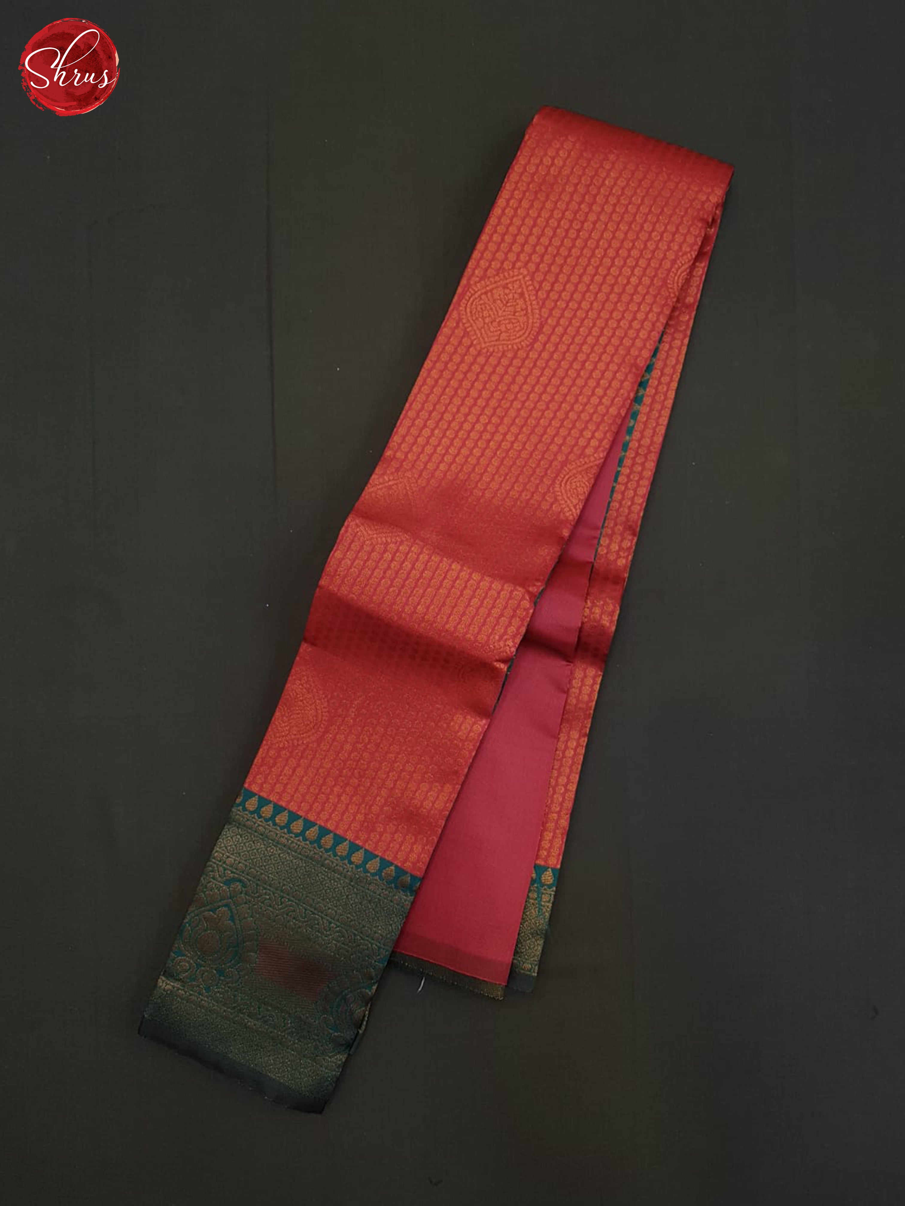 Pretty pink Semi Kanchipuram Silk saree enchants with zari woven body .The rich green gold zari woven border & brocade pallu adds prettiness Comes with plain green blouse with zari border looks enchantingly pretty