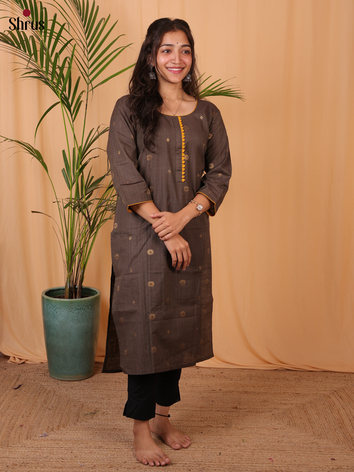 Pretty brown thread woven butta Readymade Kurti dress that evokes a sense of enthusiasm. . Wearable and chic, this dress is right on trend for the season