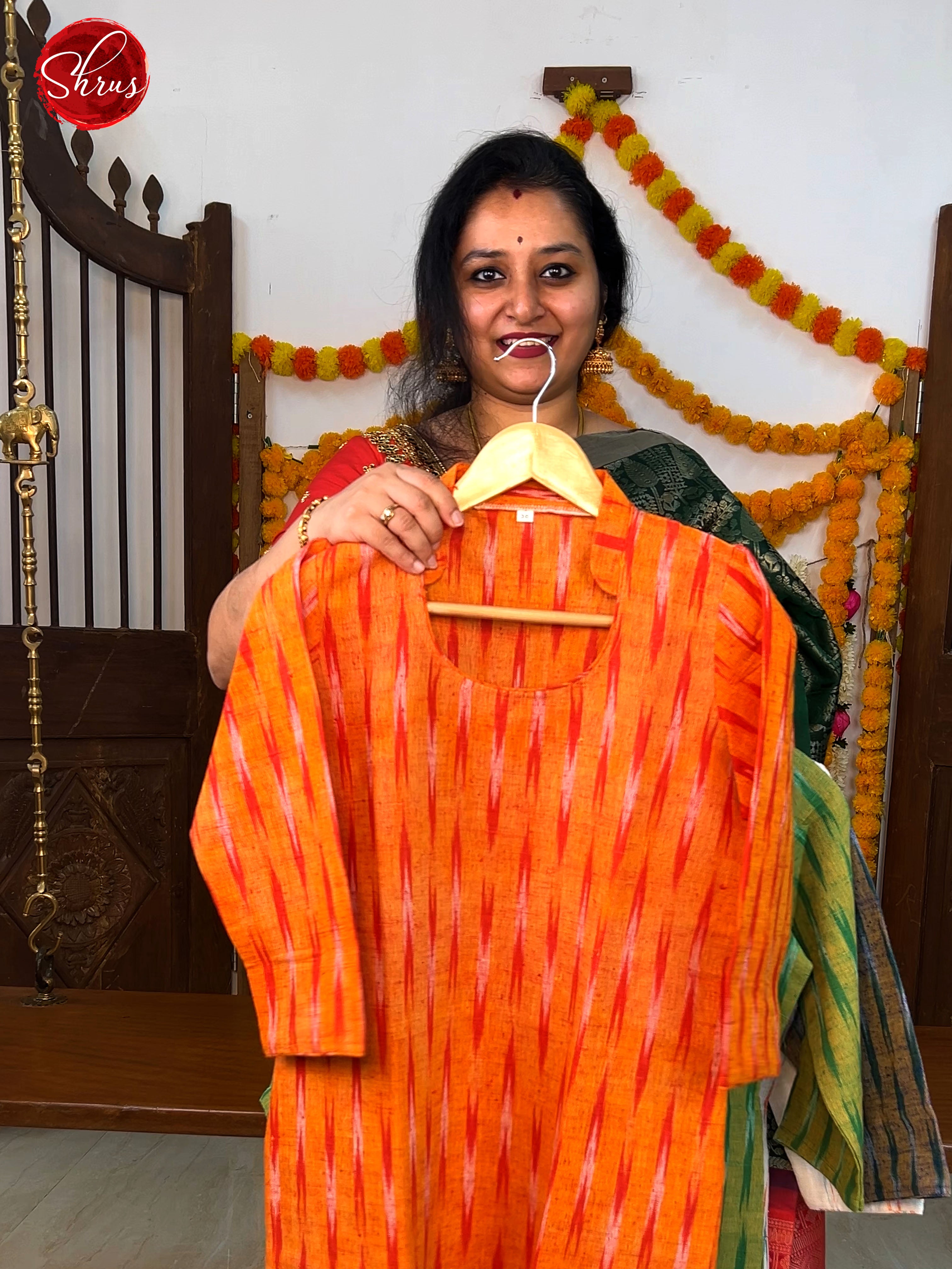 Elegant Orange Readymade kurti with Ikkat print that evokes a sense of enthusiasm. . Wearable and chic, this dress is right on trend for the season.