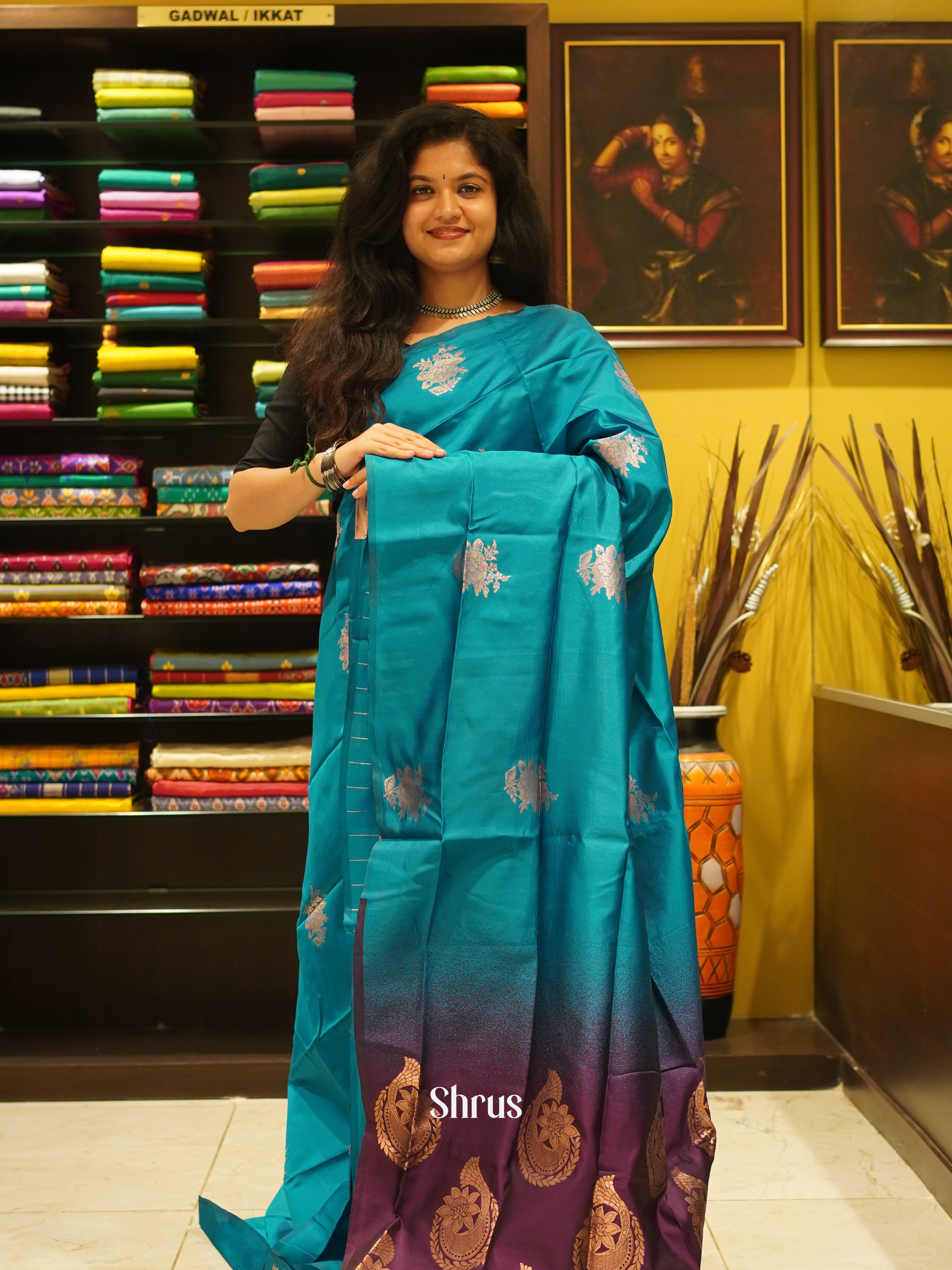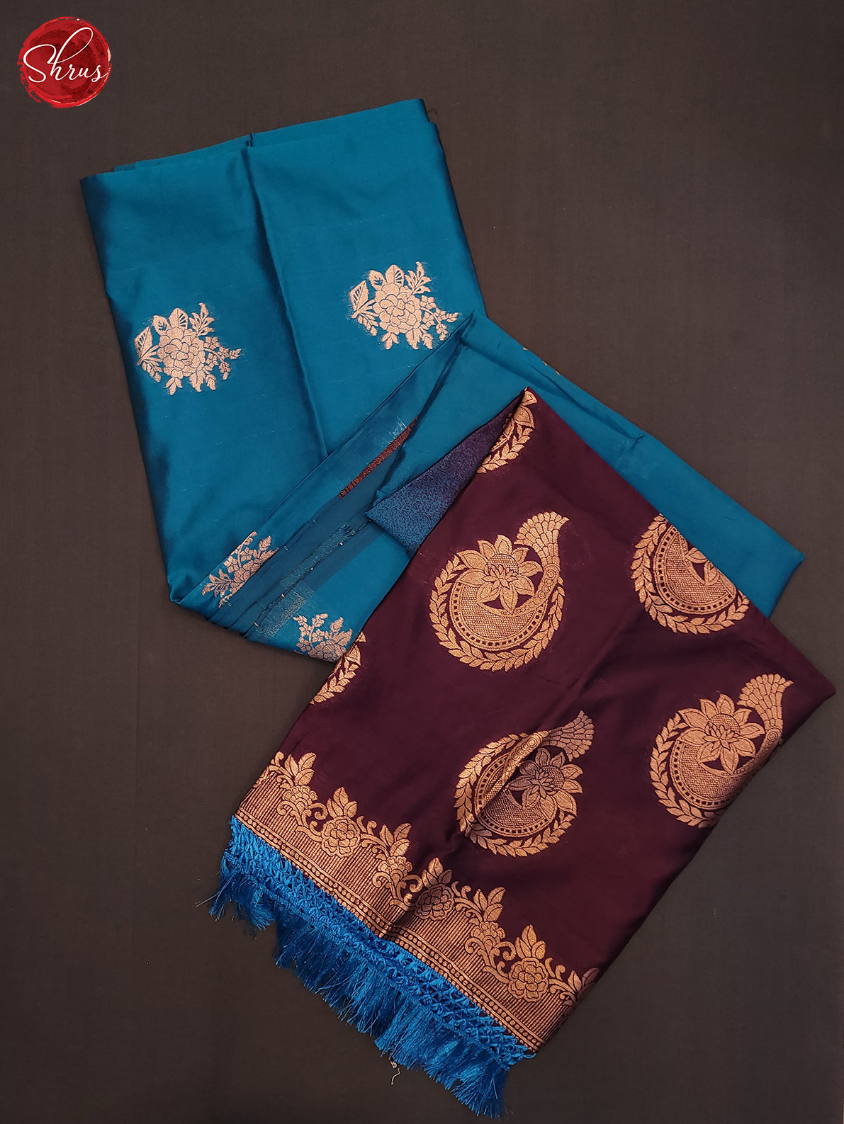 Blue & Wine- Semi Softsilk Saree