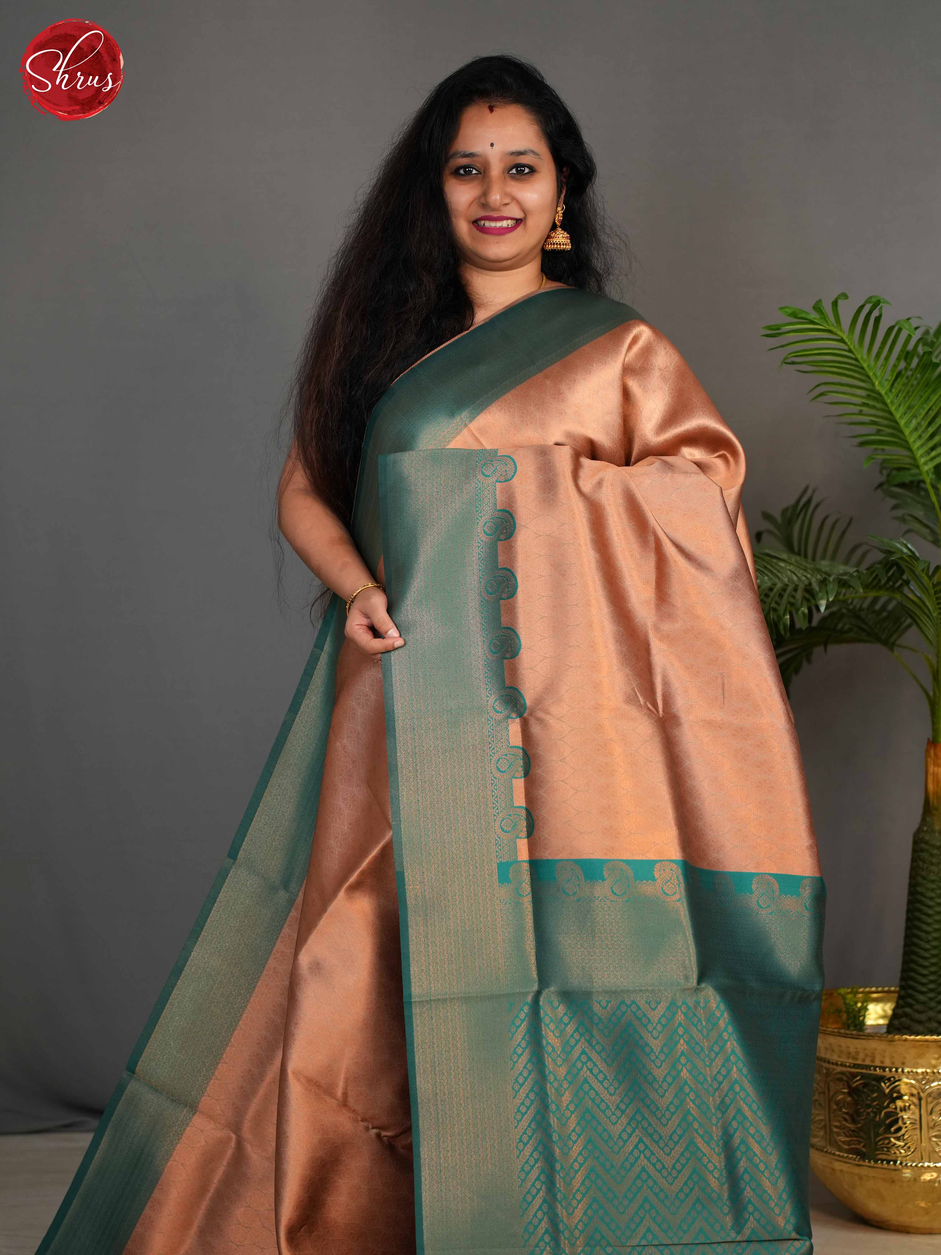 Elegant Sandal Semi Kanchipuram Silk saree enchants with zari woven brocade body .The rich contrast Green gold zari woven border & brocade pallu adds prettiness Comes with zari brocade Green blouse with zari border looks enchantingly pretty