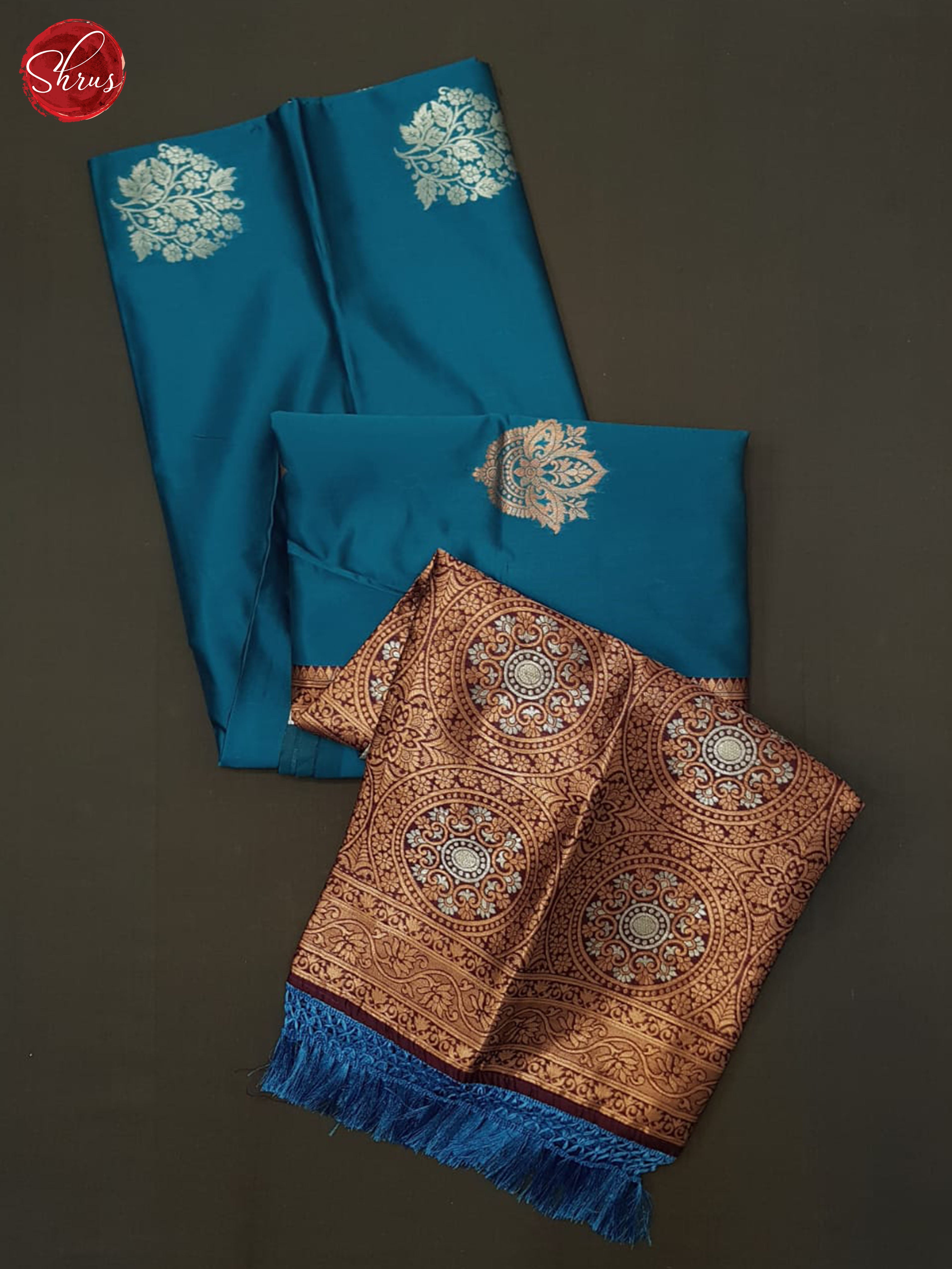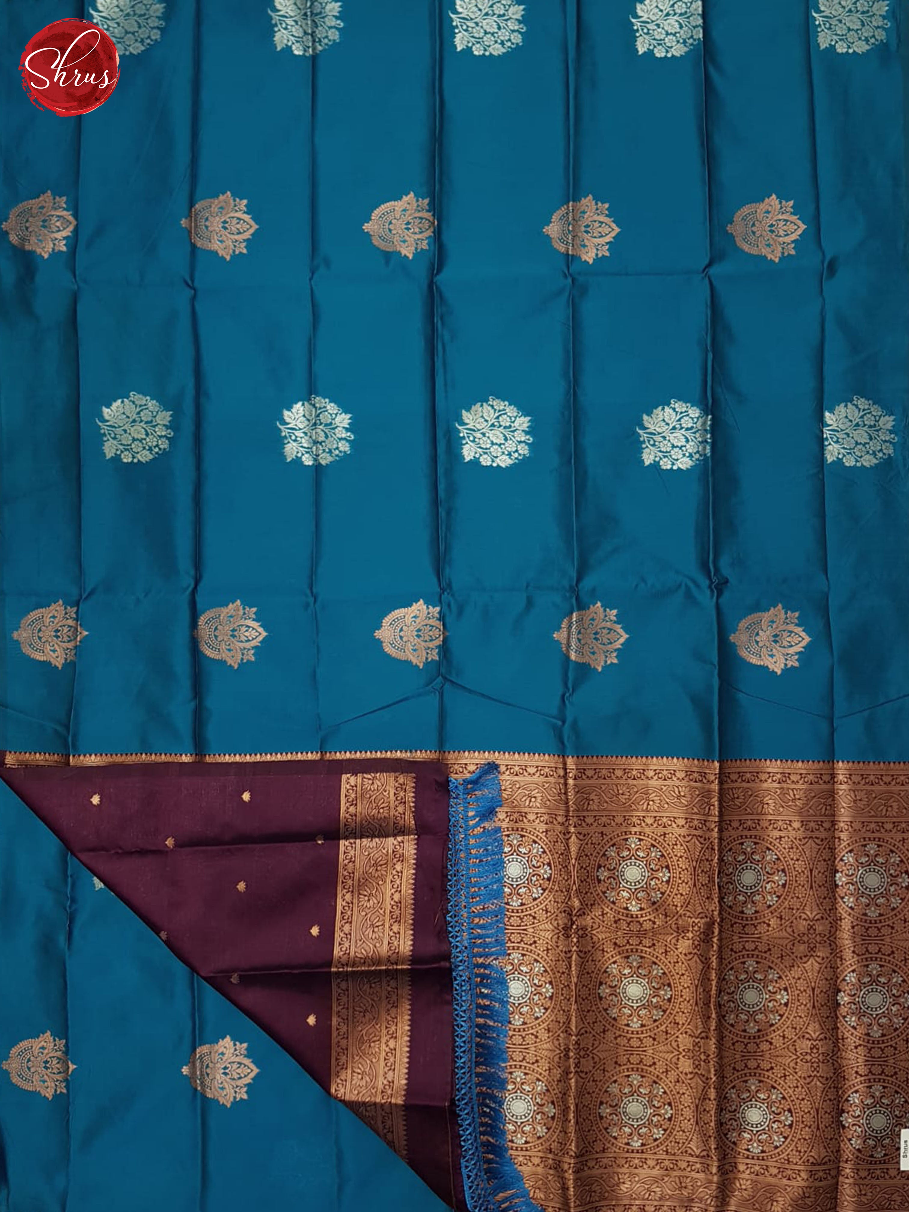 Pretty Blue Semi Silk saree enchants with zari woven floral motifs on the body .The rich wine zari woven brocade Pallu adds elegance . Attached with zari butta wine blouse with border completes The ensemble