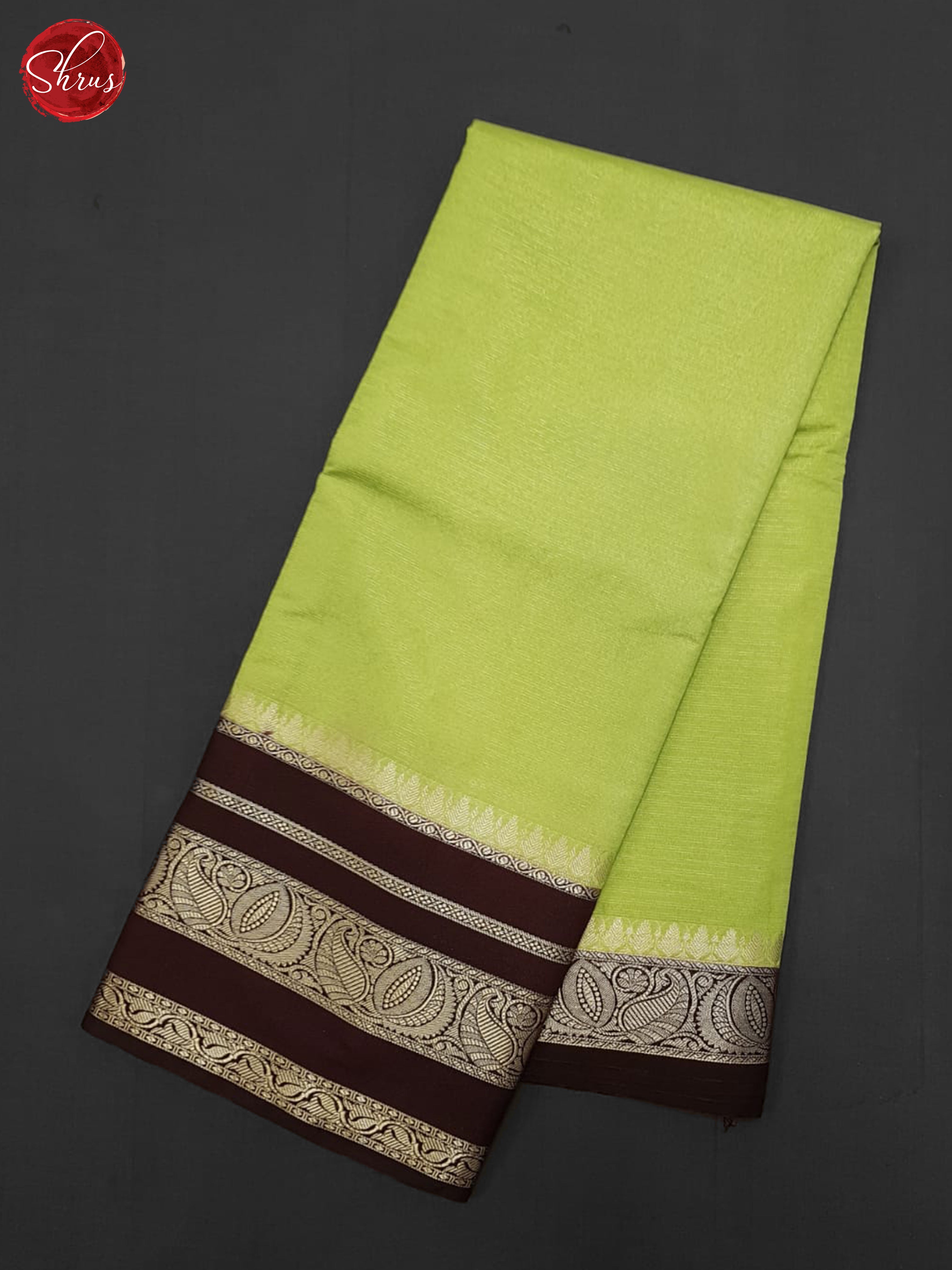Elegant Green Semi dupion saree enchants with plain body & bounded with Brown zari woven border .The contrast Brown zari woven Pallu & blouse with zari border completes the ensemble