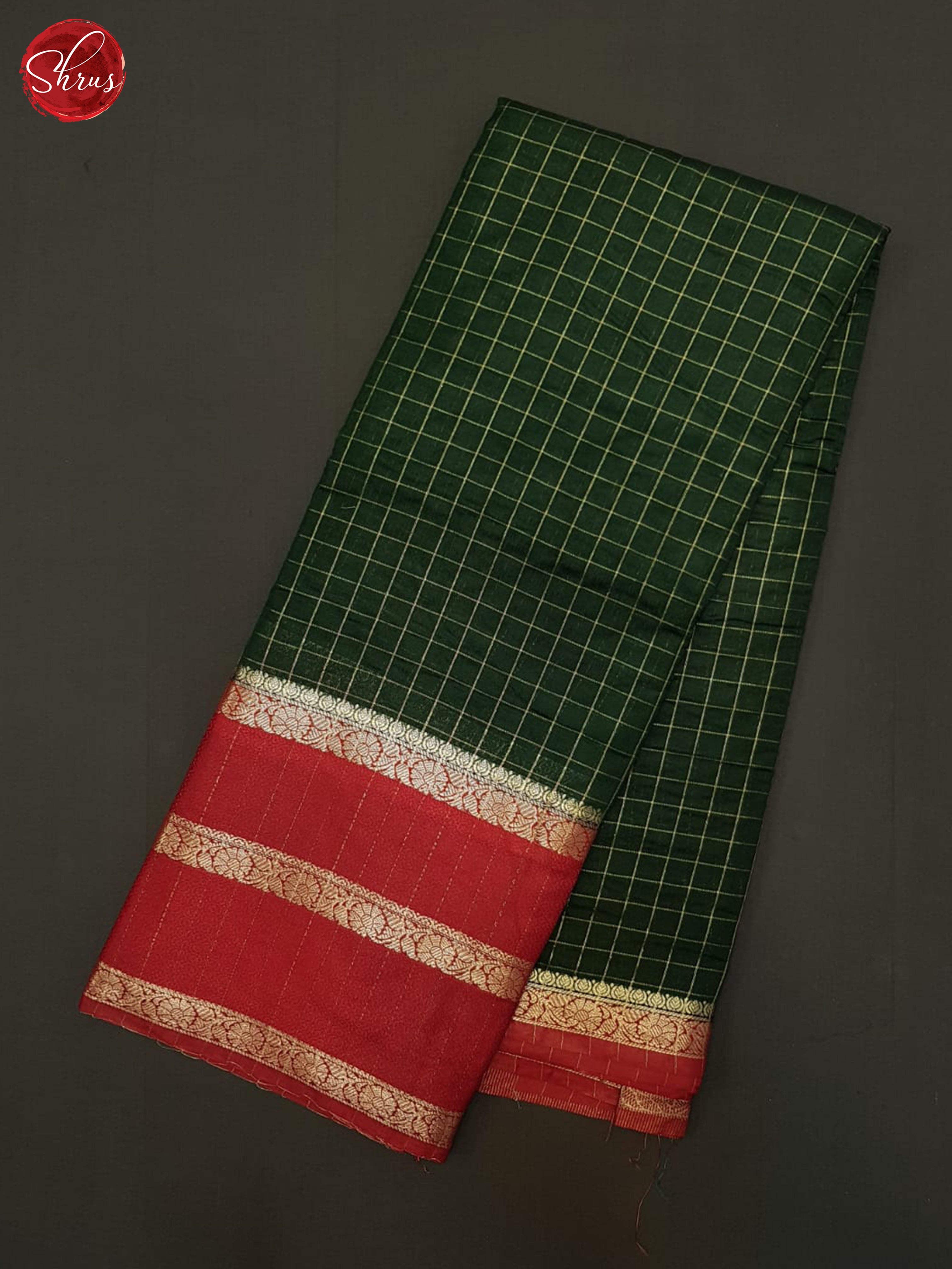 Pretty Green Semi dupion saree enchants with zari checks on the body & bounded with Red zari woven border .The contrast Red zari woven Pallu & blouse with zari border completes the ensemble
