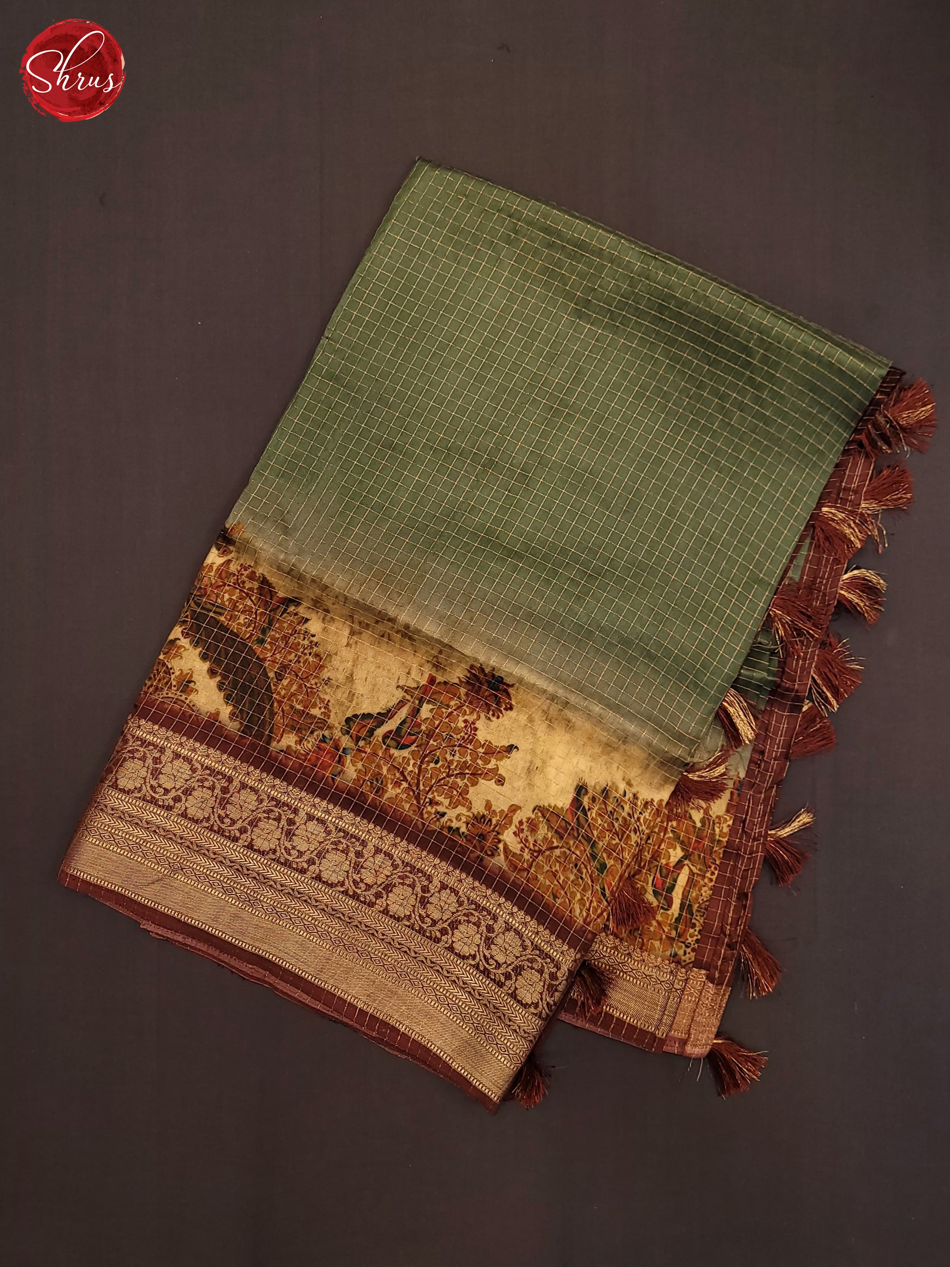 Pretty Green Semi Crepe Saree enchants with zari checks on the body & bounded with brown printed zari border & pallu compliments beautifully Comes with zari checked brown blouse gives a perfect finish
