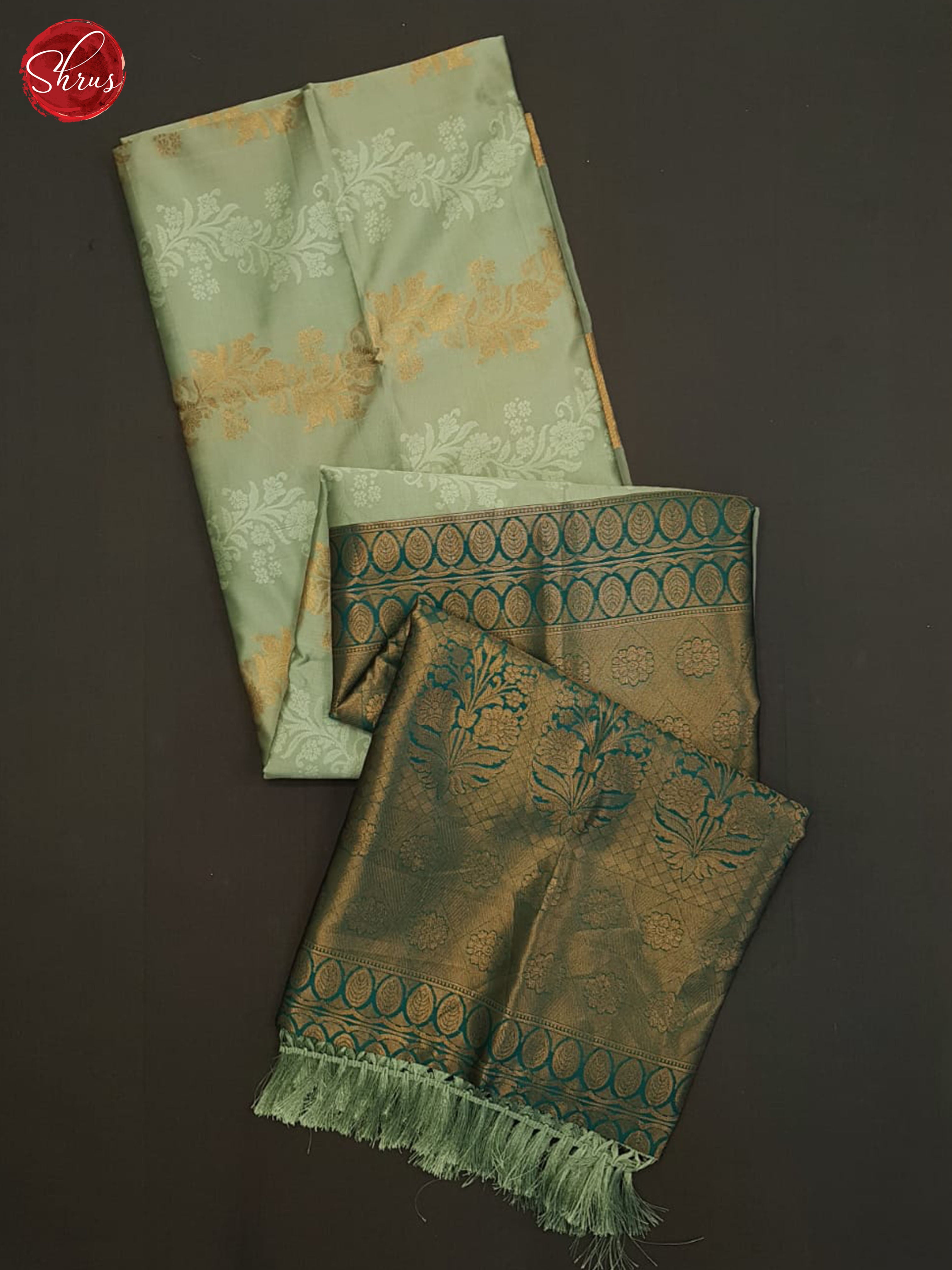 Pretty grey Semi Silk saree enchants with zari wove floral vines,self jacquard on the body .The rich contrast Green zari woven brocade Pallu adds elegance . Attached with zari brocade Green blouse with border completes The ensemble
