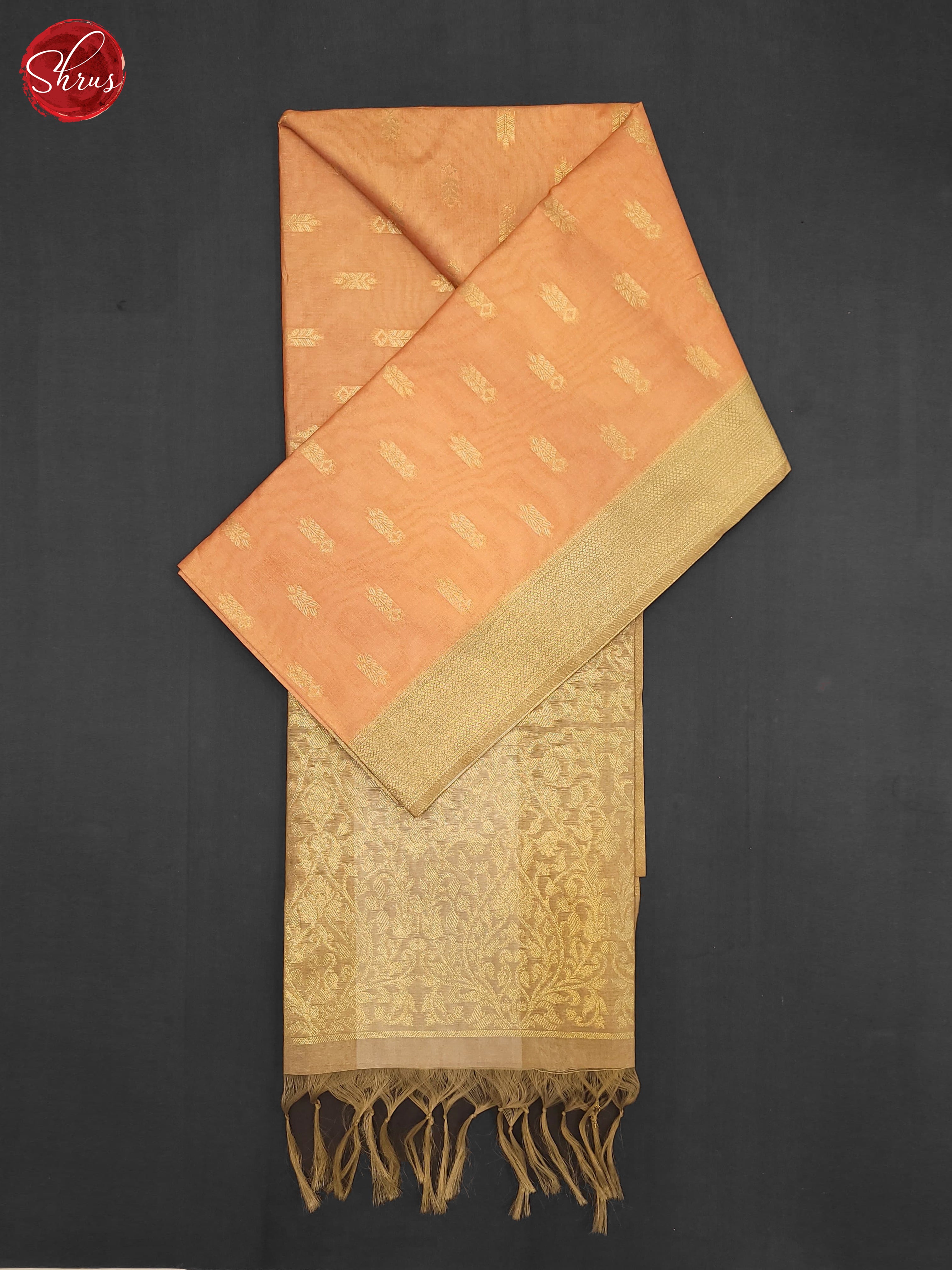Pretty Peach Semi Tussar saree enchants with zari buttas on the Body & Bounded with Beige zari border adds charms . The beige zari Pallu And Blouse gives a chic twist