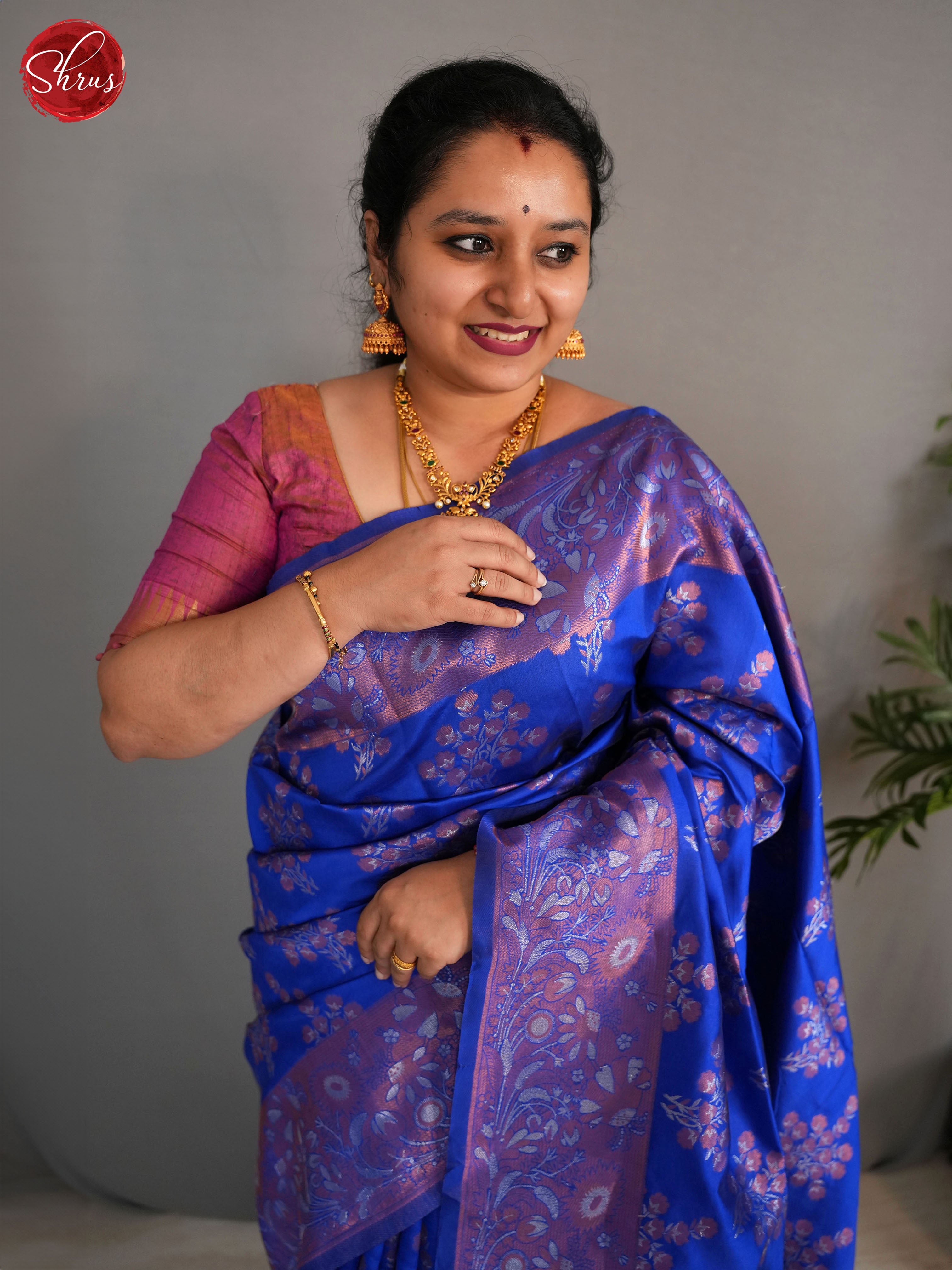Bright Blue (Single Tone) - Semi kanchipuram Saree